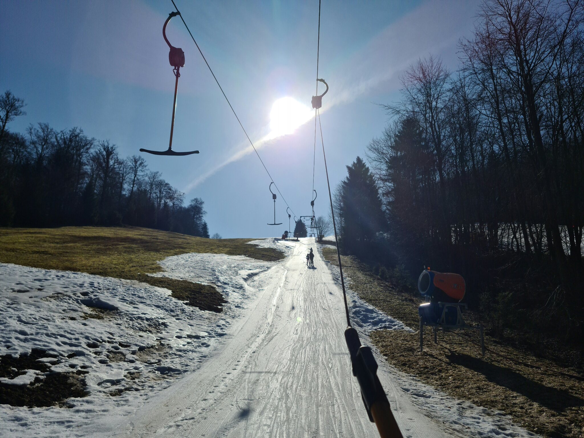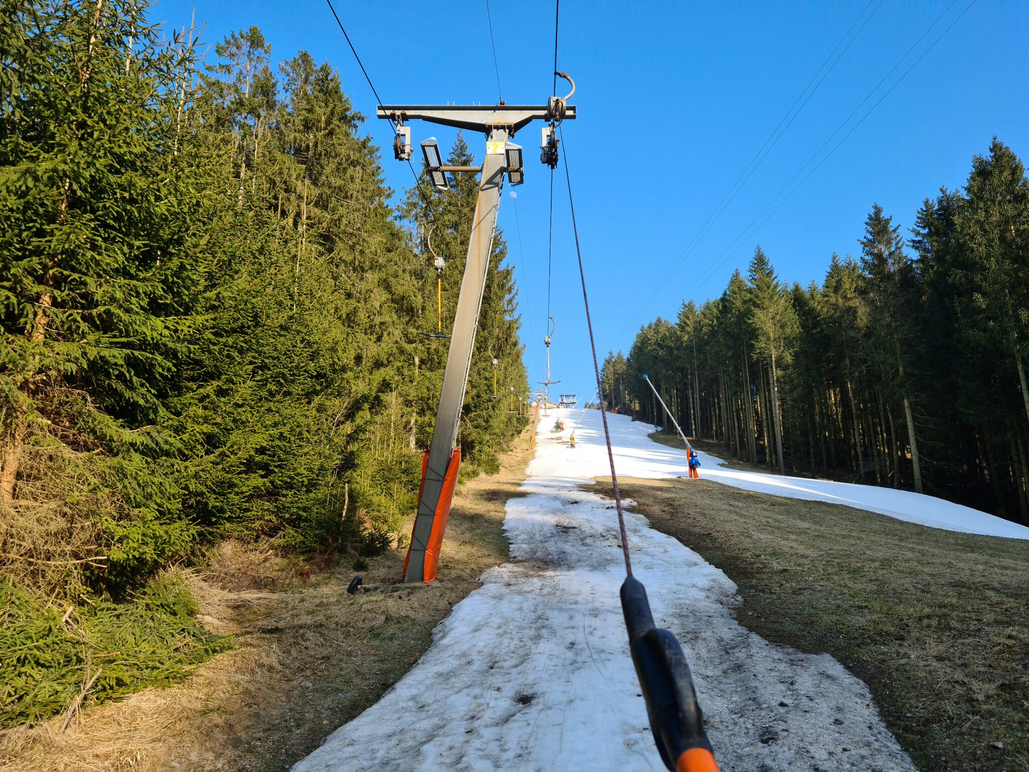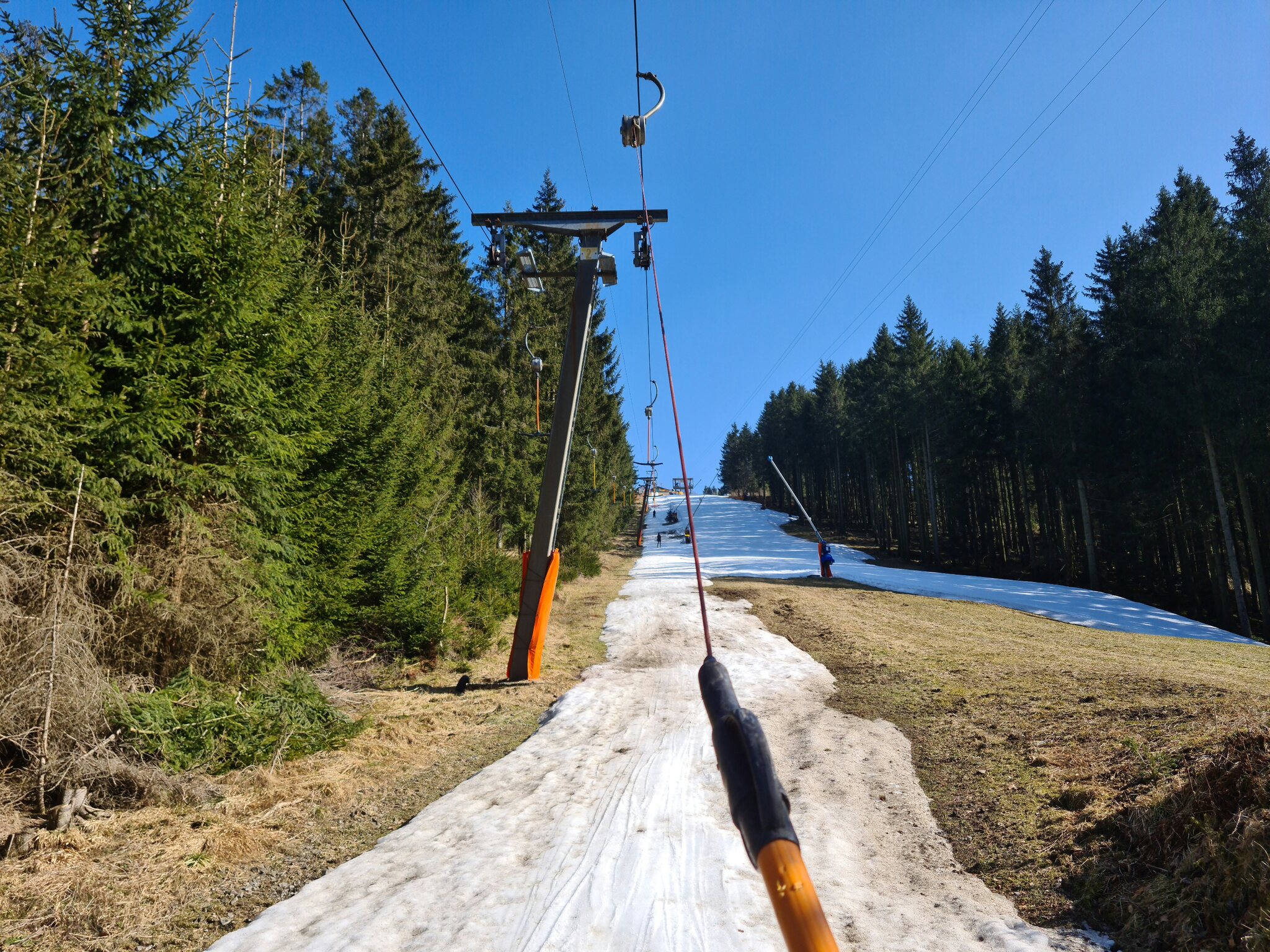 #9- Wieder im Schlepplift Westfalenhang 2. Sichtbar ist eine kurze, braune Stelle in der sonst noch weißen Lifttrasse. Als ich in der Sesselbahn Kapellenhang die Bilder im "Wie viel Schnee braucht es, um Skizufahren?"-Topic gesehen und gleich etwas durch das Topic gescrollt habe, sah ich diese Stelle aber mit anderen Augen.