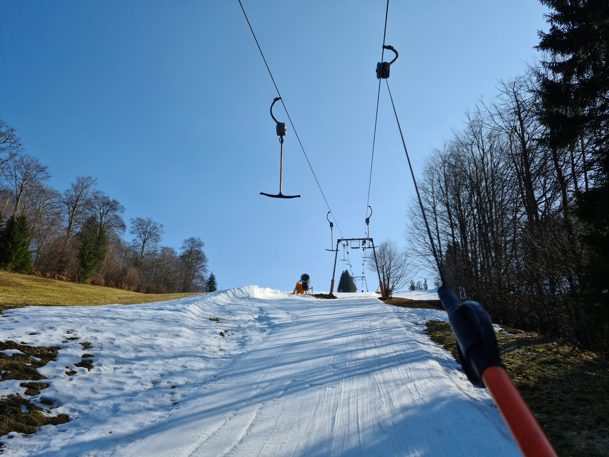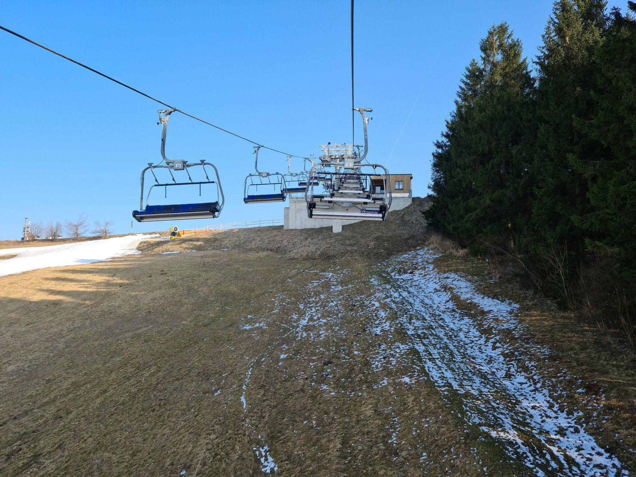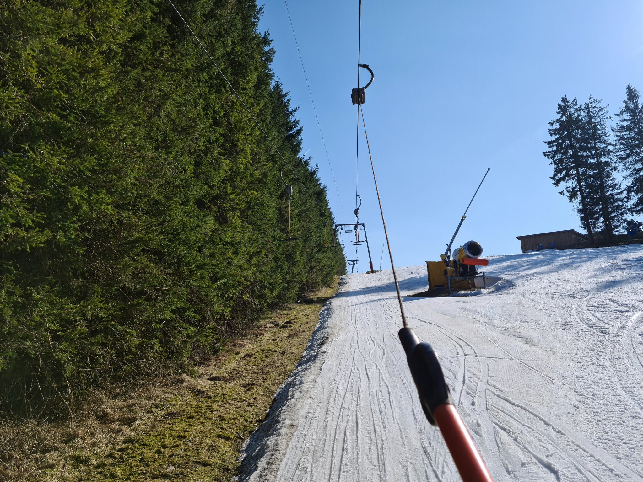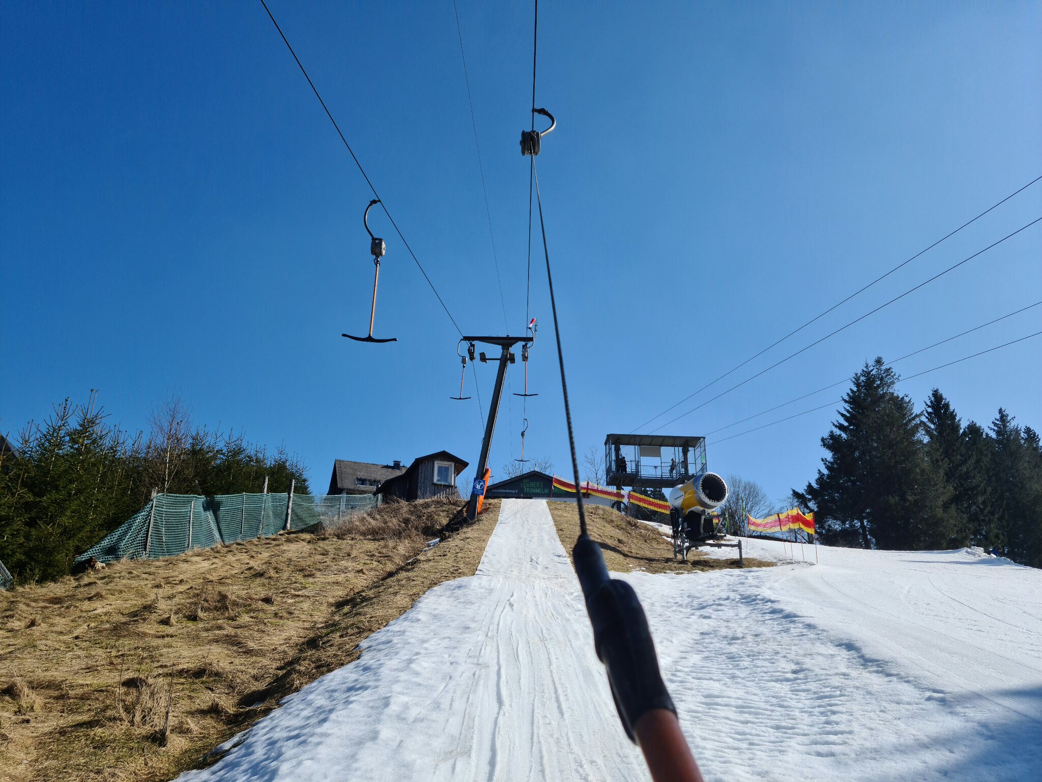 #9- Wieder im Schlepplift Westfalenhang 2. Sichtbar ist eine kurze, braune Stelle in der sonst noch weißen Lifttrasse. Als ich in der Sesselbahn Kapellenhang die Bilder im "Wie viel Schnee braucht es, um Skizufahren?"-Topic gesehen und gleich etwas durch das Topic gescrollt habe, sah ich diese Stelle aber mit anderen Augen.