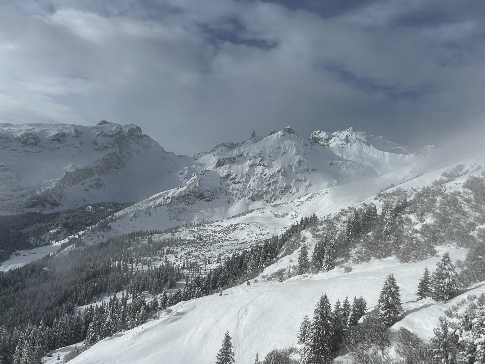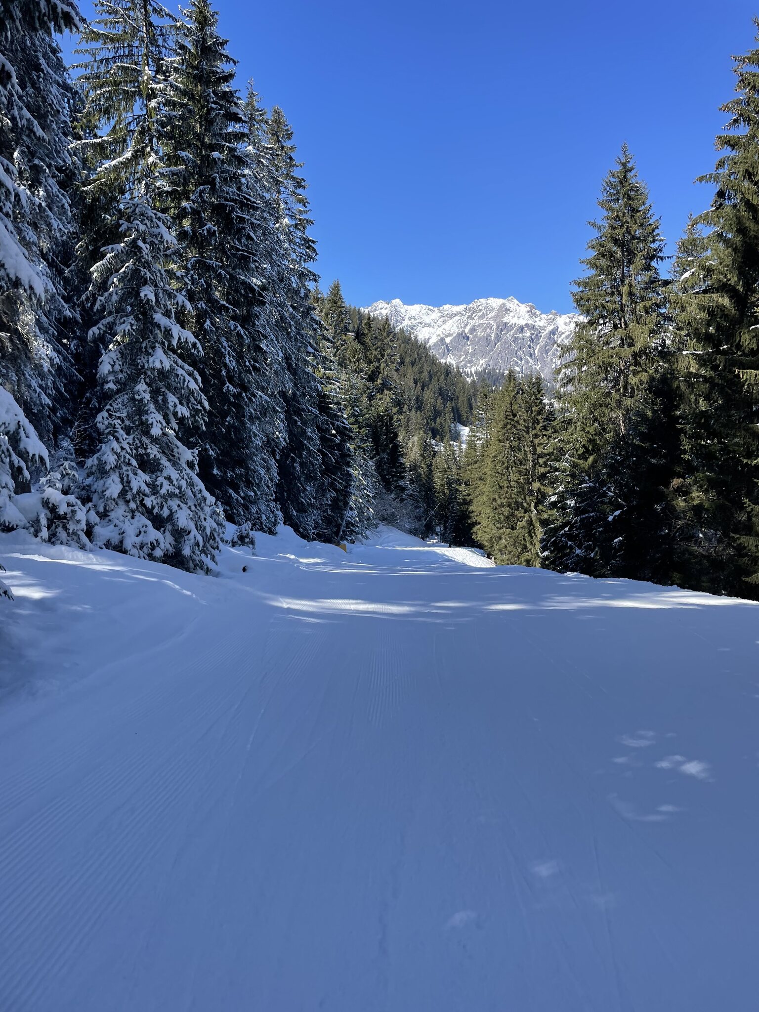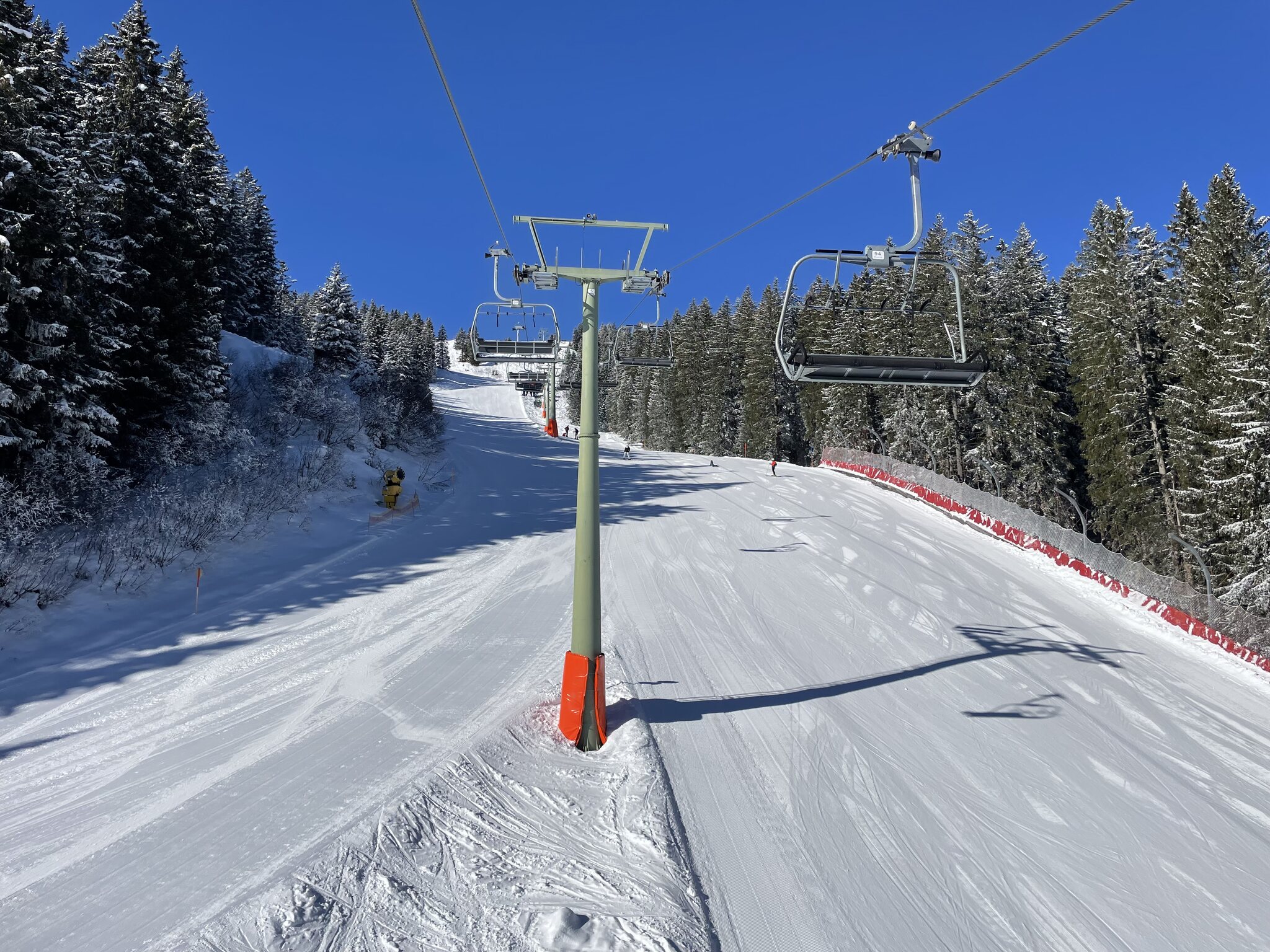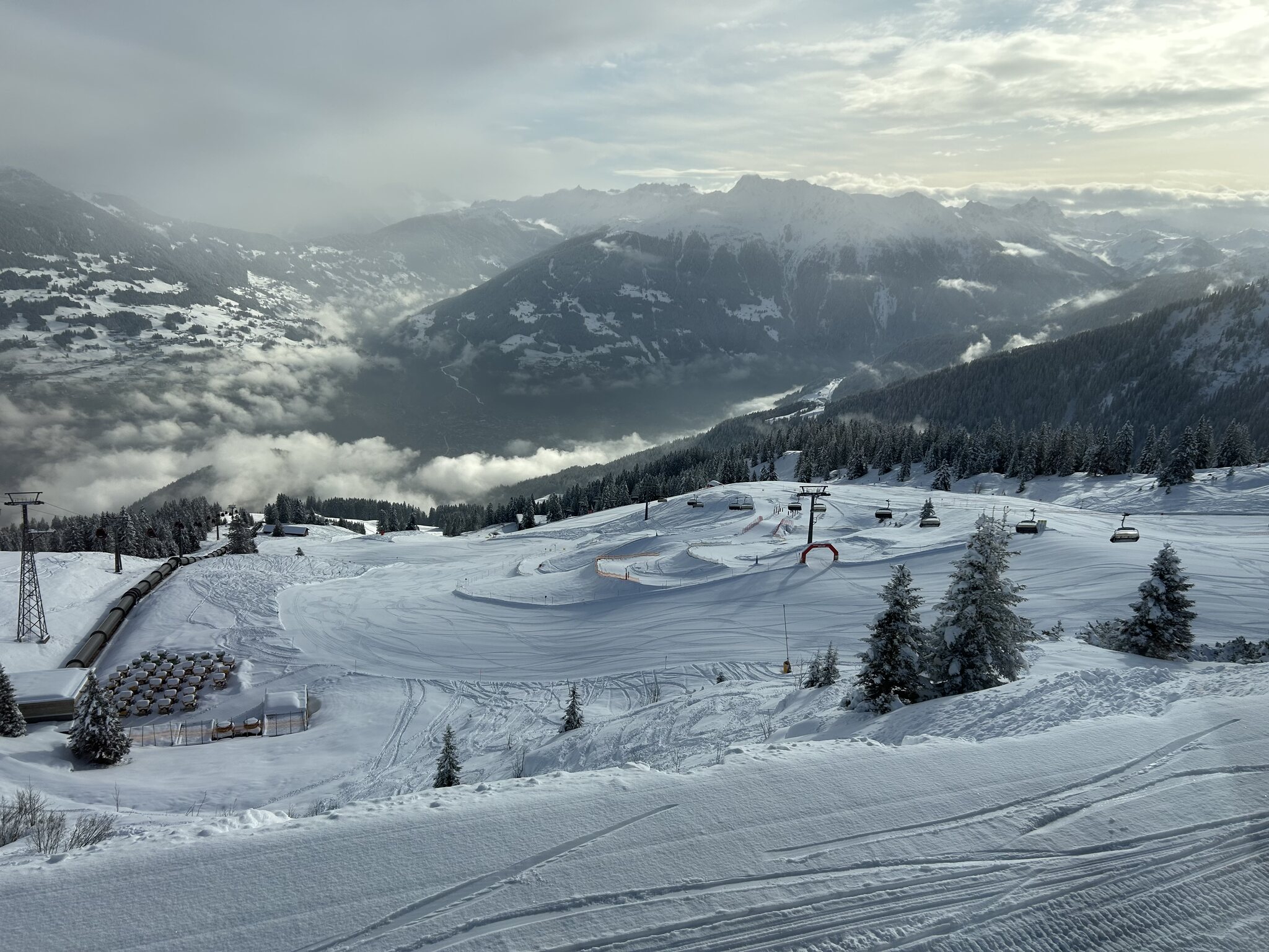 kaum Andrang und perfekte Pisten bis am ende des Tages, nur im untersten Abschnitt um Matschwitz wurde es am Nachmittag sulzig. Ansonsten genial harte Pisten ohne Haufenbildung und glattgebügelt präpariert. Die Talabfahrt nach Latschau ist offiziell geschlossen aber noch gut fahrbar. Nur ein Hang ist ziemlich braun und die Strasse muss springend oder laufend gequert werden.