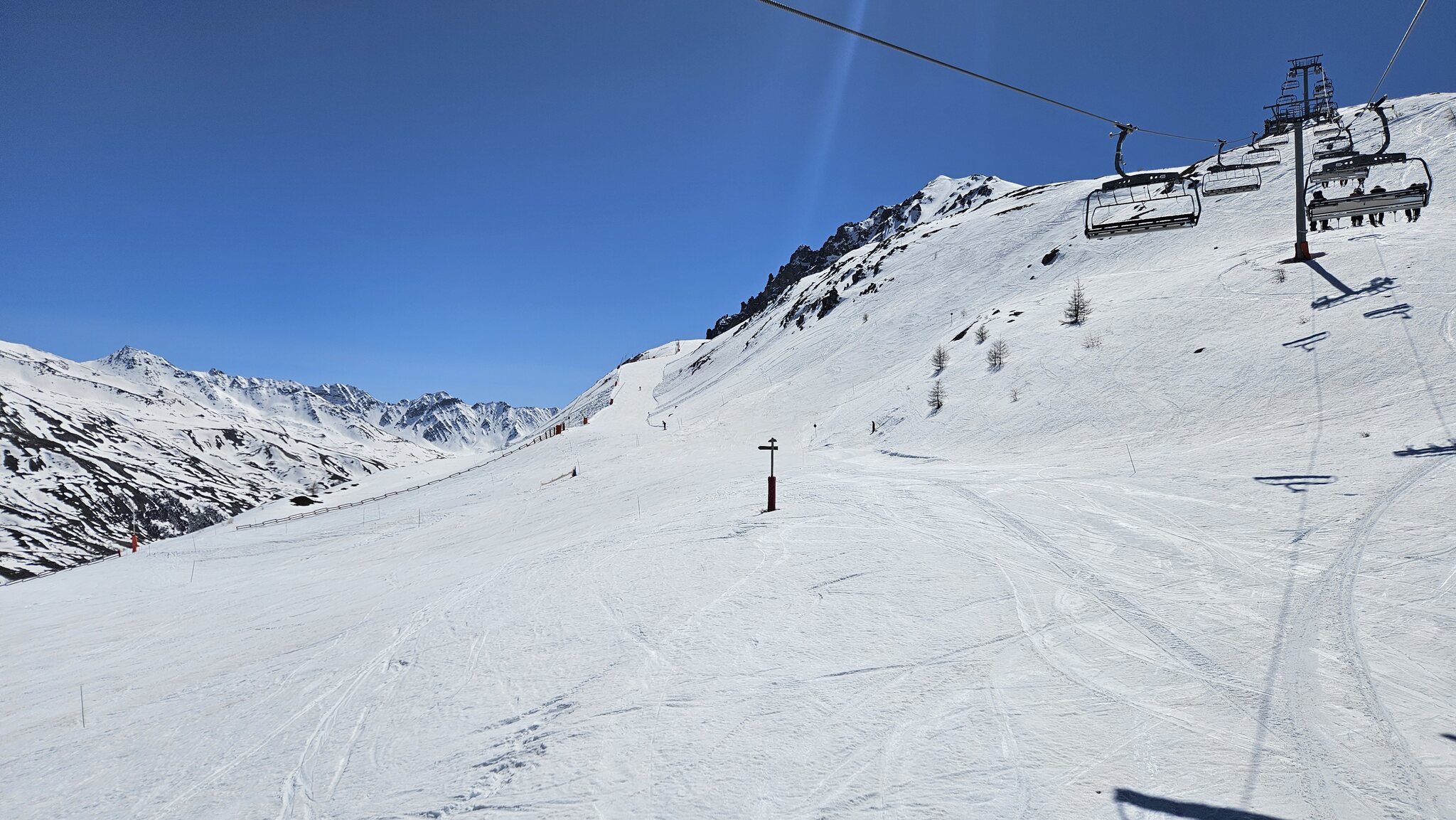 Das erste Mal, im April in Frankreich auf den Skis, hat sich so richtig gelohnt. Drei Tage Sonne satt und perfekte Verhältnisse. Man merkt hier schon ein riesiger Unterschied zur Schweiz. Alles was vom Schnee her noch geht, wird hier offen gelassen. Und das Angebot wird gut angenommen. Da das Marketing auf Wochengäste ausgelegt ist, funktioniert das bis zum Saisonschluss. Viele mittelgrosse Gebiete haben am Freitag 11.4 Saisonschluss, was zeigt, dass vor allem für die Resortbesucher offen gelassen wird.