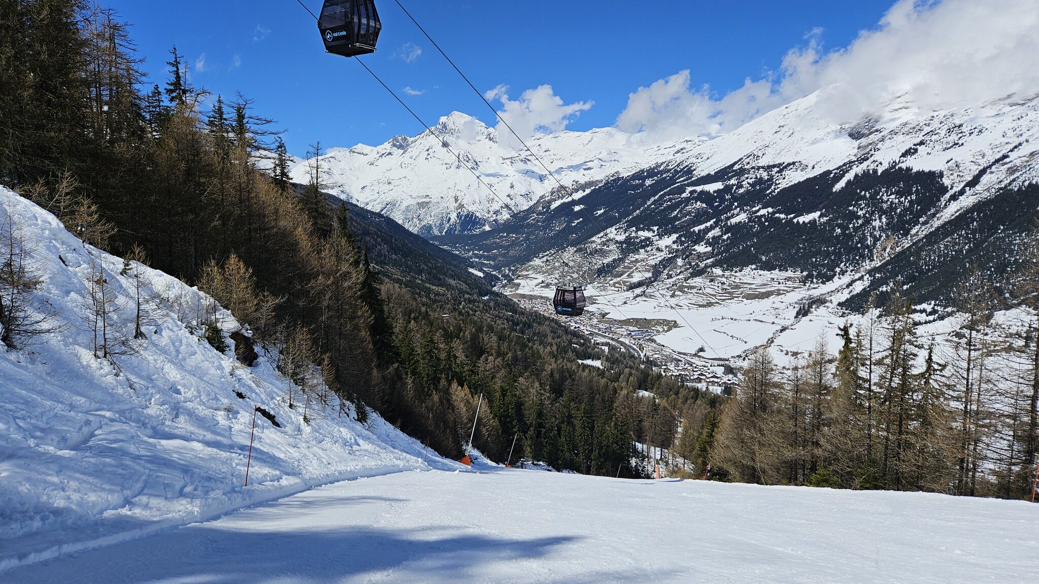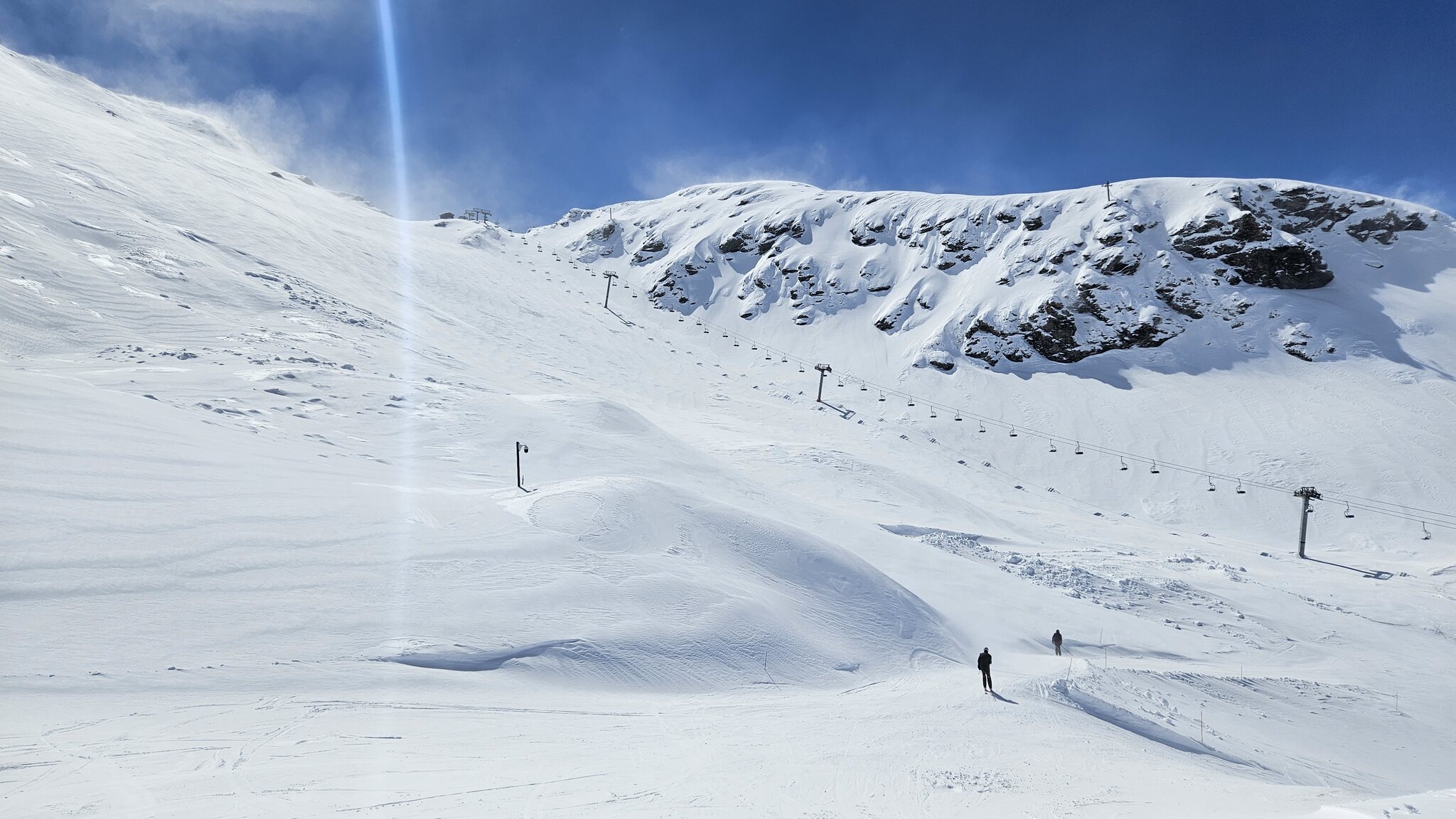 Geöffnet war leider nur noch die 10EUB Vieux Moulin, die 6KSB Solert sowie die 6KSB im Anfängerbereich. Jedoch erschliessen diese beiden Hauptanlagen eine grosse Auswahl an Pisten.