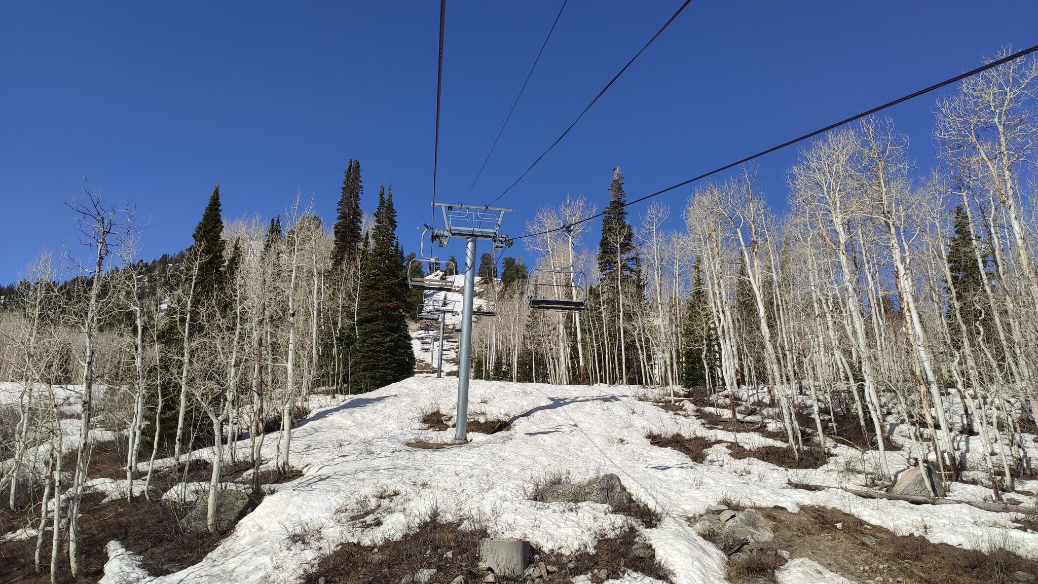 Die einzig weitere Spring Skiing Option mit dem Ikon Pass in der "Nähe" war Solitude in Utah, wobei das auch schon ein 500 Meilen Trip nach Salt Lake City war. Der Tag fing schon warm an, die Nacht war allerdings klar. 9h war Betriebsbeginn, hier hätte man auch eine Stunde vorziehen können. Eingestiegen bin in am Moonbeam Express.