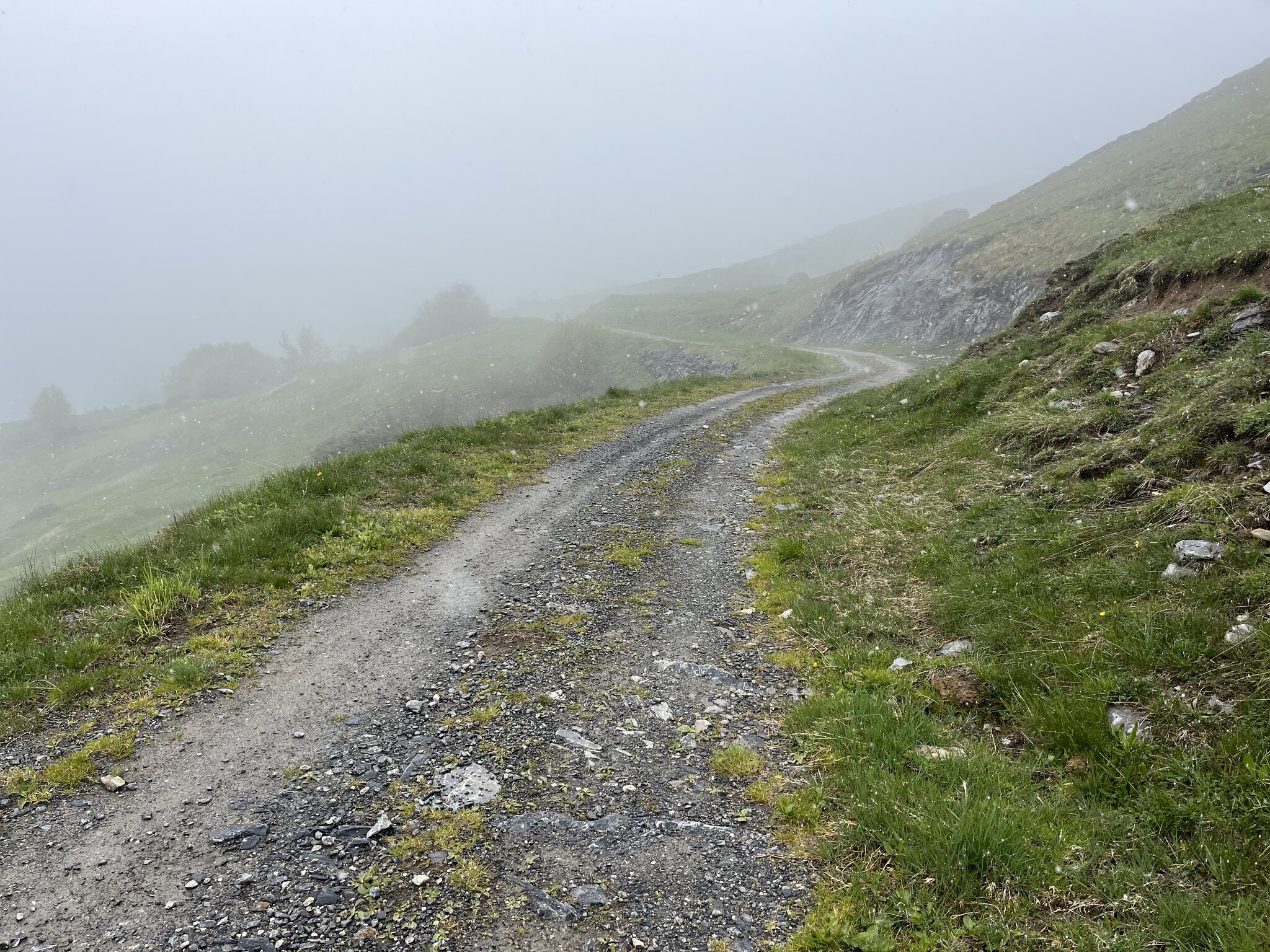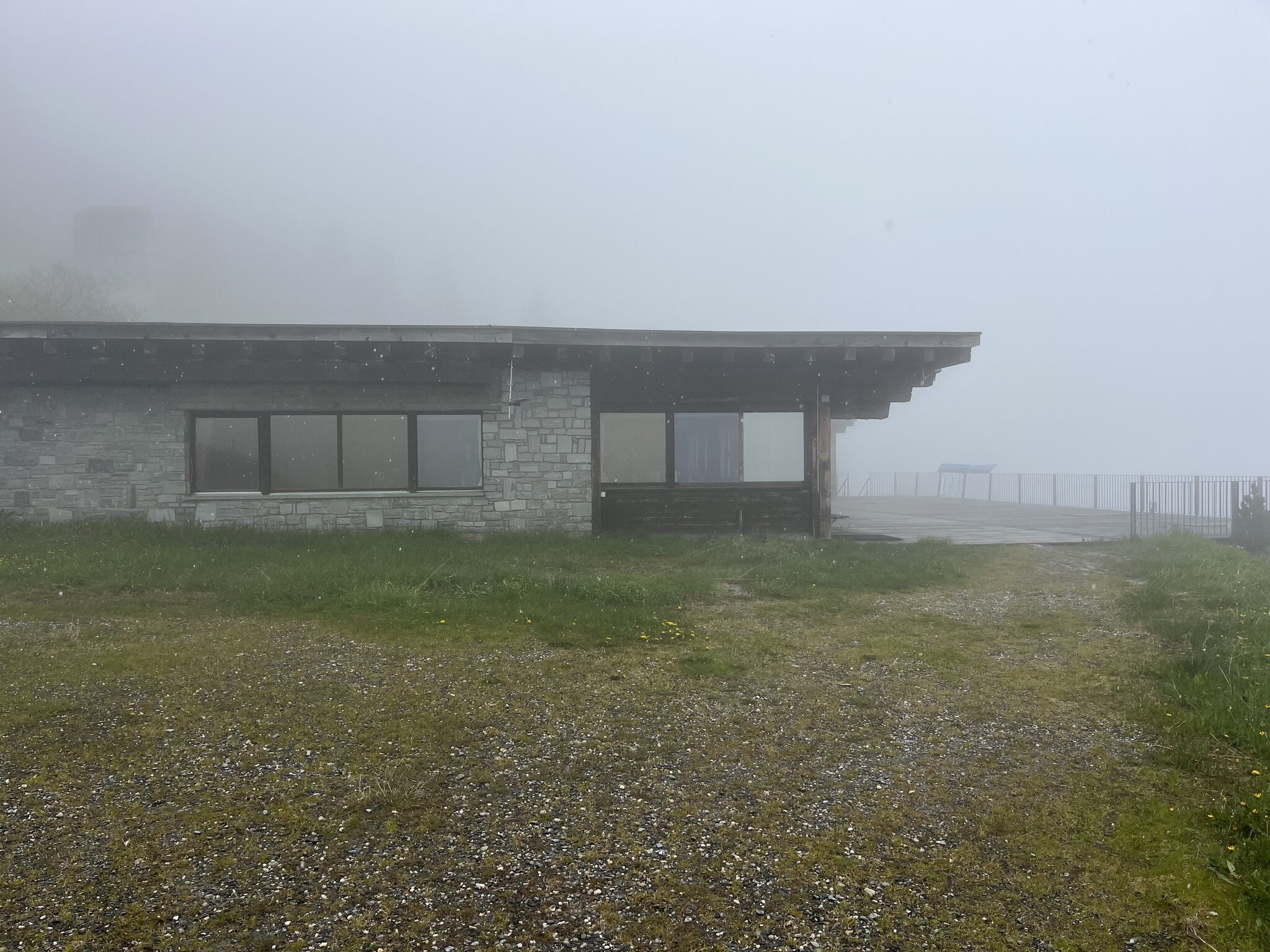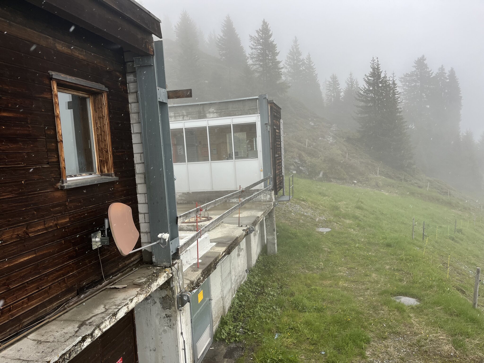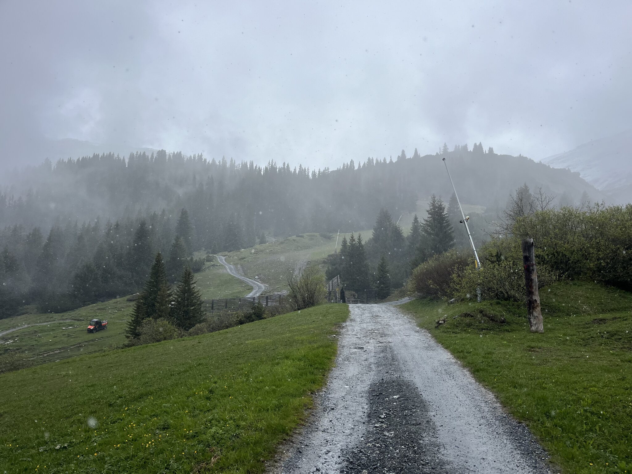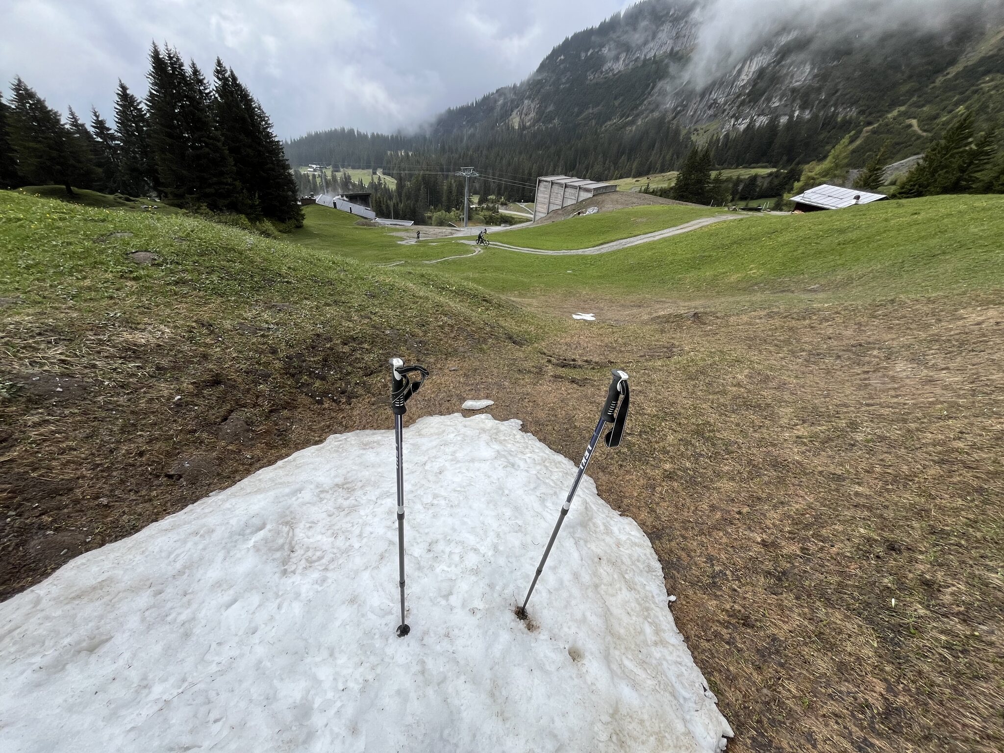 Dann geht es halt auf der Skipiste trotz Schneefall ohne Ski weiter: