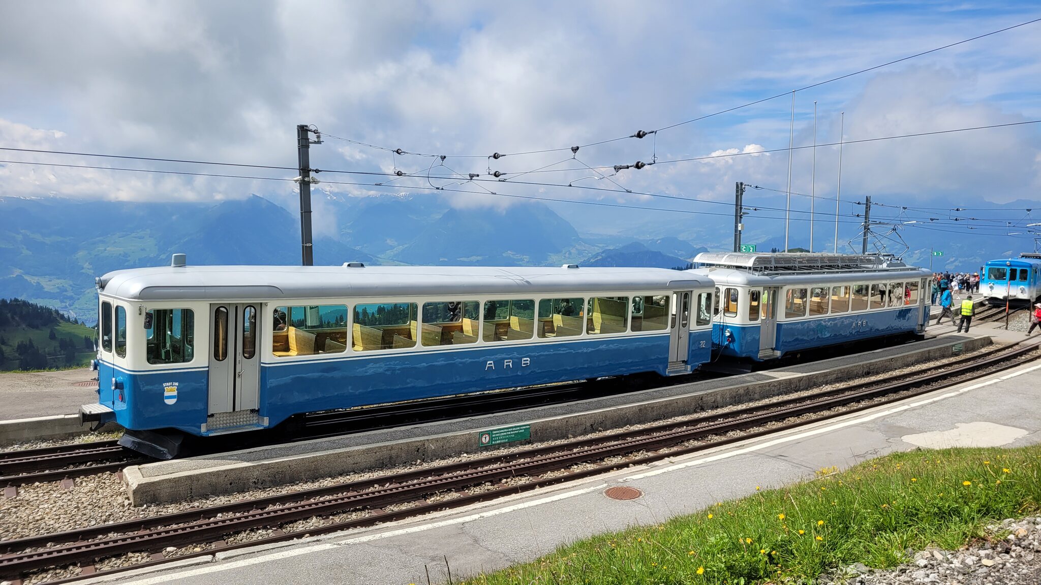 Wobei das nicht die ältesten Wagen sind, die Linie wurde schon 1875 erbaut und feiert ihr 150. Jubiläum. Endstation auf Rigi Kulm: