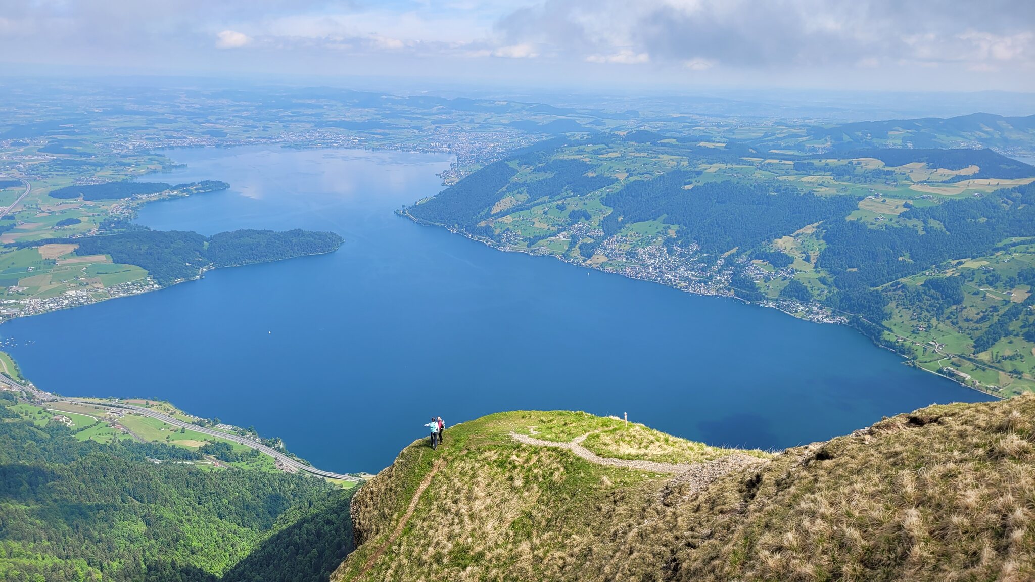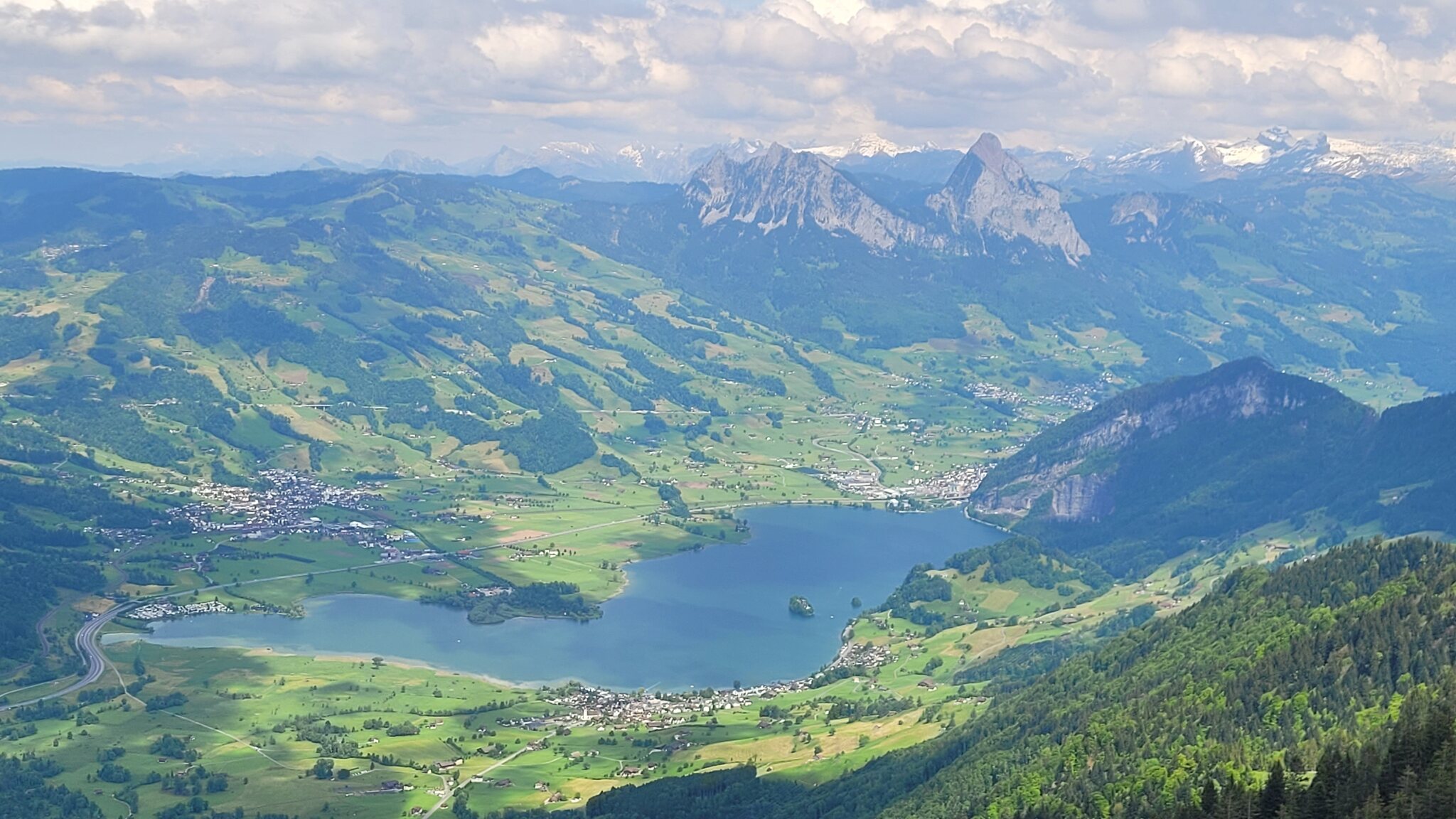 Von oben hat man eine tolle Aussicht auf den Lauerzersee und den Mythen dahinter.