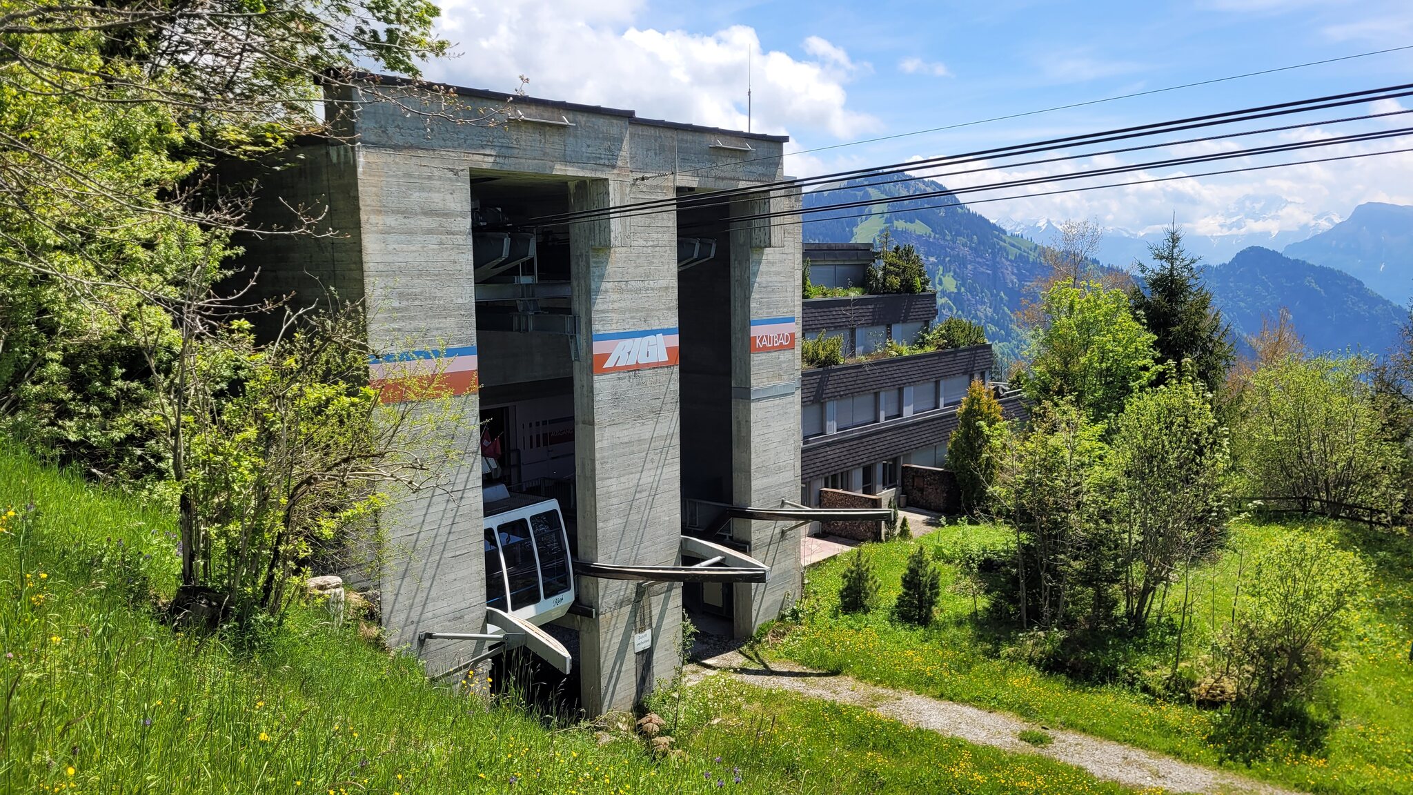 Neben der zweiten Zahnradbahn-Linie nach Vitznau ist Rigi-Kaltbad auch durch eine Pendelbahn von Weggis erschlossen, deren Bergstation ebenfalls schon etwas vintage ist.