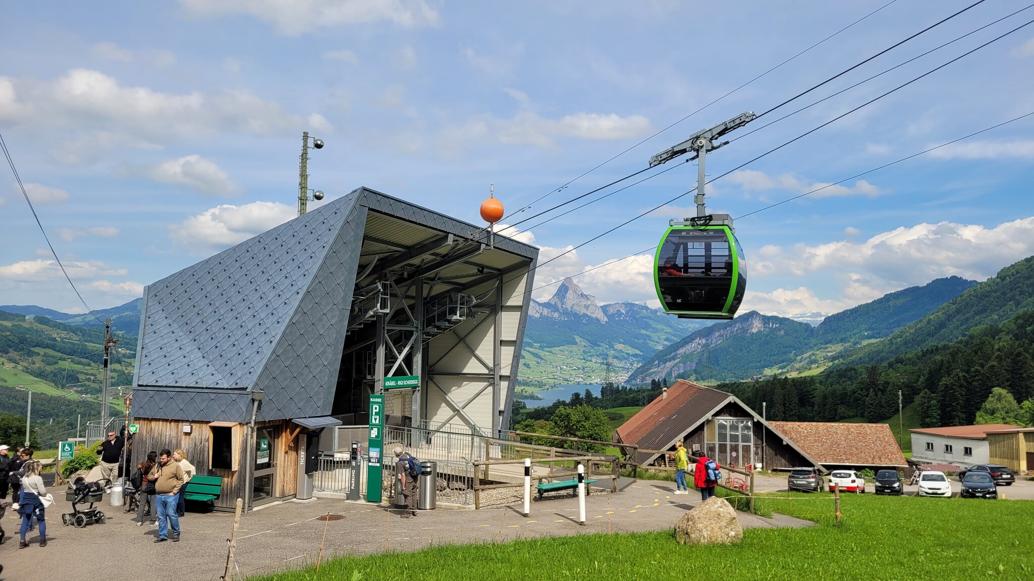 Auf dem Rückweg nach Goldau habe ich einen weiteren Stopp eingelegt, um in Kräbel mit der Pendelbahn nach Scheidegg zu fahren. Die Bahn wurde 2017 gebaut, die Talstation ist komplett automatisiert. Die Kabinen sind für 15 Personen ausgelegt.