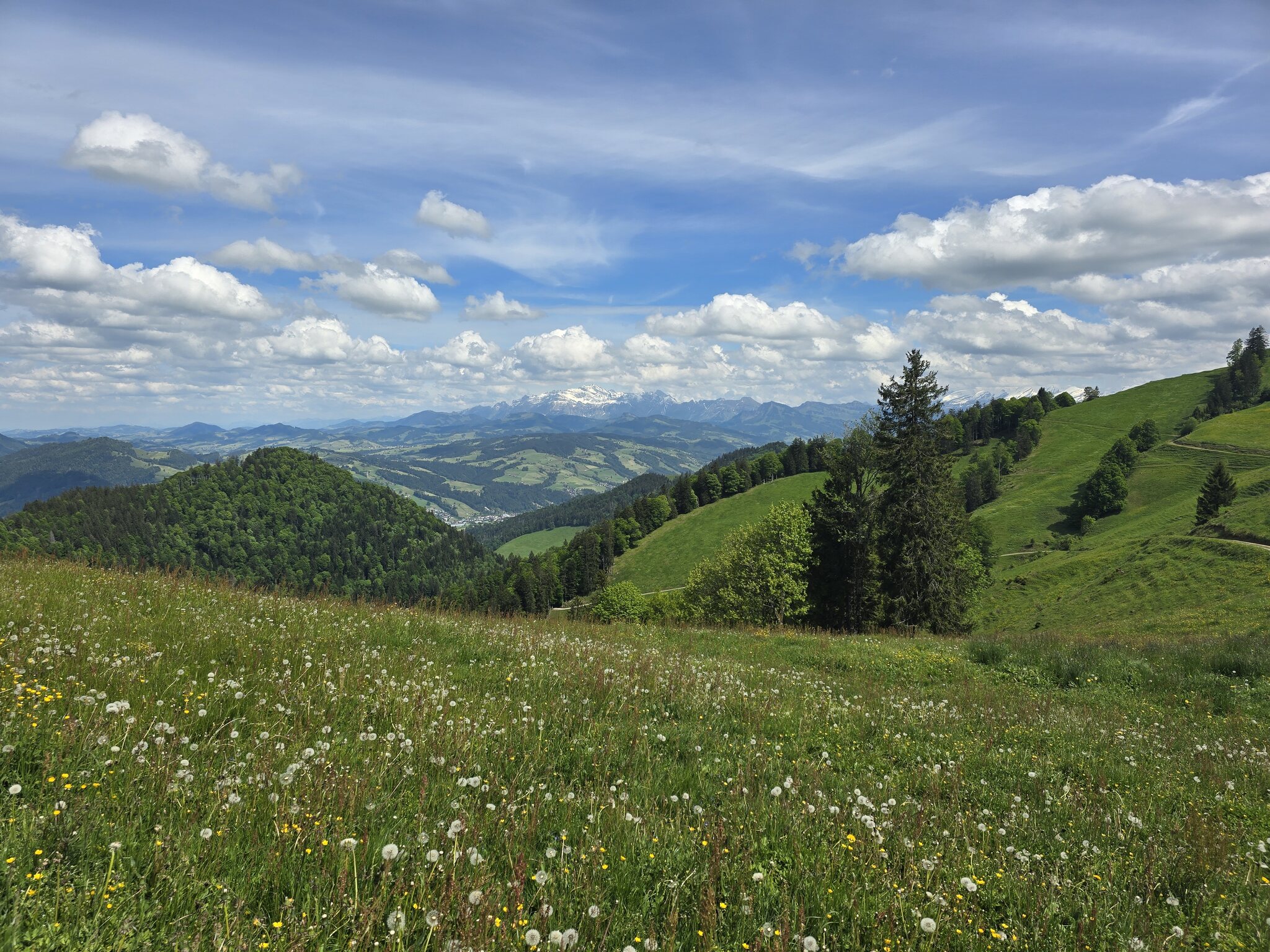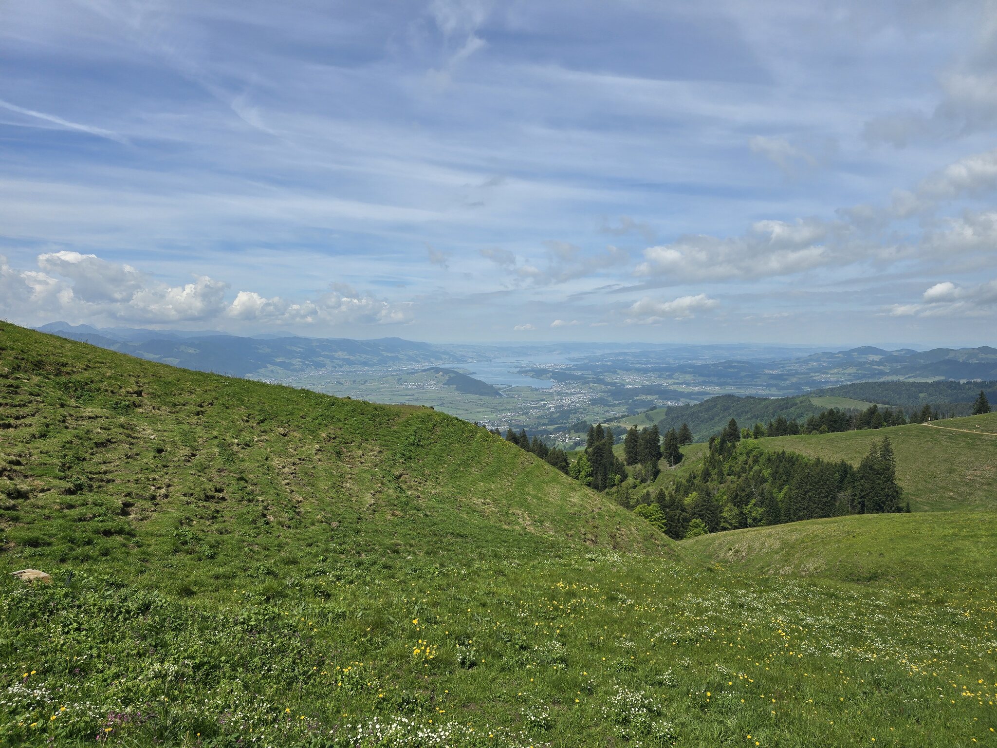 Es war eine absolut geniale Runde, ideal für die eher kühlen Temperaturen an diesem Tag. Die Runde bietet alles, was das Bikerherz begehrt: Lange und teilweise steile Aufstiege, traumhafte Ausblicke in die Alpen sowie zum Zürichsee, abwechslungsreiche und teilweise anspruchsvolle Trails den Berggraten entlang und einen sehr hohen Trailanteil in der Abfahrt (es werden gerade einmal rund 300-400 der über 2000 Tiefenmetern auf Asphalt/ Kiesstrasse zurückgelegt)