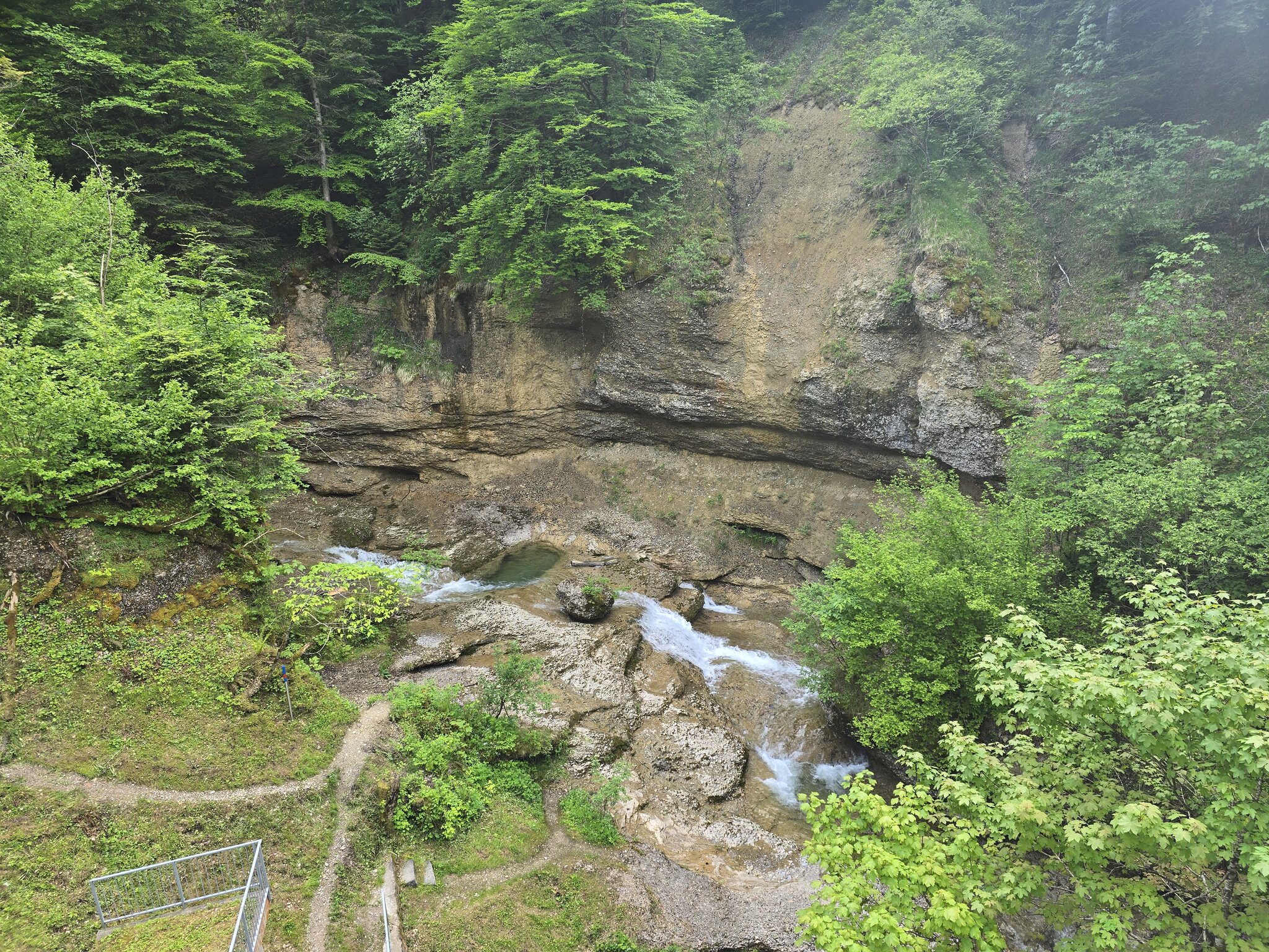 Nach einer guten halben Stunde geht es weiter dem Berggrat entlang zum Tierhag unterhalb des Schnebelhorns. Die Gegend hier ist wie gemacht fürs Mountainbike. Die Trails sind abwechslungsreich, stellenweise durchaus auch anspruchsvoll aber fast durchgängig fahrbar. Zudem geniesst man immer wieder traumhafte Ausblicke in die umliegende Landschaft. Beim Tierhag angekommen fahre ich über einen Trail runter zur Töss . Ich entscheide mich für den leichten Trail via Sennhütte, welcher kaum technische Schwierigkeiten aufweist. Es gibt hier auch durchaus schwierigere Alternativen, die überlasse ich an diesem Tag aber gerne den Downhill-Cracks. An der Töss ankommen fahre ich gemütlich der Fahrstrasse entlang talauswärts in Richtung Steg im Tösstal. Dabei führt der Weg immer wieder an spannenden Felsformationen vorbei: