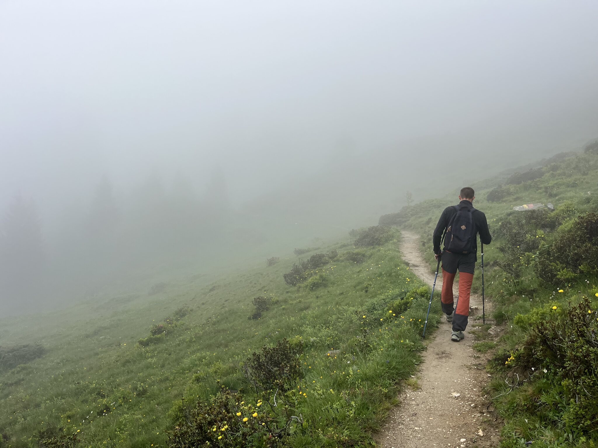 Leider ist die vermutlich schöne Aussicht komplett von Nebel verdeckt.