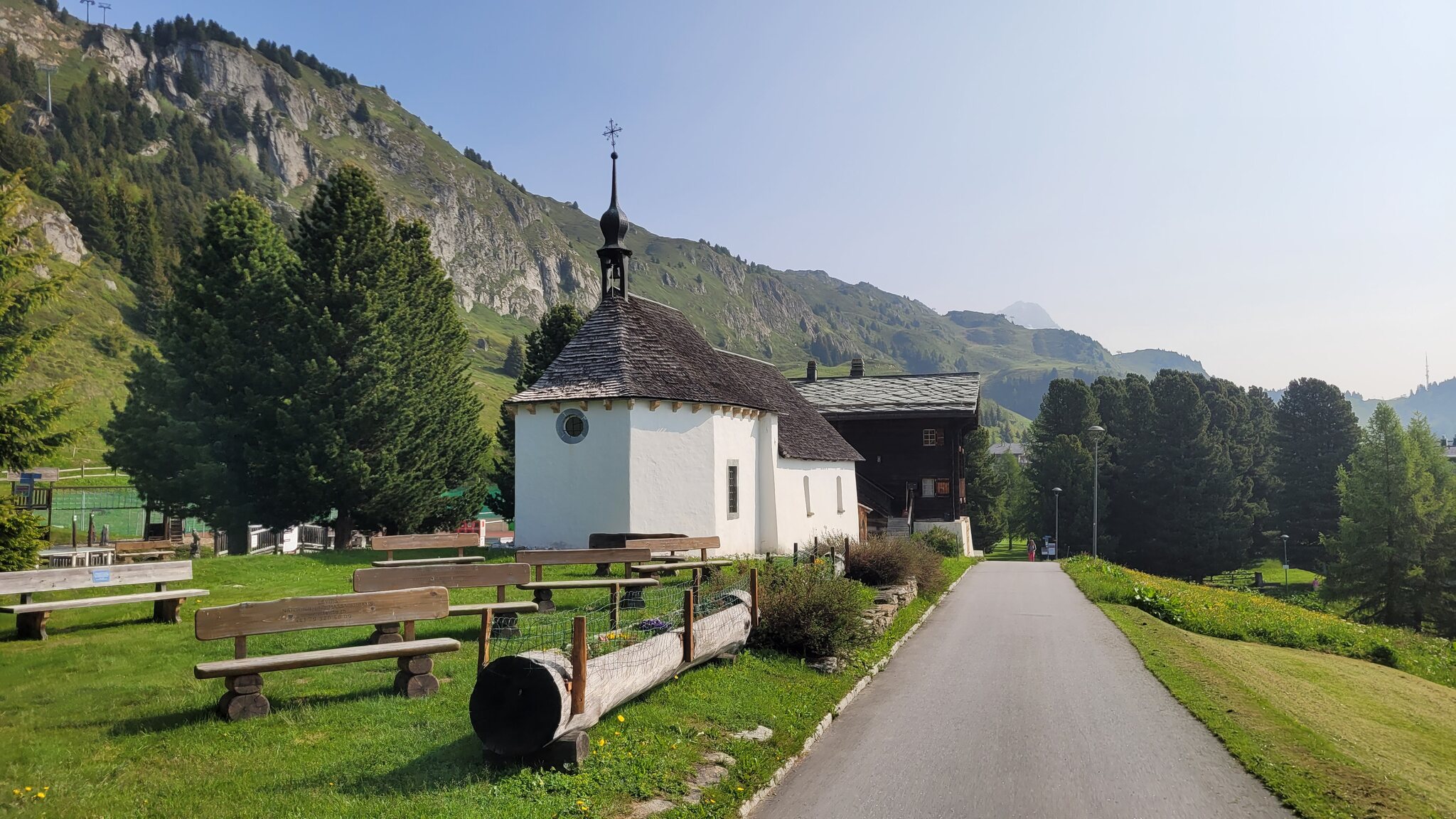 Es gibt auch noch eine kleine Kapelle, an der Ziegen versucht haben, das Pausenbrot der Wanderer zu erschnorren.