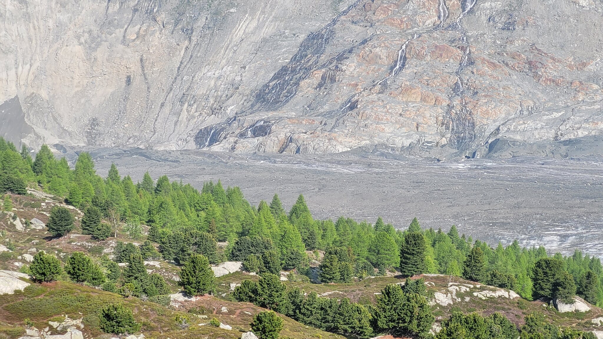 Der Aletschgletscher ist einfach eindrücklich, wenn man allerdings die Steinlandschaft und Seitenmoränen beachtet, dann wird einem in der Vorstellung bewusst wie gewaltig der Gletscher mal war.