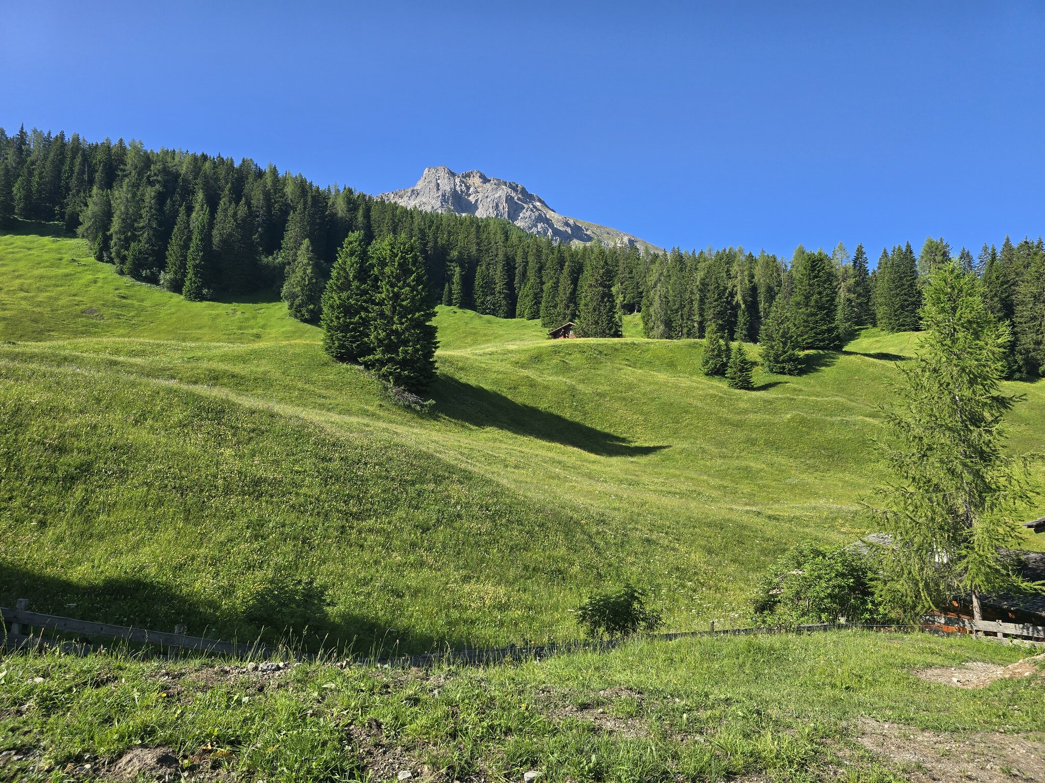 Den ursprünglichen Plan von hier nach Filisur zu fahren verwerfe ich. Einerseits wird die Zeit dafür zu knapp und andererseits gibt es dort nach Monstein nochmals einen Anstieg an diesem sonnenexponierten West-Hang. So entscheide ich mich stattdessen nach Sertig zu fahren.