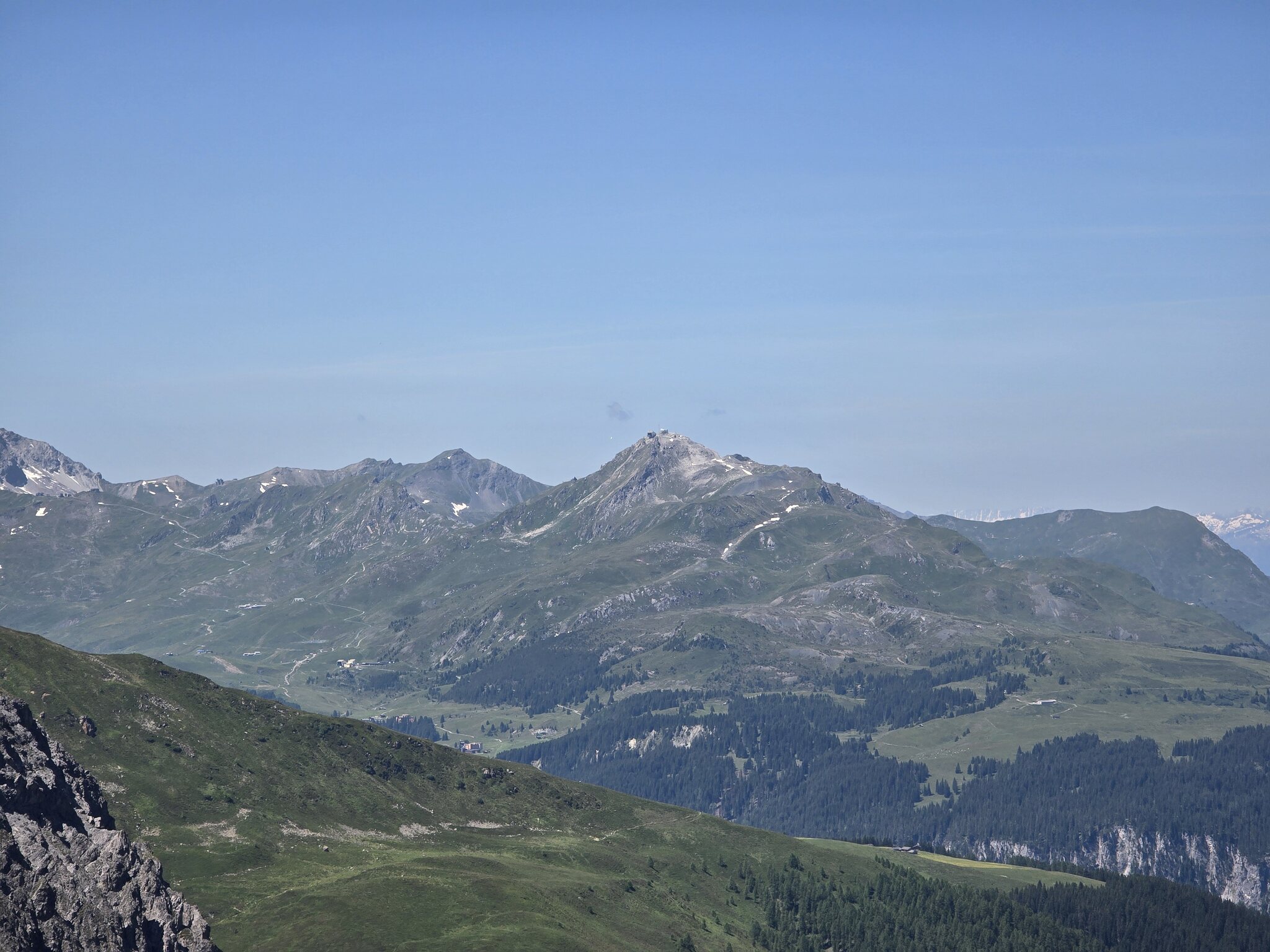 - Auch das Skigebiet von Laax ist von hier zu sehen.