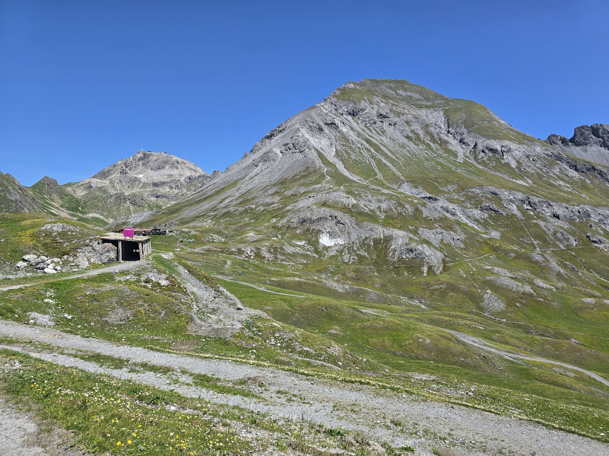Auf dem Weissfluhjoch mache ich eine Mittagspause. Bei frischen 11° muss ich mir hierfür sogar ein windgeschütztes und sonniges Plätzchen suchen. Hier oben ist von der angesagten Hitze bisher absolut nichts zu spüren.