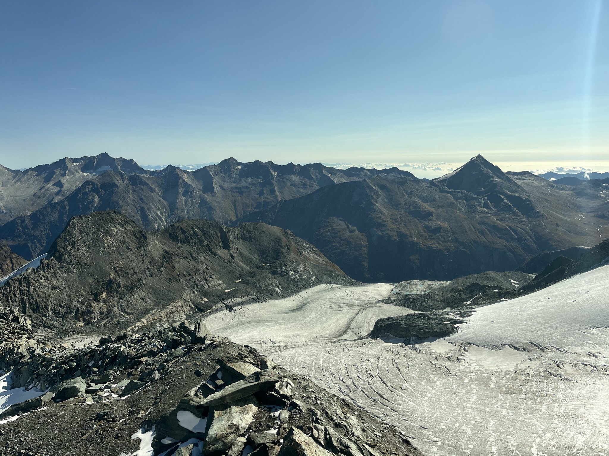 Hier noch der Blick auf den Gletscher von der Hannigalp:
