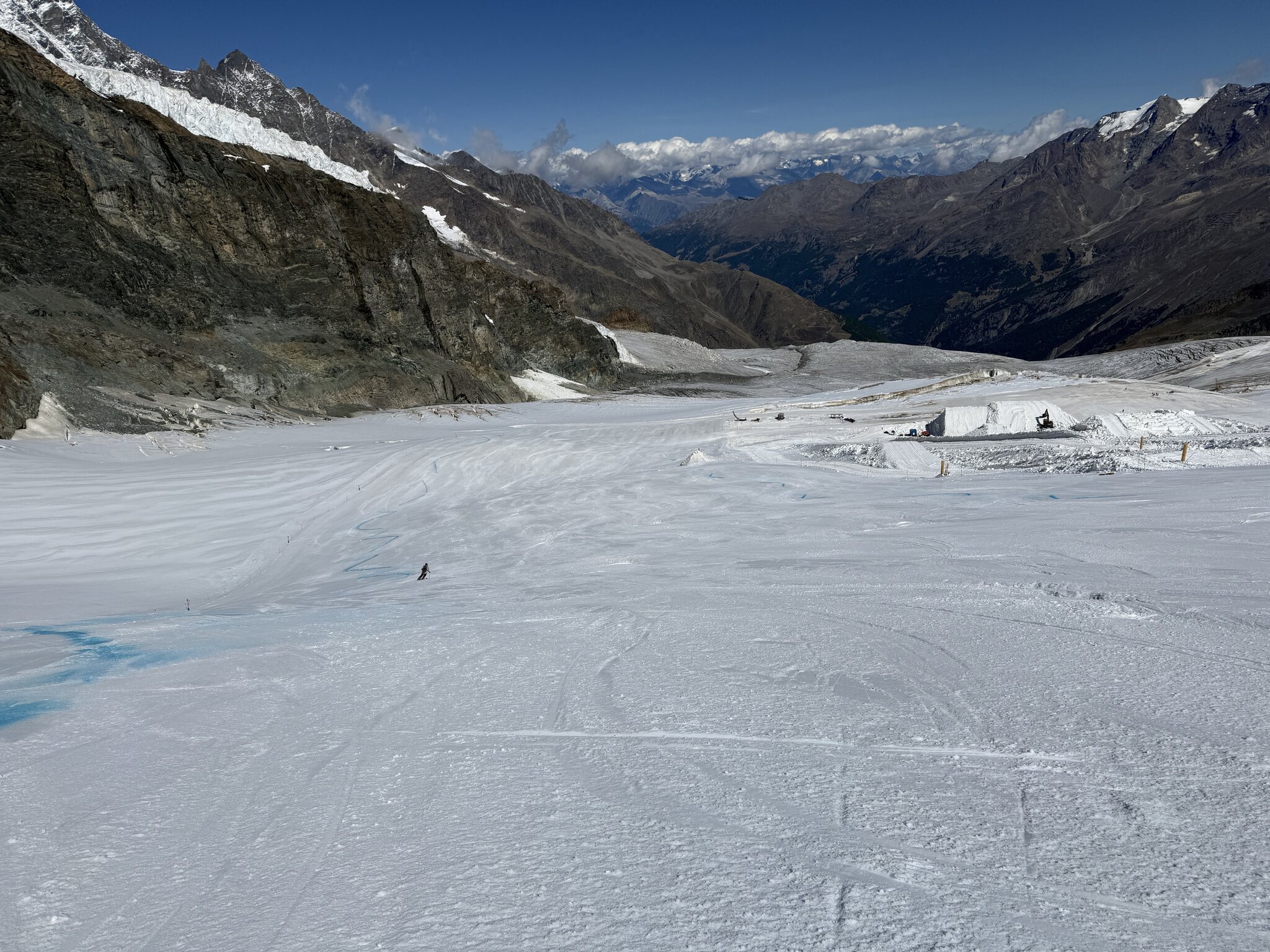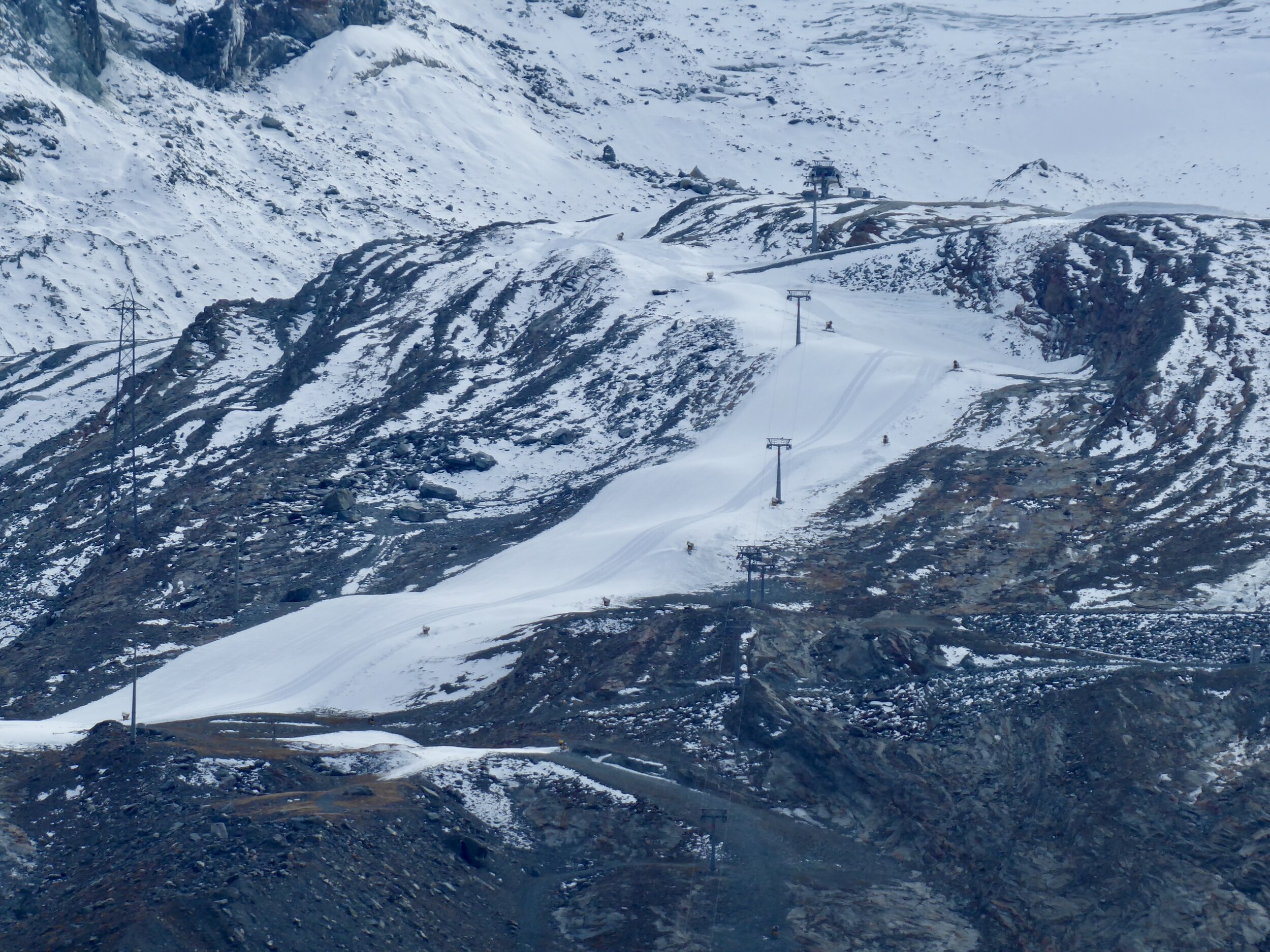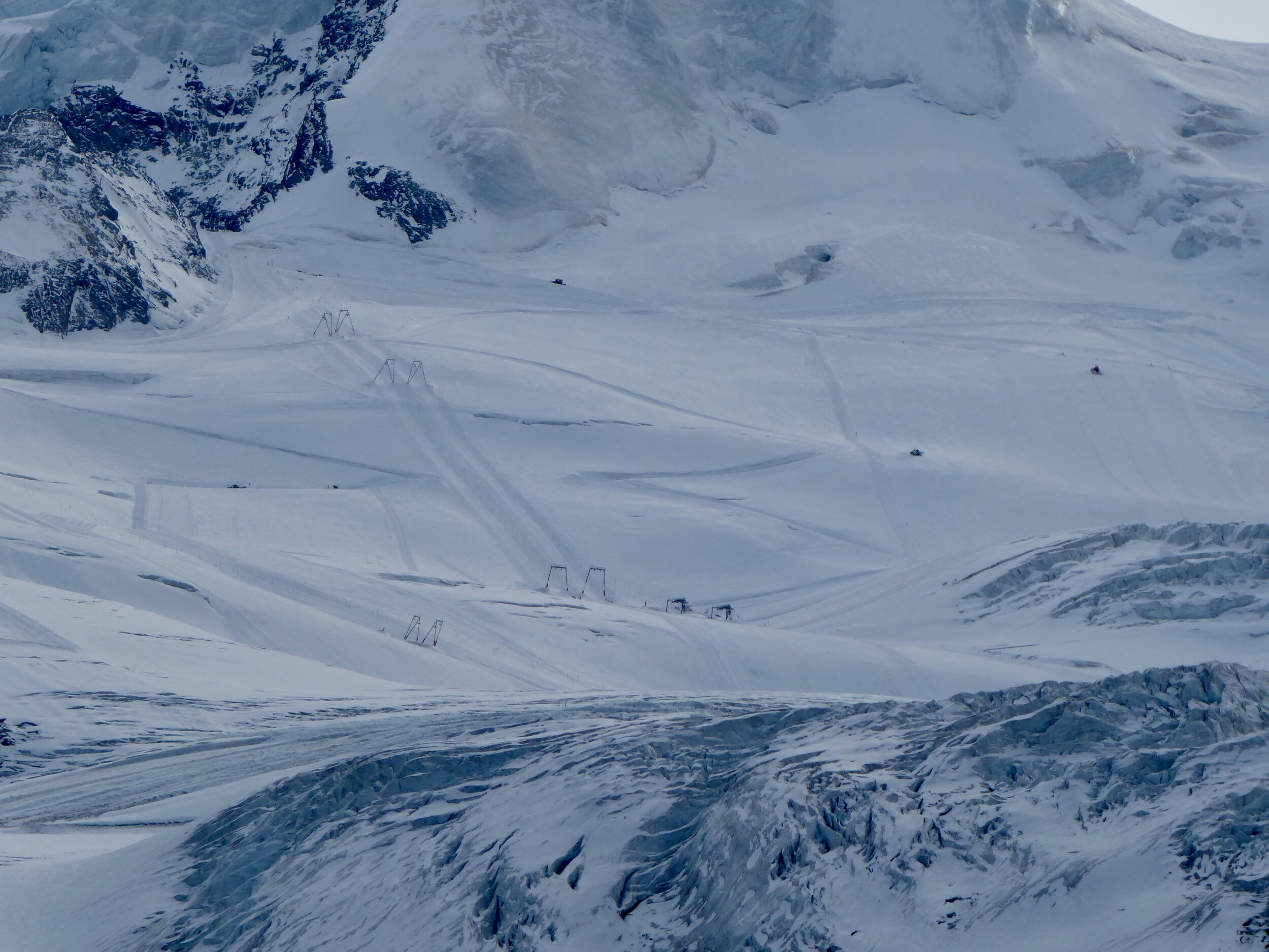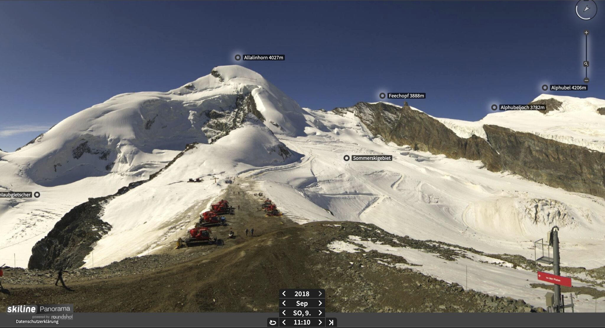 Es ist genau genommen das grüne Rohr: Saas Fee hat seit letztem Jahr (testweise?) klammheimlich einen Snowmaker auf dem Mittelallalin installiert, gut zu sehen zB in der 14 Tage Rückschau bei Bergfex, dort lief er seit Juni viele Tage den Sommer über und hat schöne weisse Häufchen produziert, die dann jeweils am Morgen und Abend verteilt wurden. Auch 2024 lief er schon.ski-chrigel hat geschrieben: 15.09.2025, 07:53 Ich nehme mal an, dass diese Kanone für den Schnee hier verantwortlich ist.
