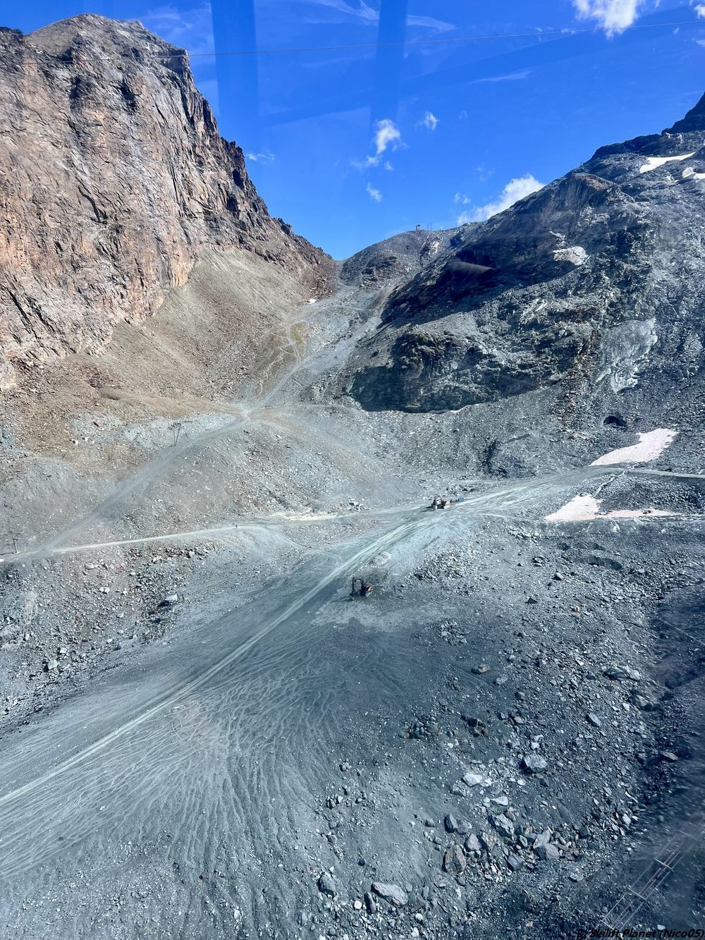 Es ist schon einige Jahre her, dass ich in Sass-Fee zum Sommerskifahren war. Damals konnte keine Rede davon sein, dass der Weg braun war.