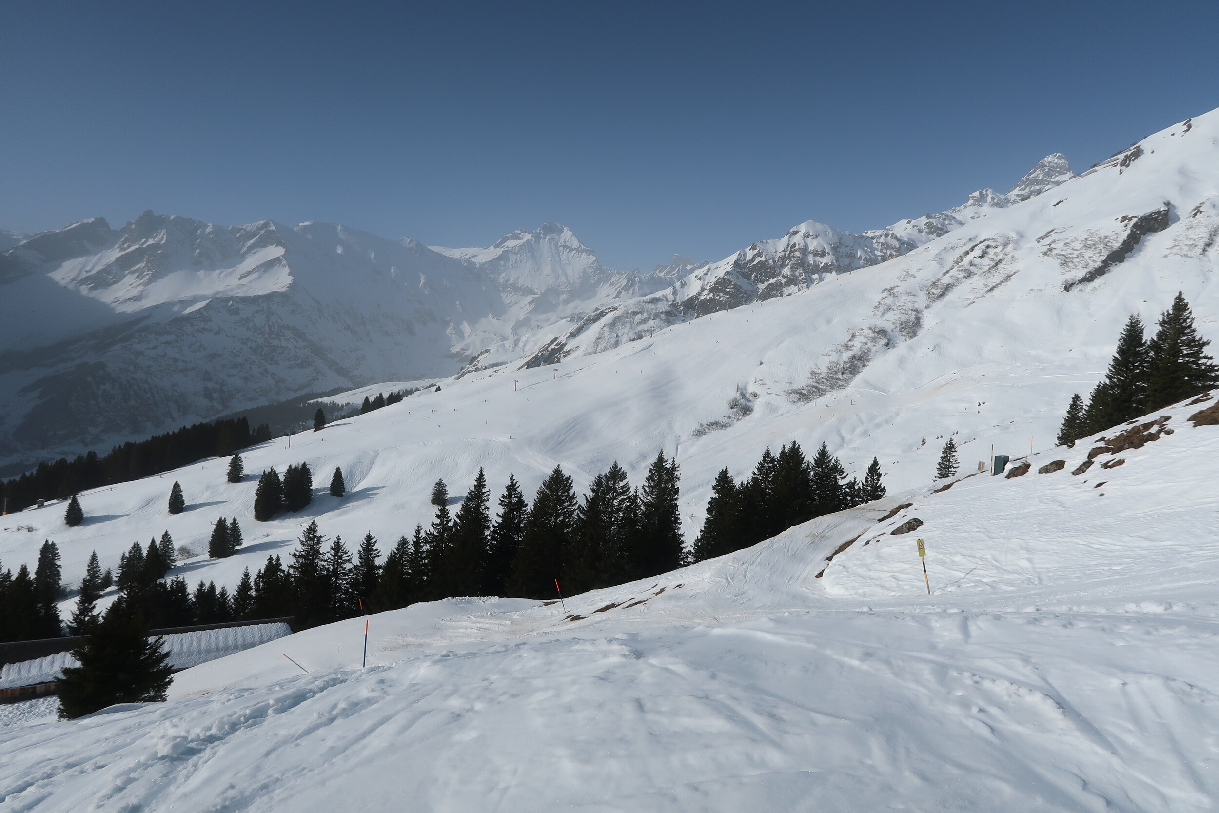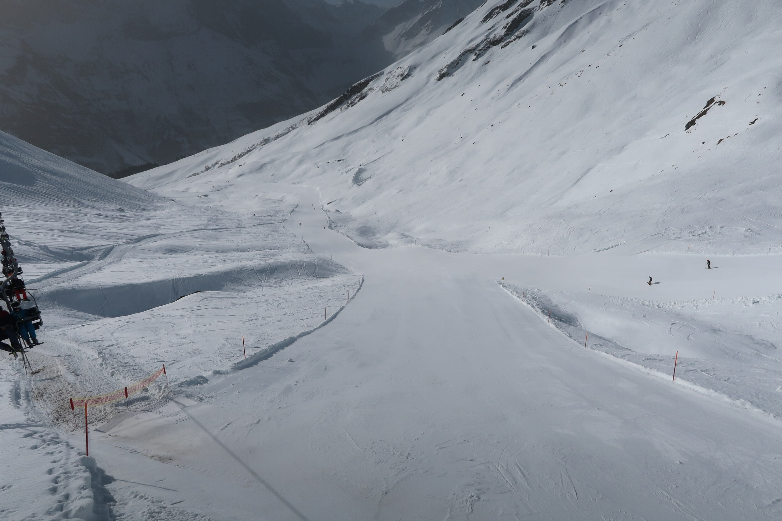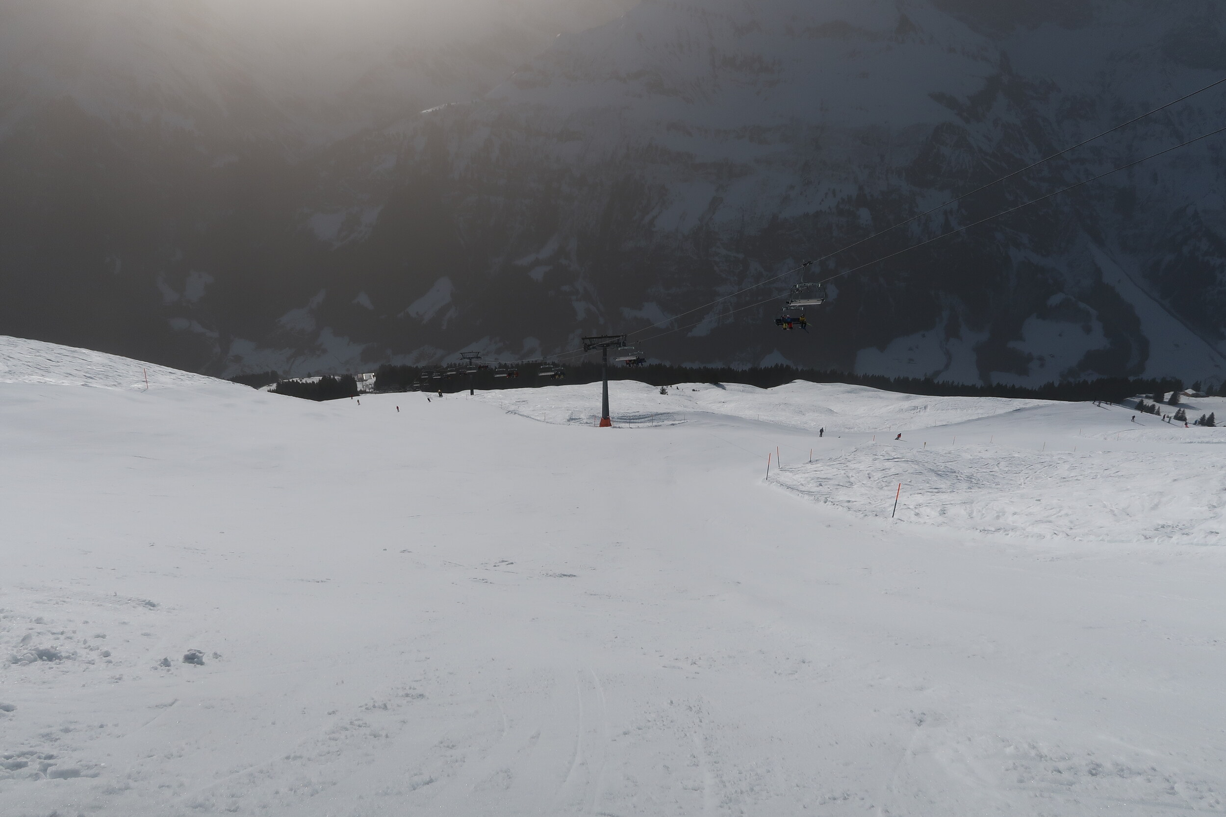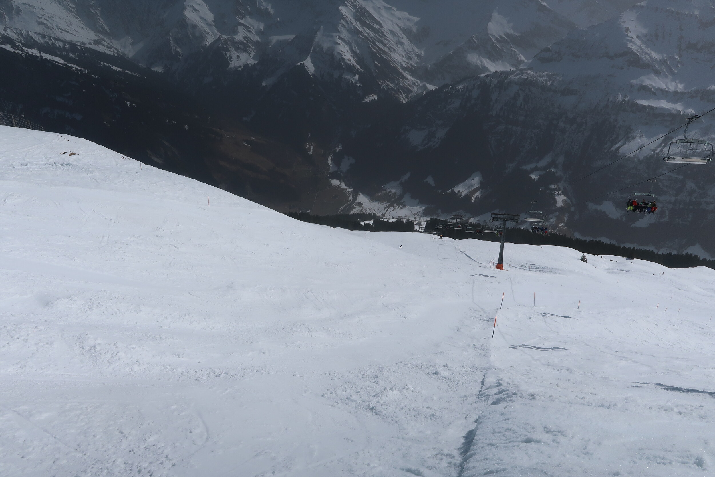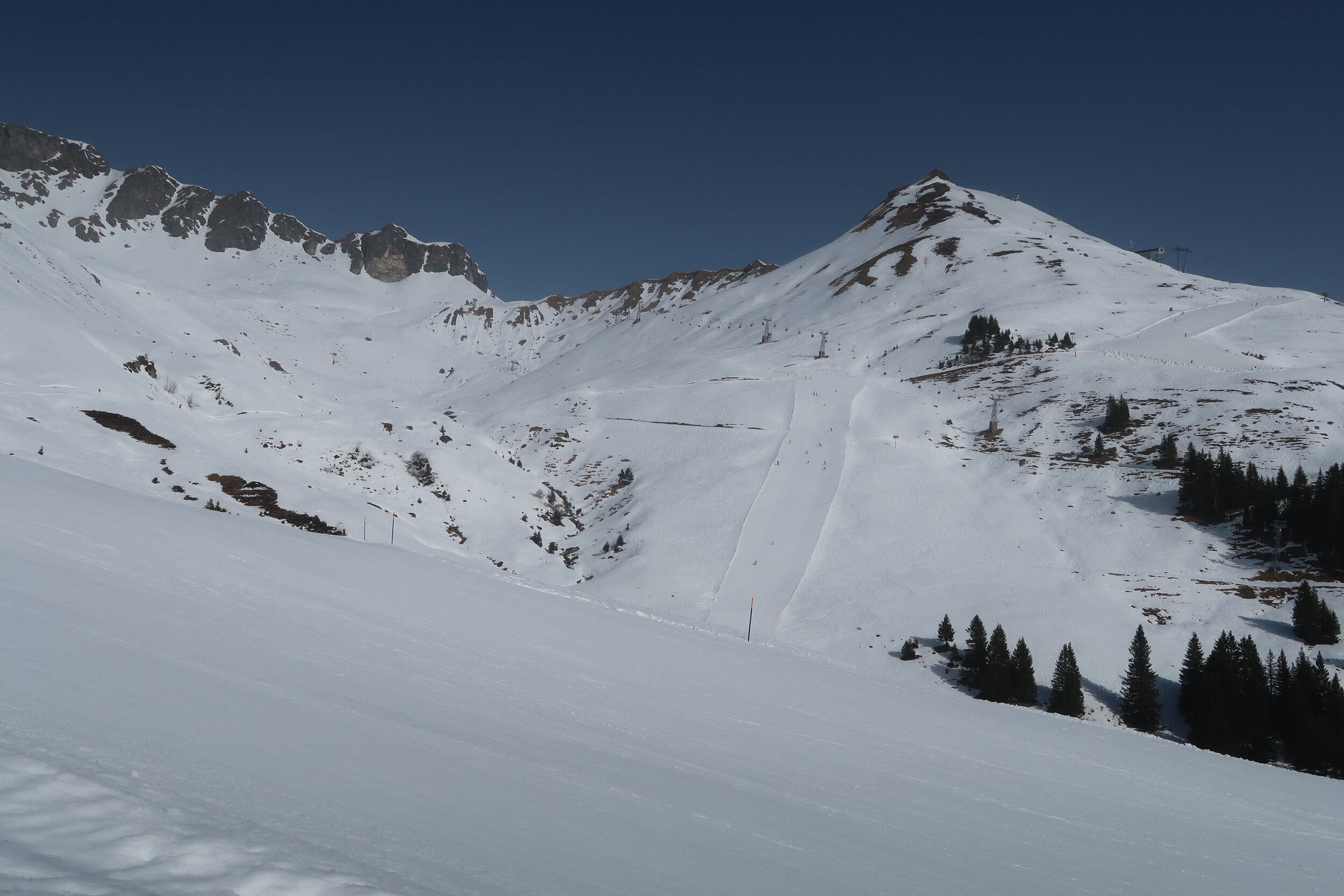 Die blaue 4 am Schlepper war ganz oben von Anfang an schon sehr braun und sulzig. Die rote 3 für Stangenfahrer gesperrt. Nach dem braunen Teil war die blaue 4 vormittags aber die beste Piste.
