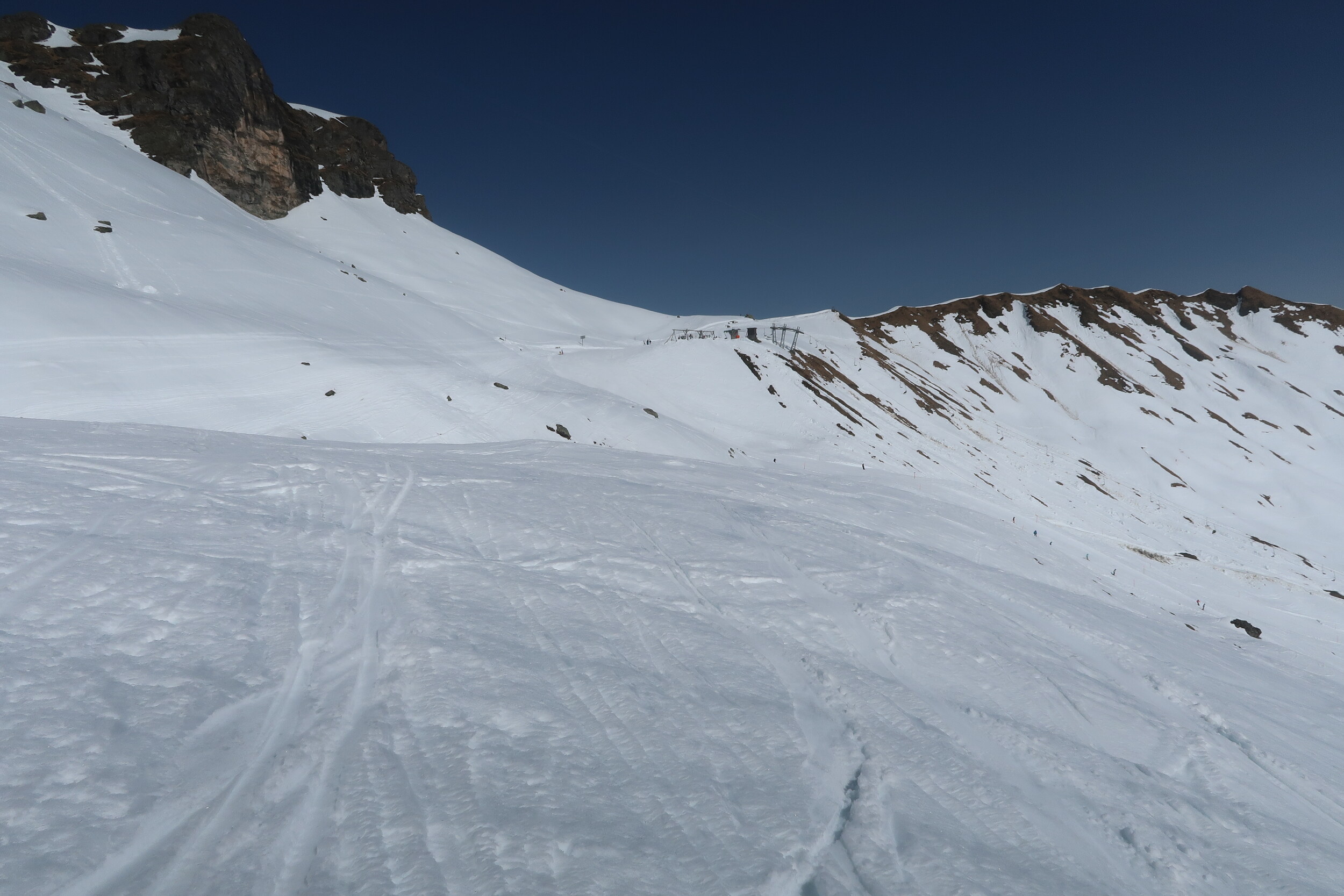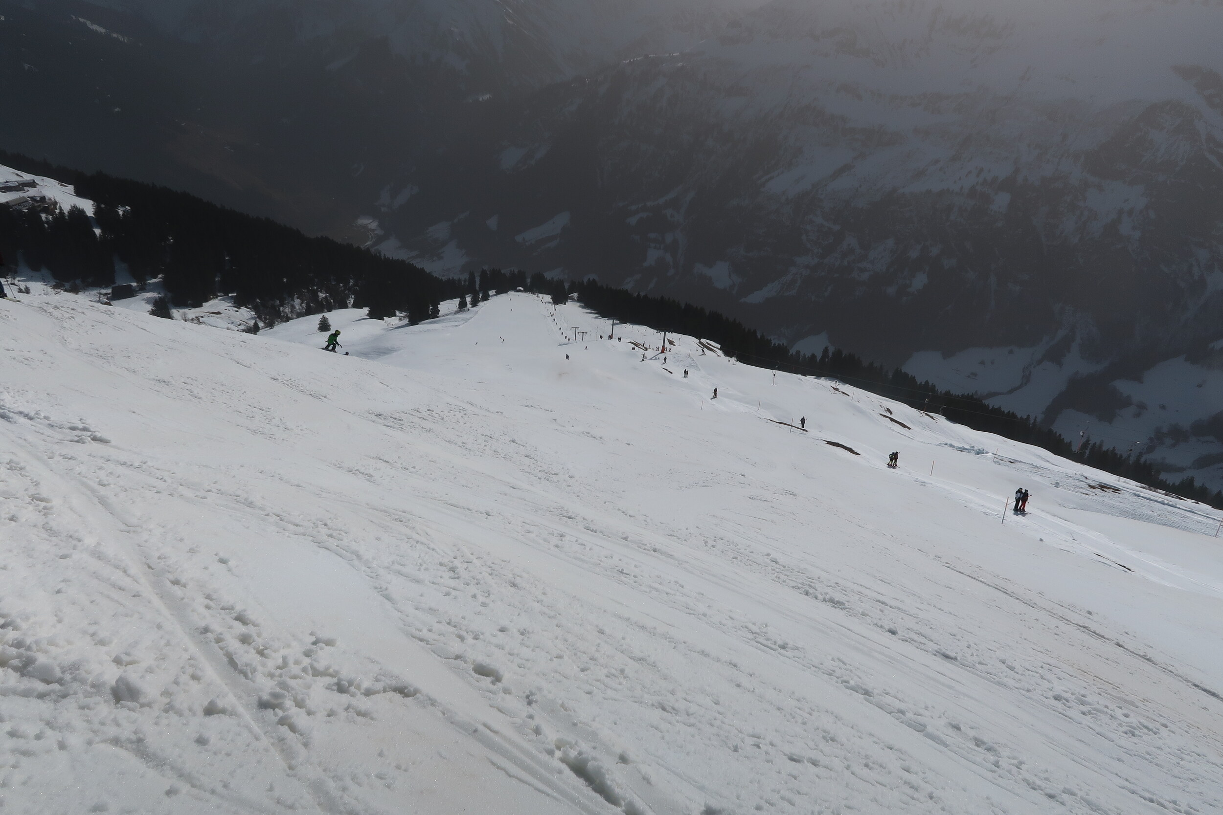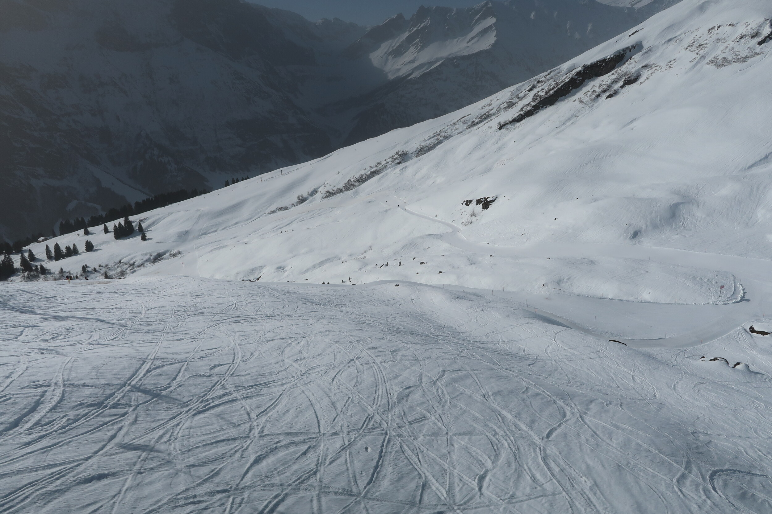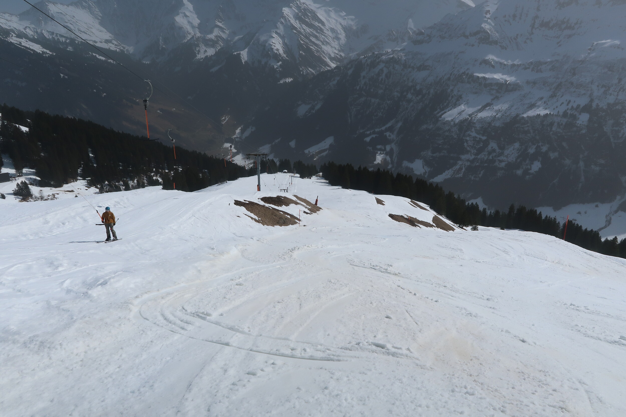 Dementsprechend leiden die Pisten schon wieder, werden braun, haben apere Stellen und sind bis oben hin sulzig.