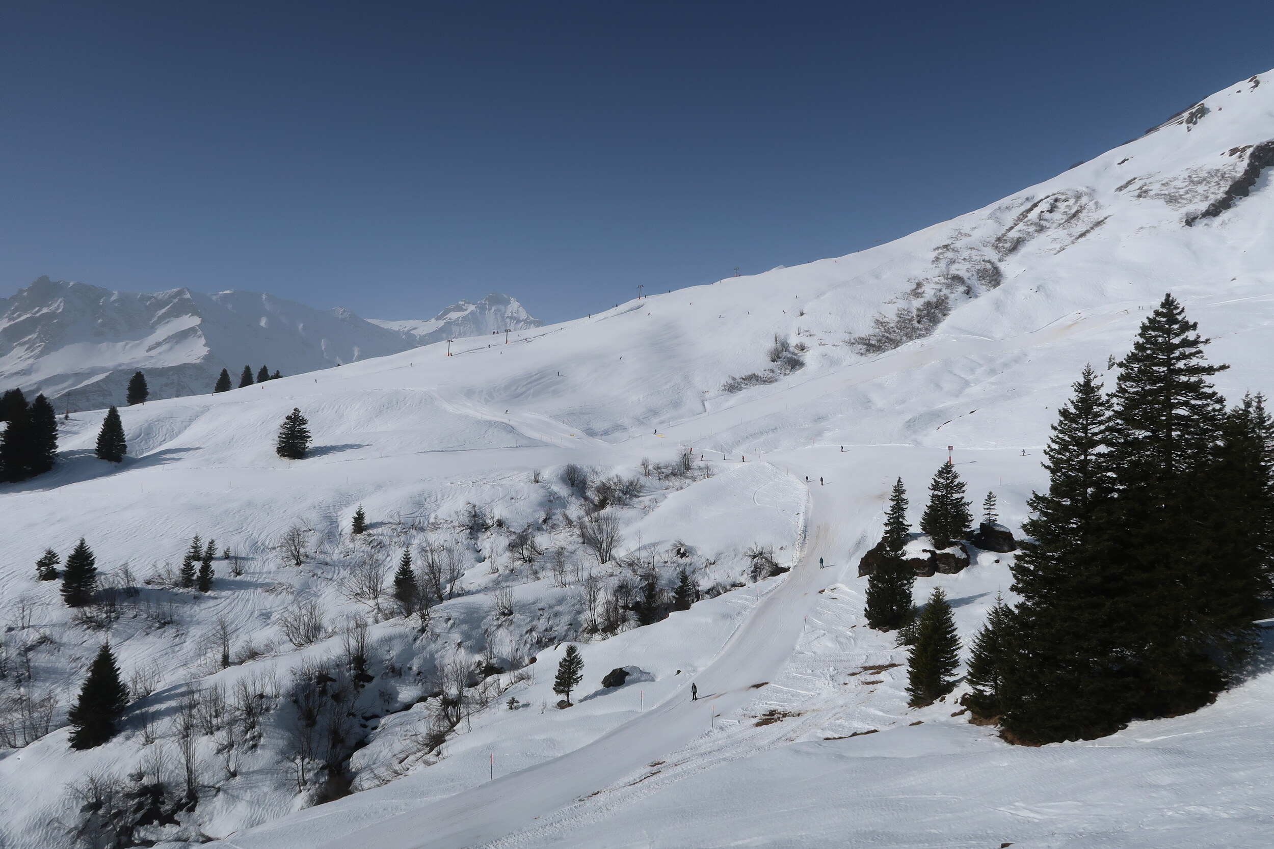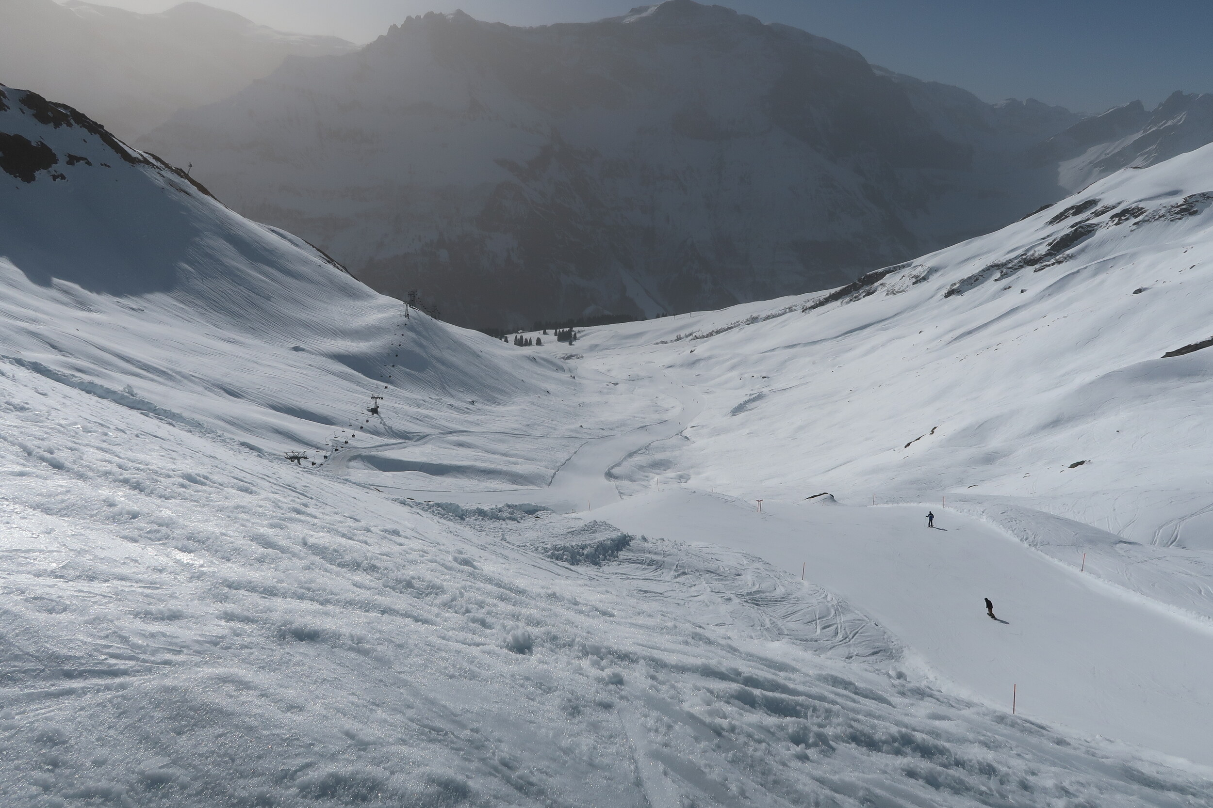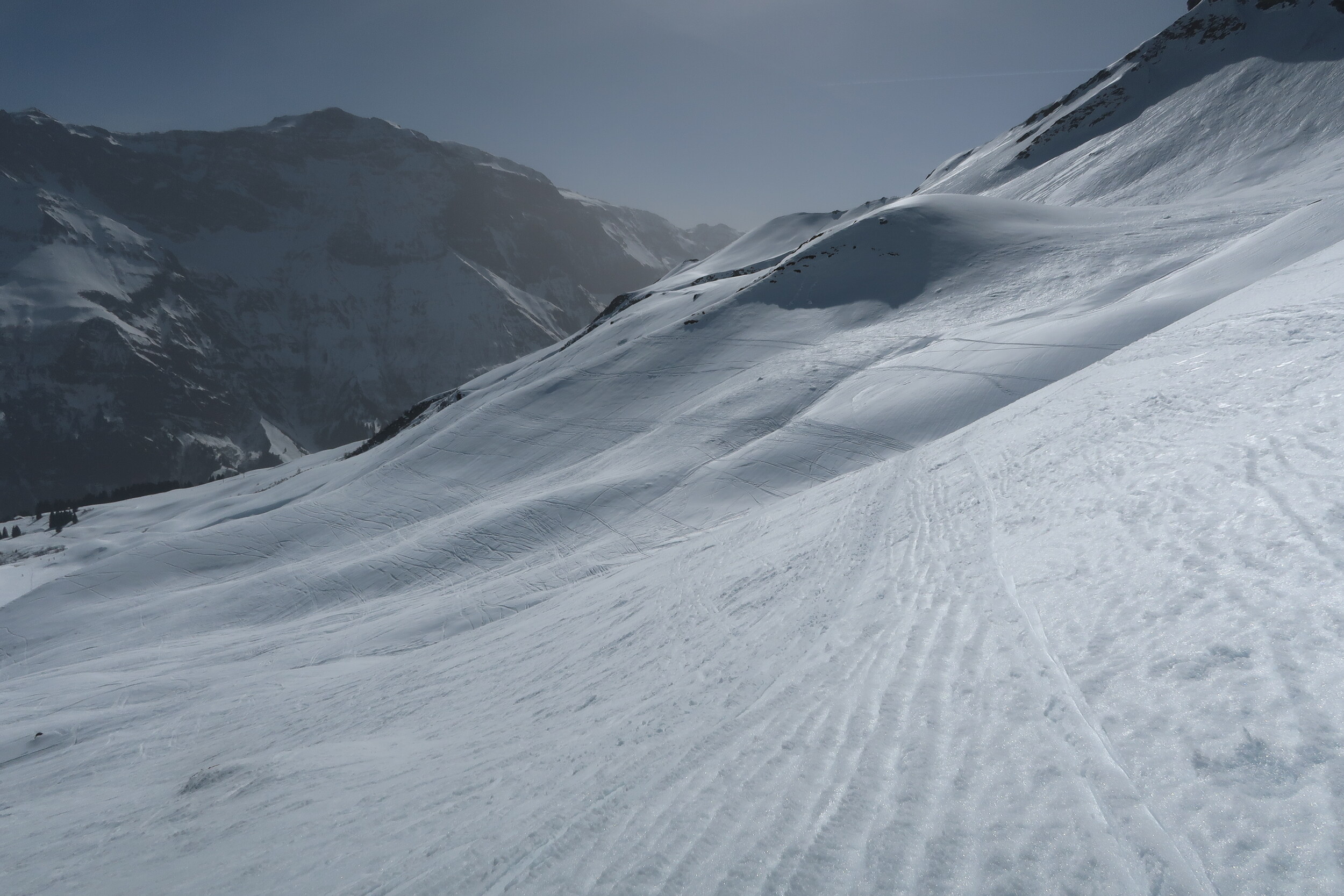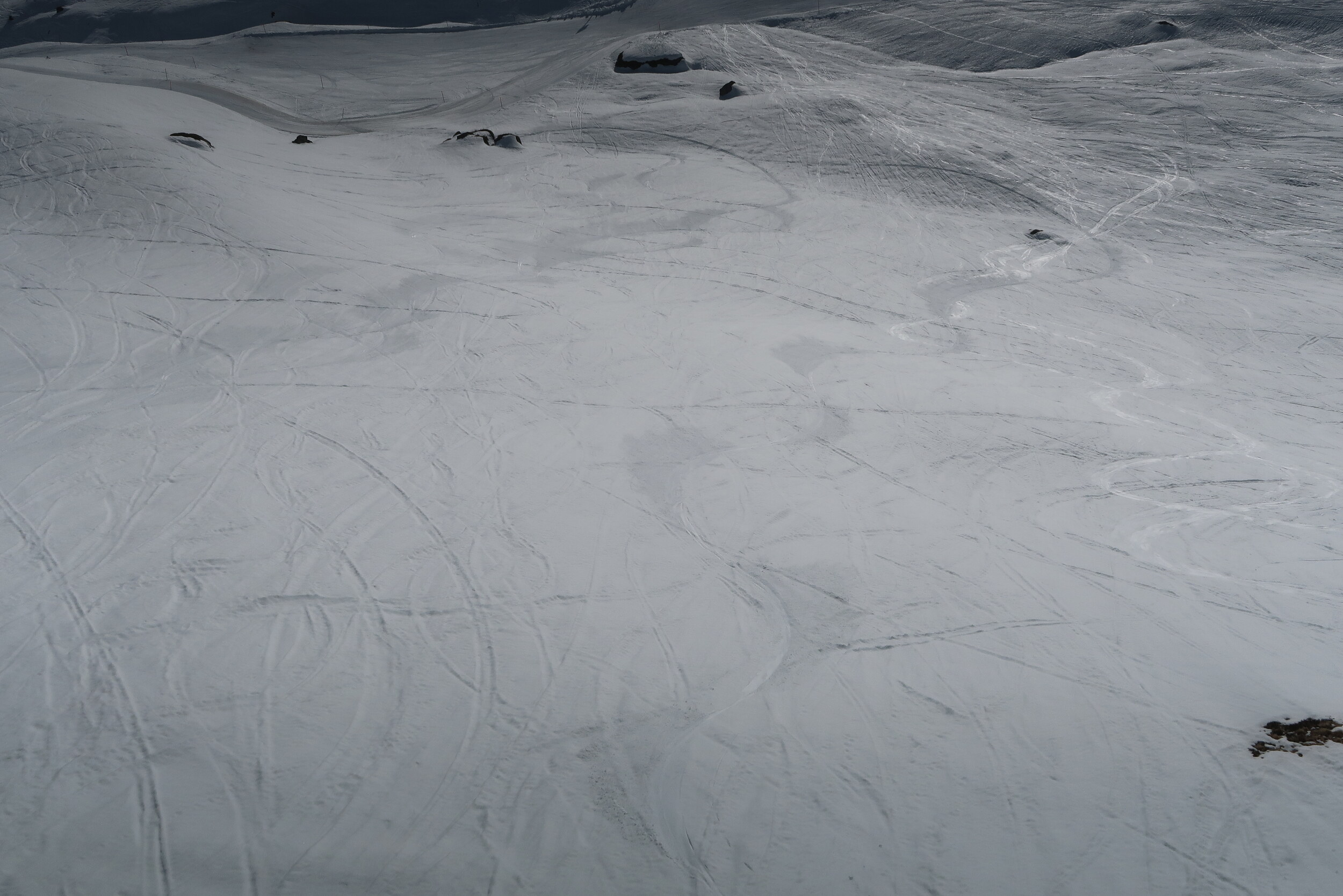 Dementsprechend leiden die Pisten schon wieder, werden braun, haben apere Stellen und sind bis oben hin sulzig.
