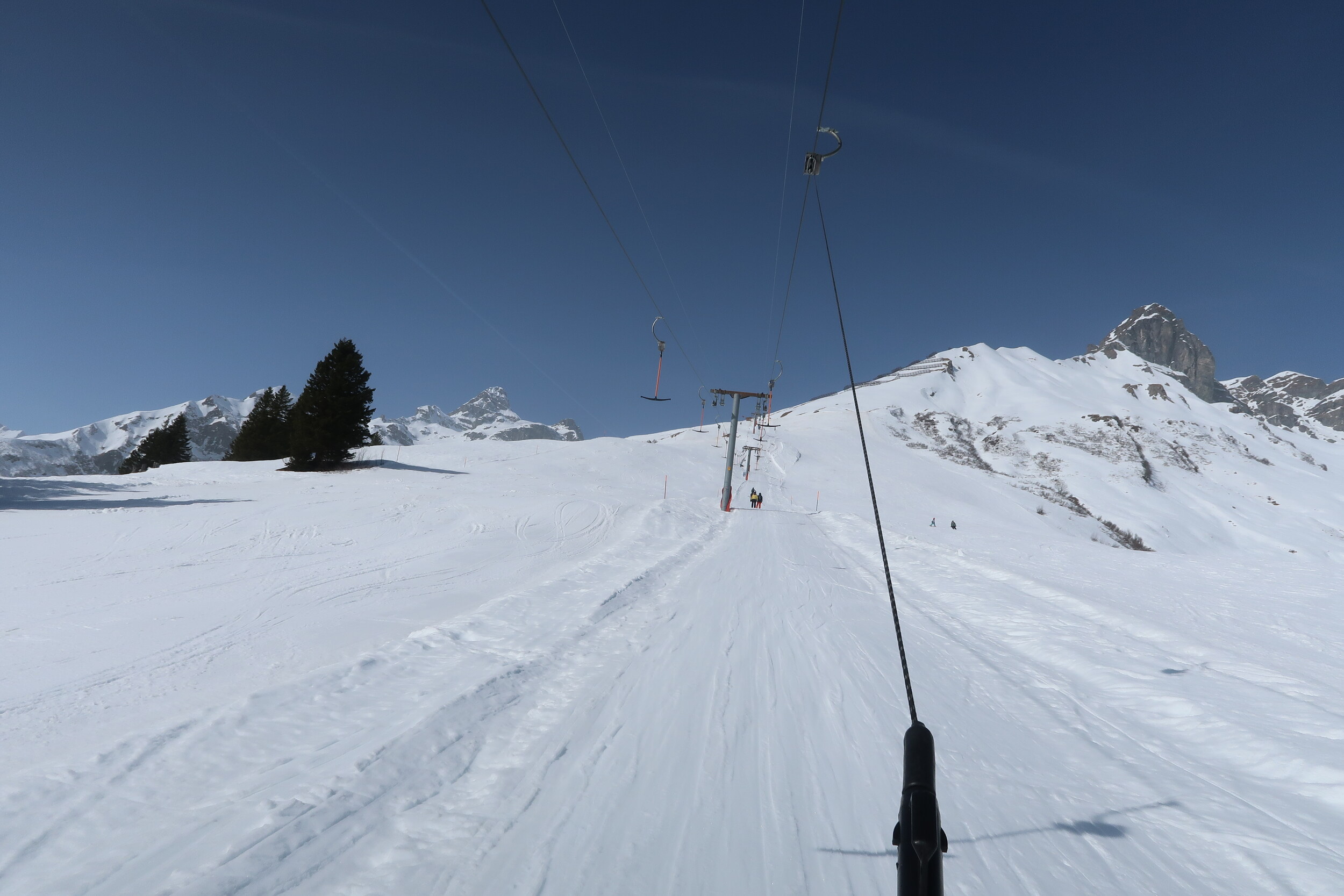 Eigentlich wollte ich meine beiden gewonnen Karten (Elm & Madrisa) schon an einem verlängerten Wochenende Ende Januar in Kombi mit zum Beispiel Flims Laax Falera oder Obersaxen oder Vals oder Savognin oder ... einlösen. Doch es hatte ja so wenig Schnee, dass quasi nichts auf hatte. Anfang März (also jetzt) war Ausweichtermin. Zwischenzeitlich hatte es den Schnee, doch Temperaturmäßig ist es aktuell eher wie Anfang April (heute ganz oben an der Bergstation der KSB +8 Grad).