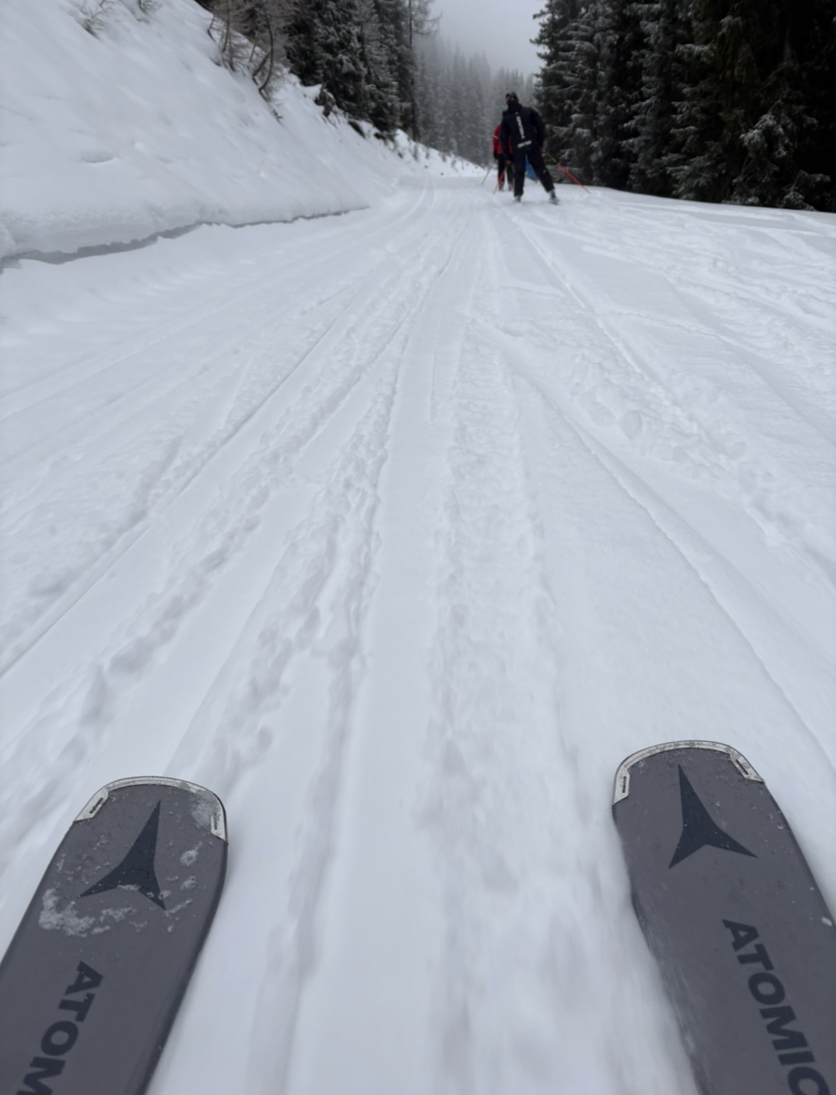 Burgstallalm furchtbar eisig (meine Kanten sind noch fast frisch, 2. Tag nach dem Service), die Talabfahrt dann ganz in Ordnung. Am besten im letzten Steilhang wo Dank Inversion in der Nacht beschneit werden konnte: