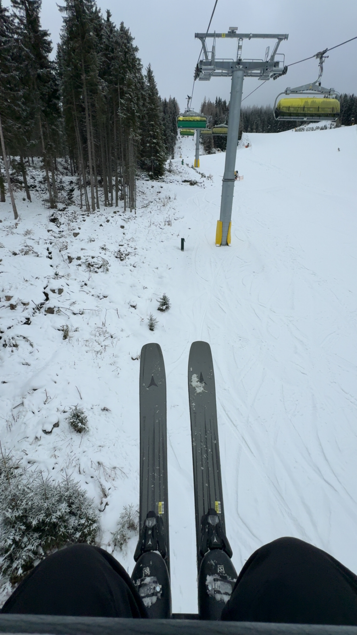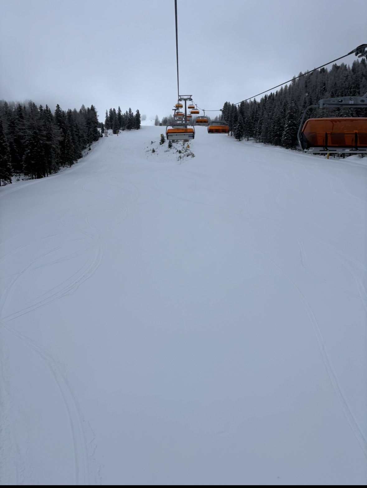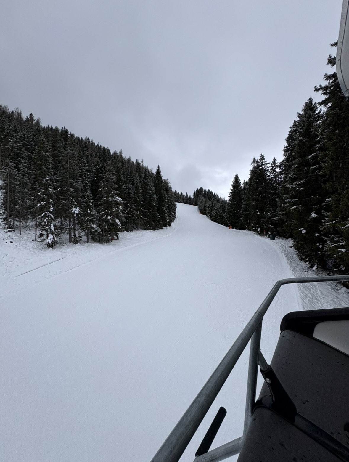 Uriger Rittislift, die Piste aber in voller Breite beschneit und perfekt. Ist mir viel lieber als 8KSB mit eisigen / steinigen Pisten: