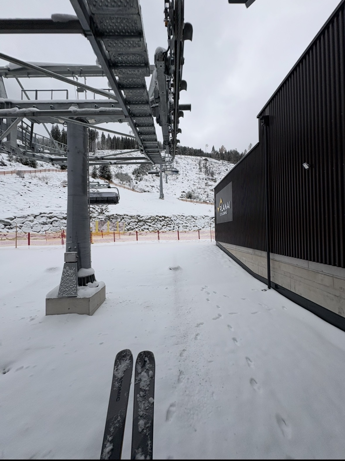 Viel von den anderen Pisten kann man von der Schoberbahn leider nicht sehen, aber an der Gasselhöhe wurde de Piste definitv schon fertig präpariert und auch die Abfahrt zum Sepp'n Jet ist fertig gewalzt und die Kanonen bereits am Pistenrand abgestellt. Feuer frei auf der Piste zur alten DSB: