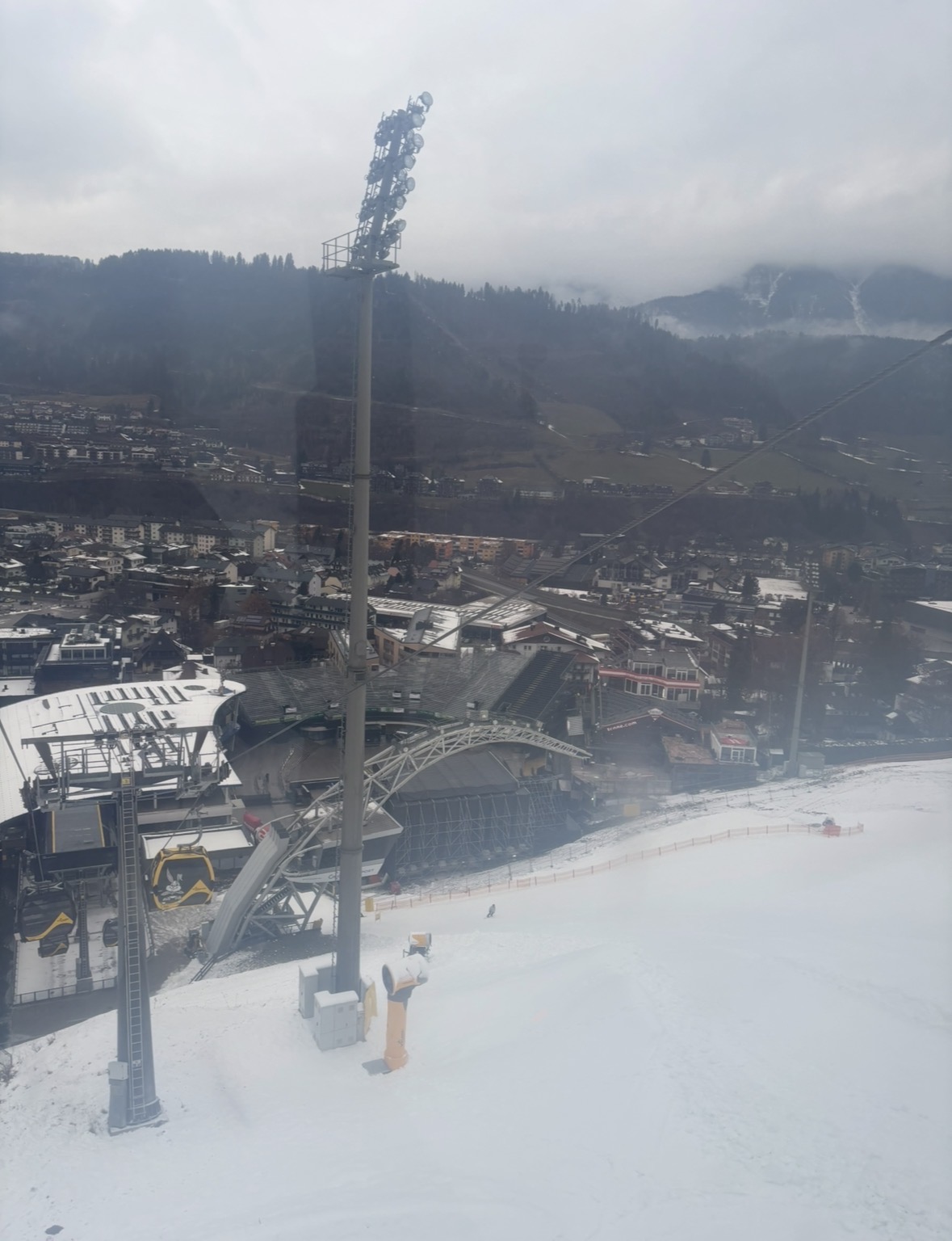 Kommentar: schade. 'Neue' (tlw. recyclete) Bahn um ± 10 mio € gebaut, und dann muss man sie ohne Skibetrieb öffnen. Dass oben an den unbeschneiten Pisten entlang der Schlepplifte nichts geht, war zu erwarten. Ich habe aber doch gehofft dass man wenigstens die Talabfahrt öffnen kann, aber dort ist offensichtlich die alte Lanzenanlage auch zu schwach.