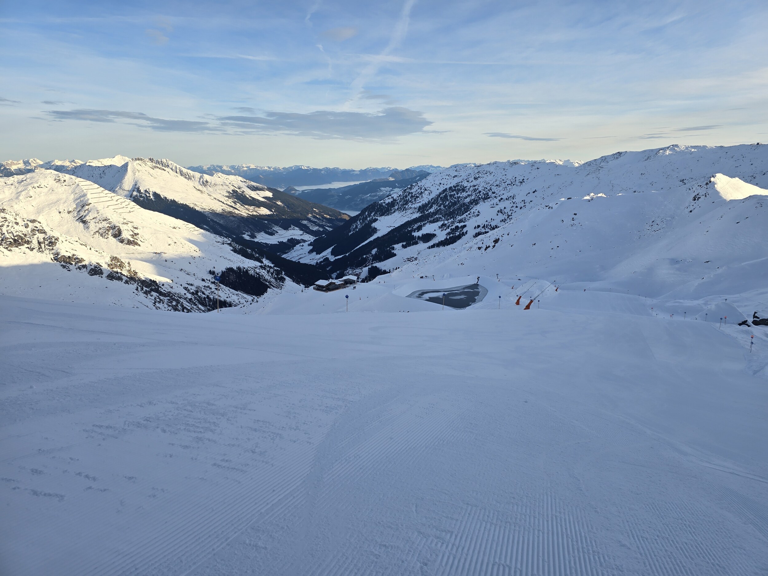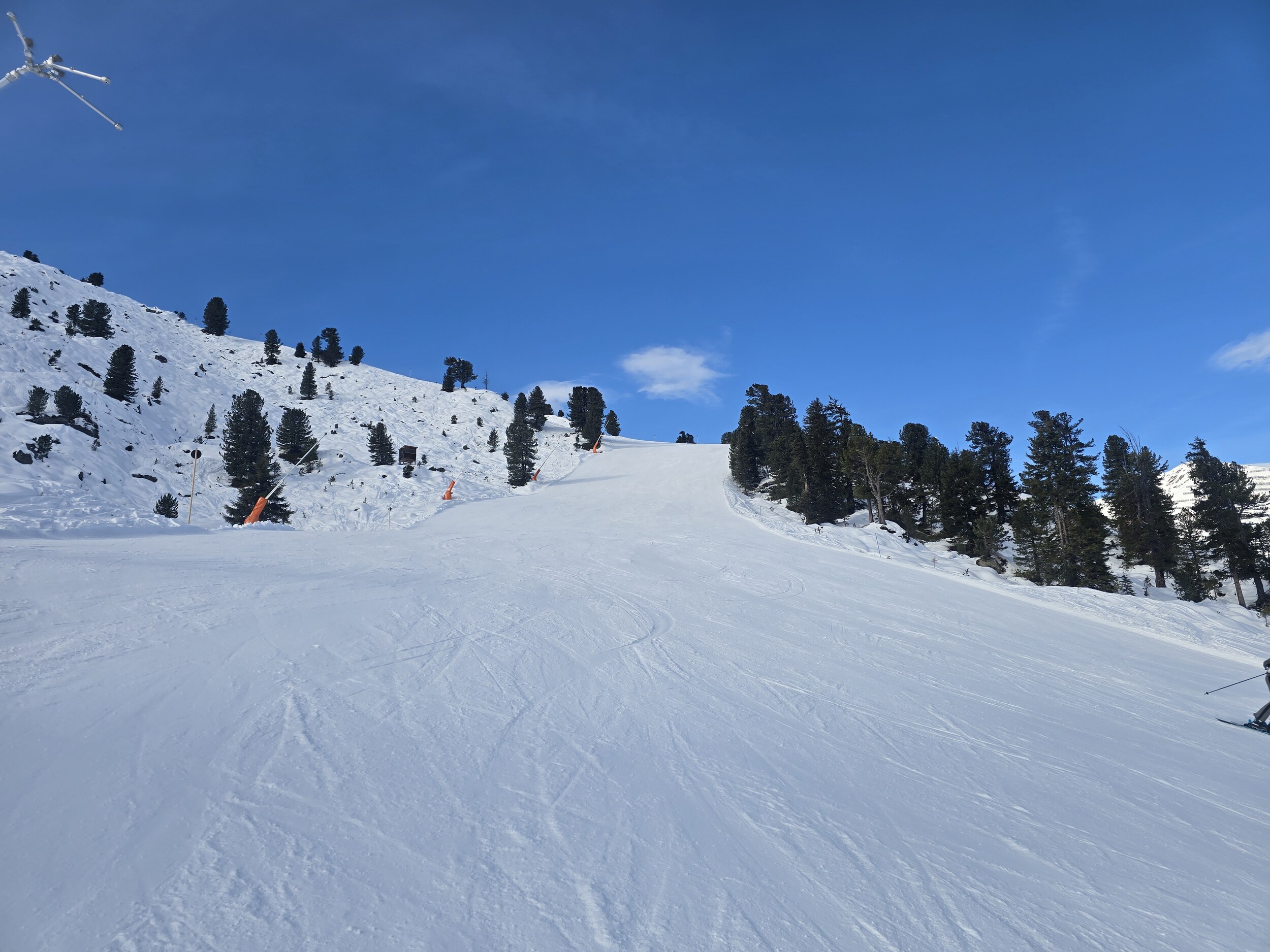 Nirgends gerumpel, nirgends knollen, nirgends seifiges Schnee Gefühl wie gestern. Ich denke das wird ein 10/10 Tag. Alle Pisten volle Breite, einzig die 11a noch dünn vom Schnee her aber keine Steine oder gras. Ist die eigentlich naturschnee only? Bzw wenn halt etwas reunschieben von oben bzw unten? Kommt mir so vor. Die Wellen vom Weg sind noch sehr ausgeprägt.
