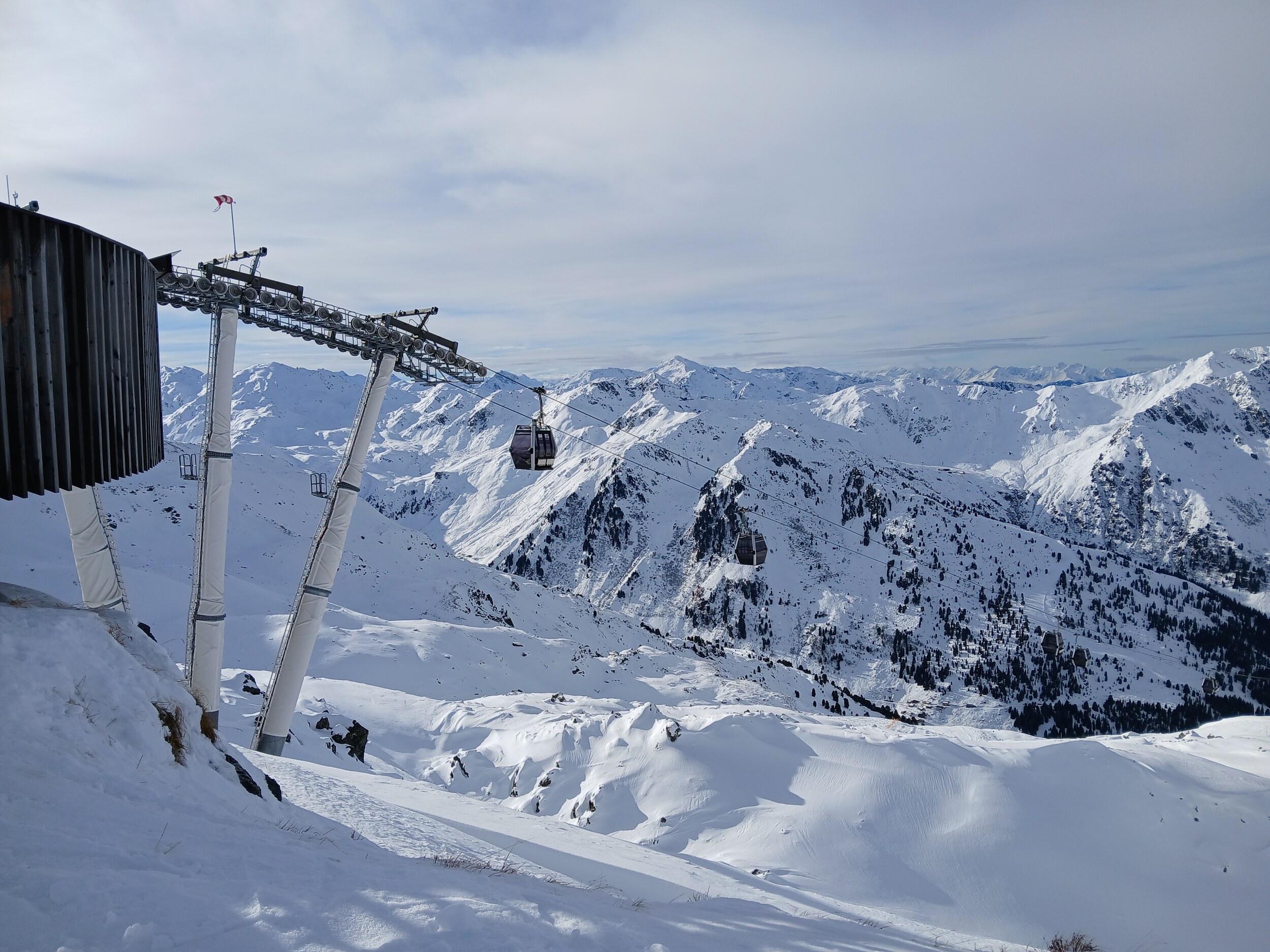 Im Vergleich mit Zell gestern mindestens doppelt so viel los. Werde gleich Mal die talabfahrt fahren da der Versuch mit Skitouren Schuhen am Slalom rennski eher ein Debakel ist.. neue Skischuhe sind noch in der Werkstatt beim H&N...