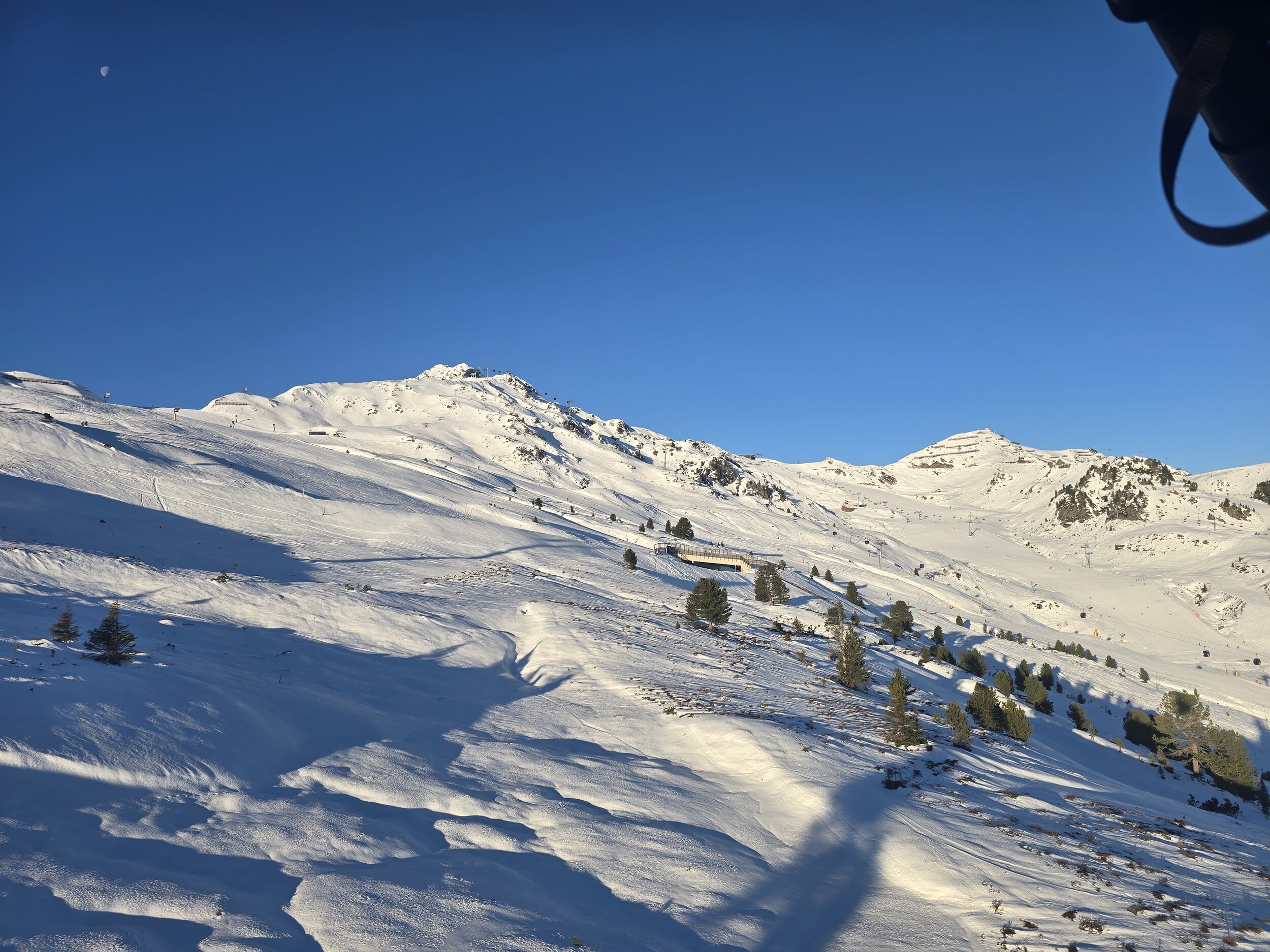 Edit: 11:30, so langsam leert es sich. Die Pisten sind bis auf die schwarze am Schlepper welche noch einen halben Meter Schnee braucht alle top. Gegenüber sieht man in der Sonne das noch nicht alles auf volle Breite öffnen wird morgen.