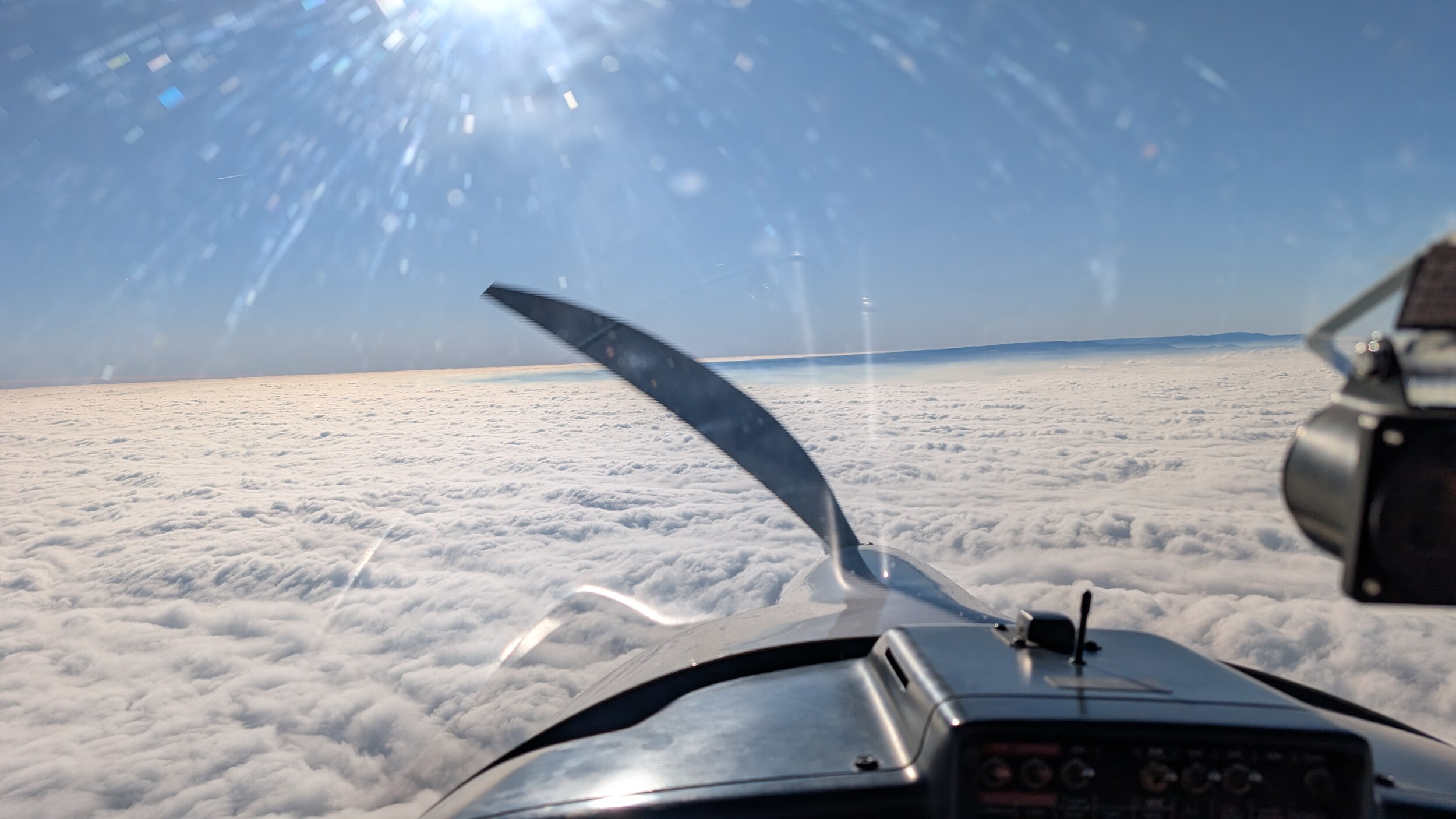 Am Anfang musste man sich noch ein Loch in der wolkendecke über dem rheintal suchen, und im Hintergrund erkennt man schon den Schwarzwald wie er durch die Wolken hindurch ragt