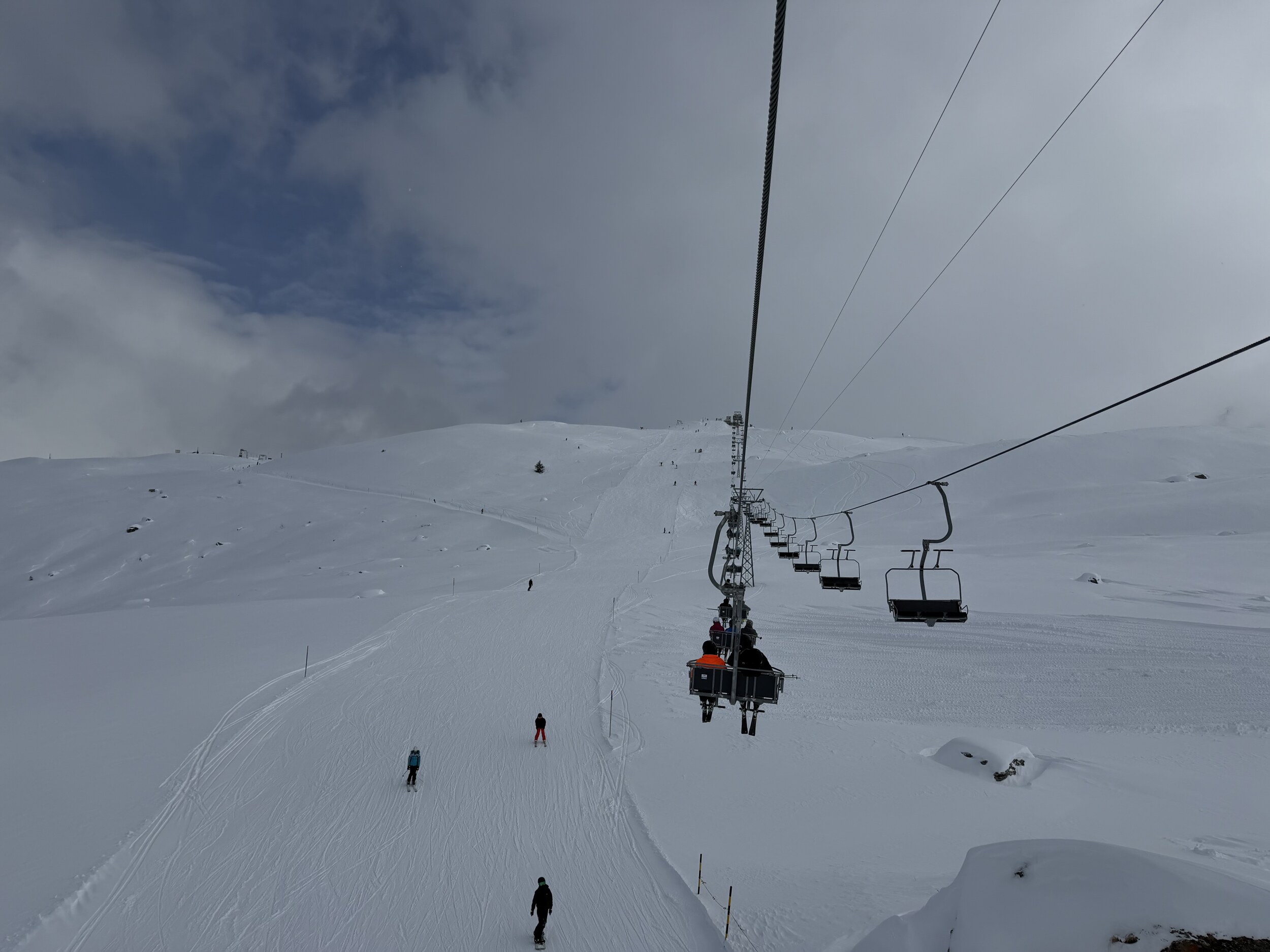Heute verwerte ich mein 50%-Ticket. Das Pistenangebot ist leider immer noch recht begrenzt und reicht nur für einen halben Tag. Ich bin zuerst ein paar Runden auf dem Tambo-Sessel gefahren.