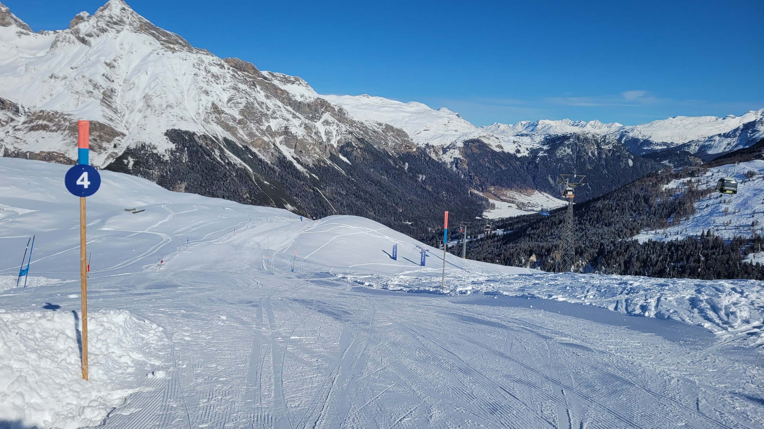 Angenehm weiche Rillen, die Präparierung ist top. Und Privatskigebiet-Feeling. Am Tambo-Sessel ist eine zusätzliche Piste (9) offen im Vergleich zu meinem letzten Besuch.