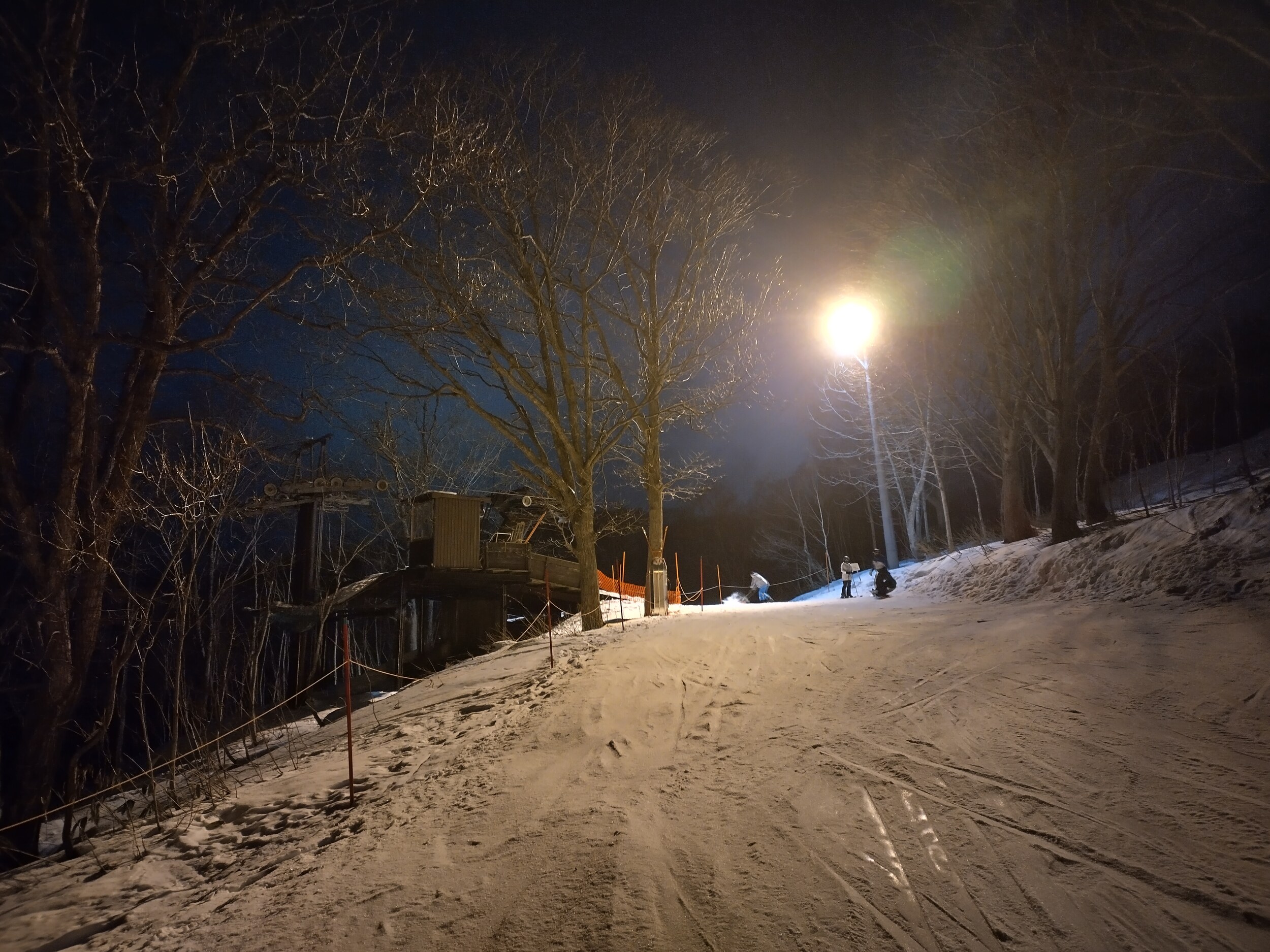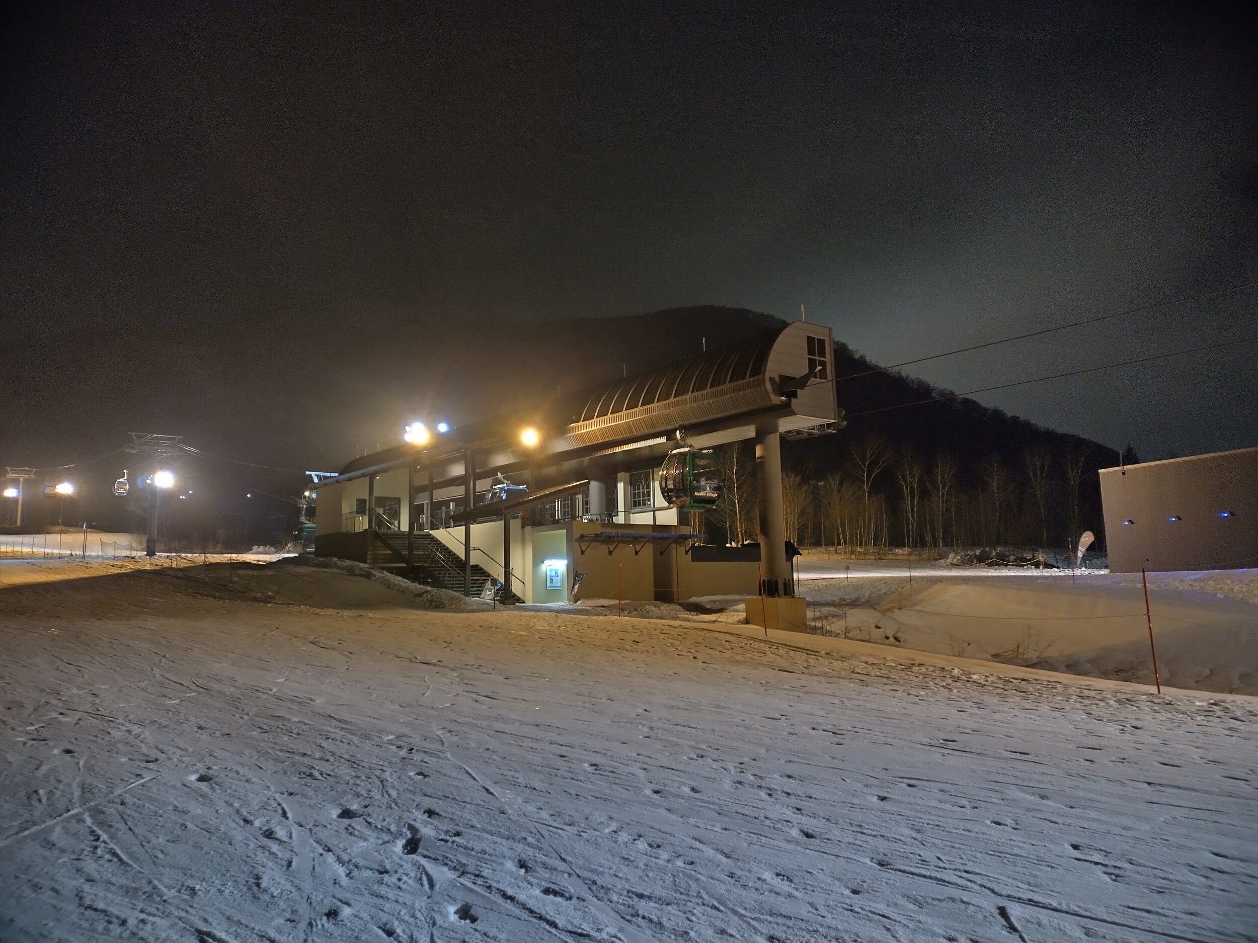 Nach Ankunft in Japan hilft eigentlich immer etwa Nachtski und ein Besuch im Onsen. So auch dieses Mal in Niseko fällt die Wahl auf das Niseko Village Teilgebiet. Im Vergleich zu Grand Hirafu ist das nächtliche Angebot sehr bescheiden, aber immerhin vorhanden und gleich vor der Hoteltür.