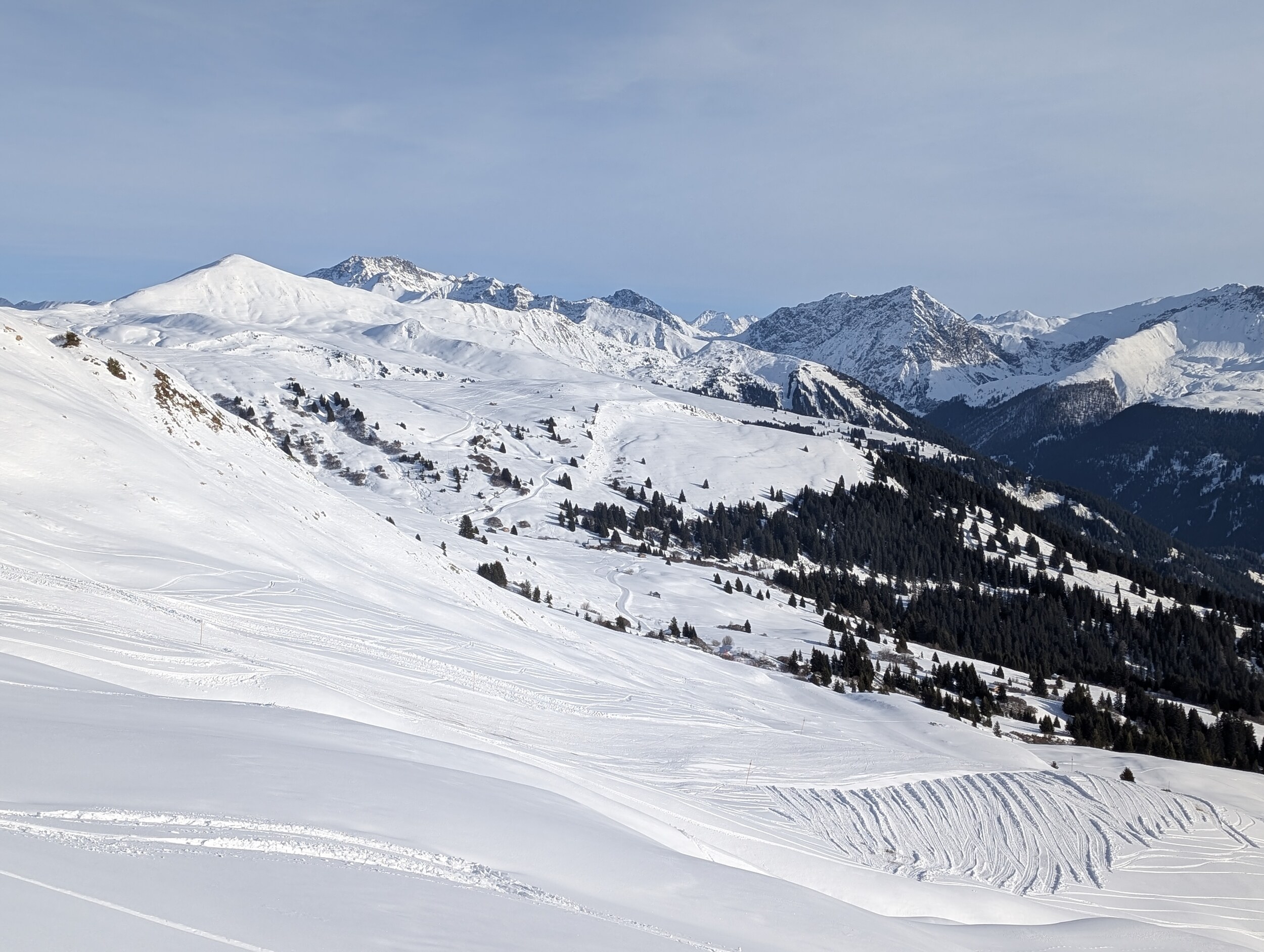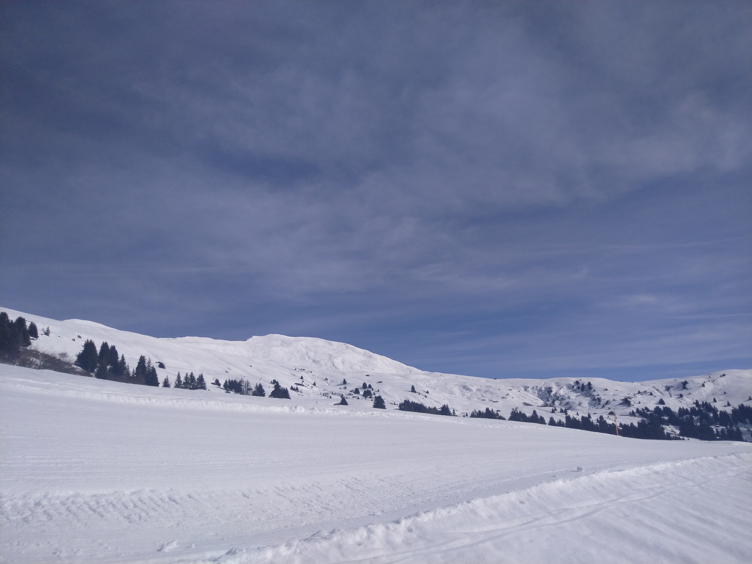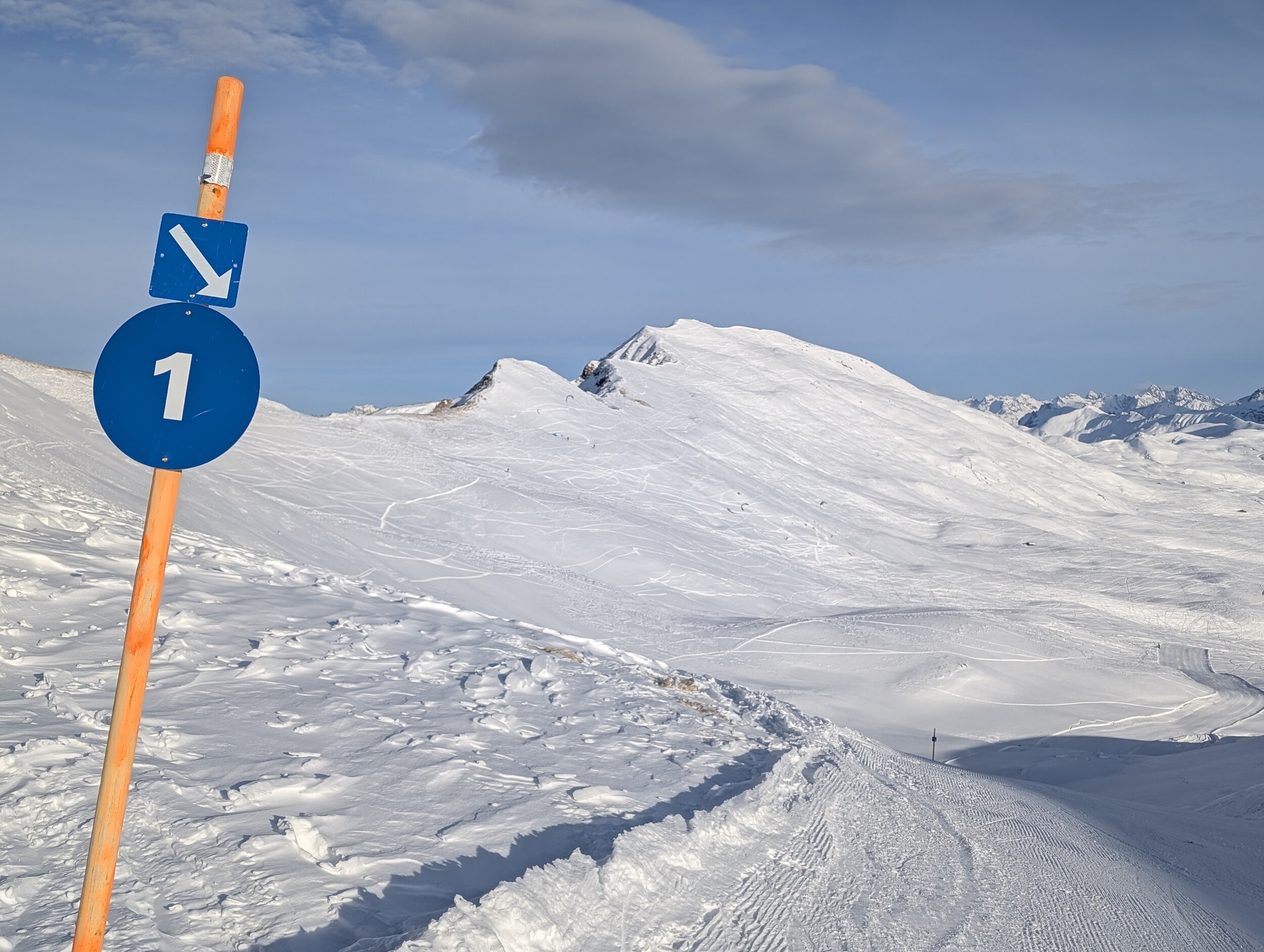 Rofna (1) im oberen Teil gut, der Mittelteil bis zur Hochwanghütte bis zum letzten Hang ebenfalls gut. Anschliessend muss man alles rüberqueren (Los, 3), braucht ein paar Doppelstockstösse gegen den Wind.