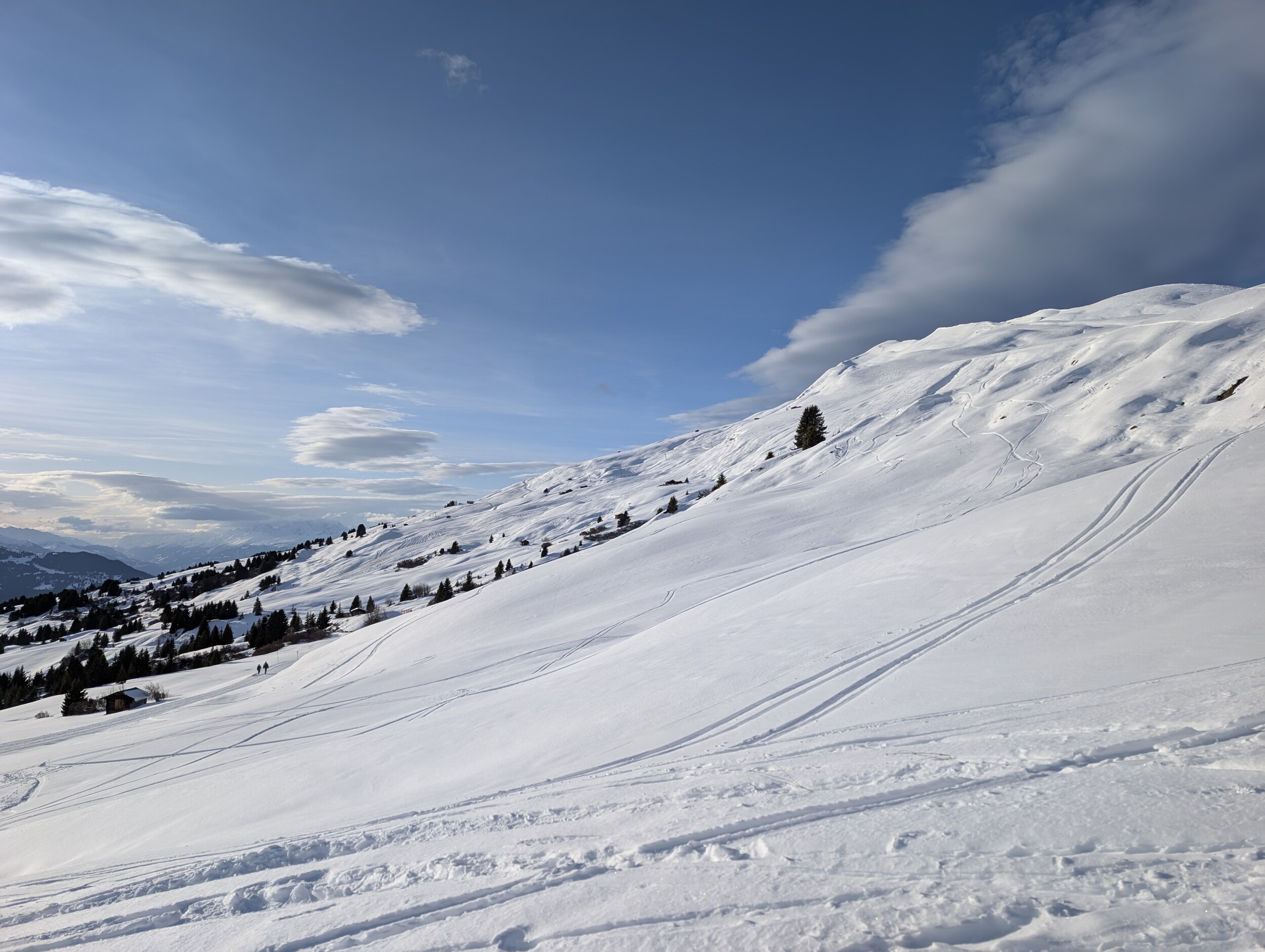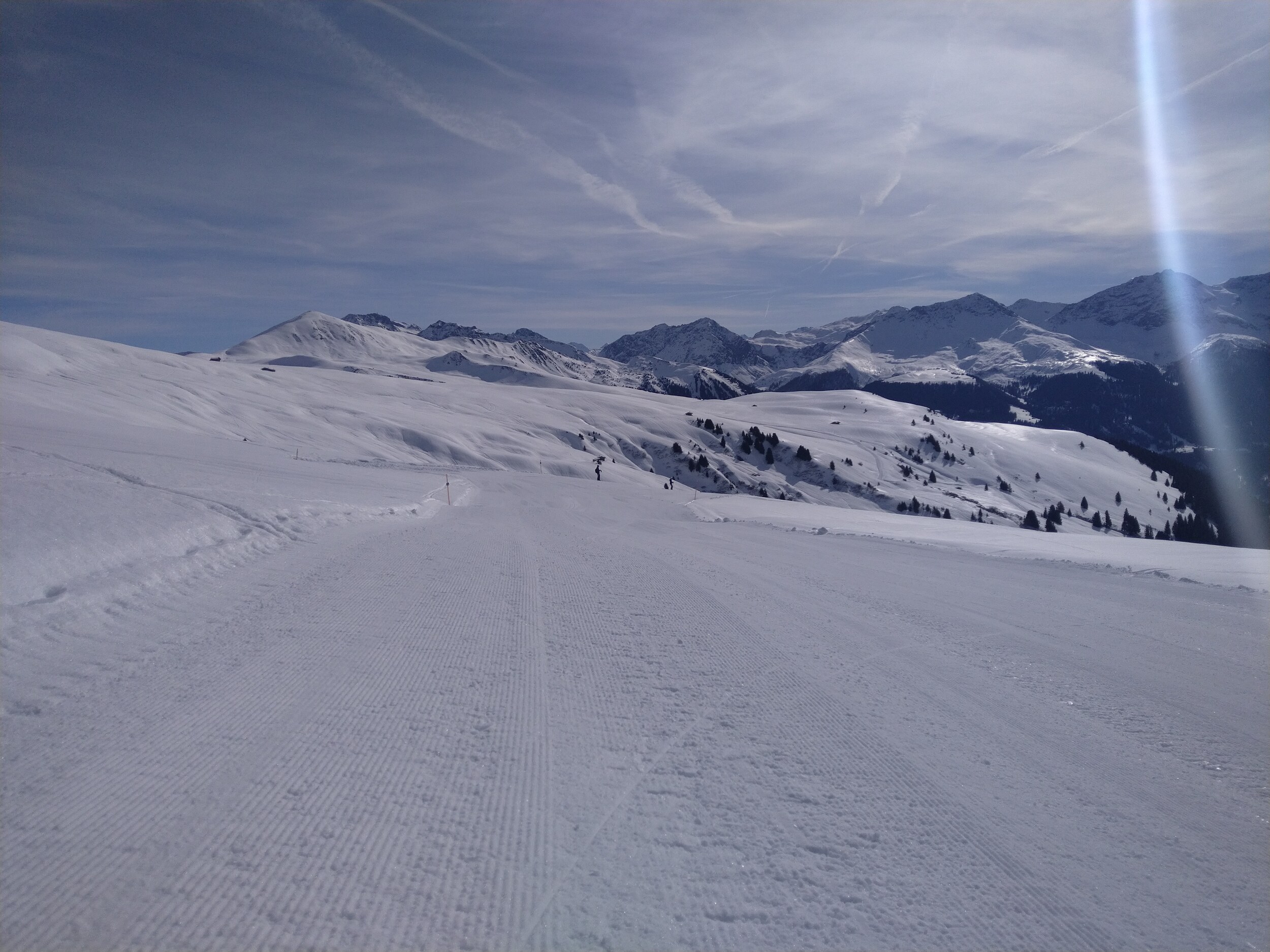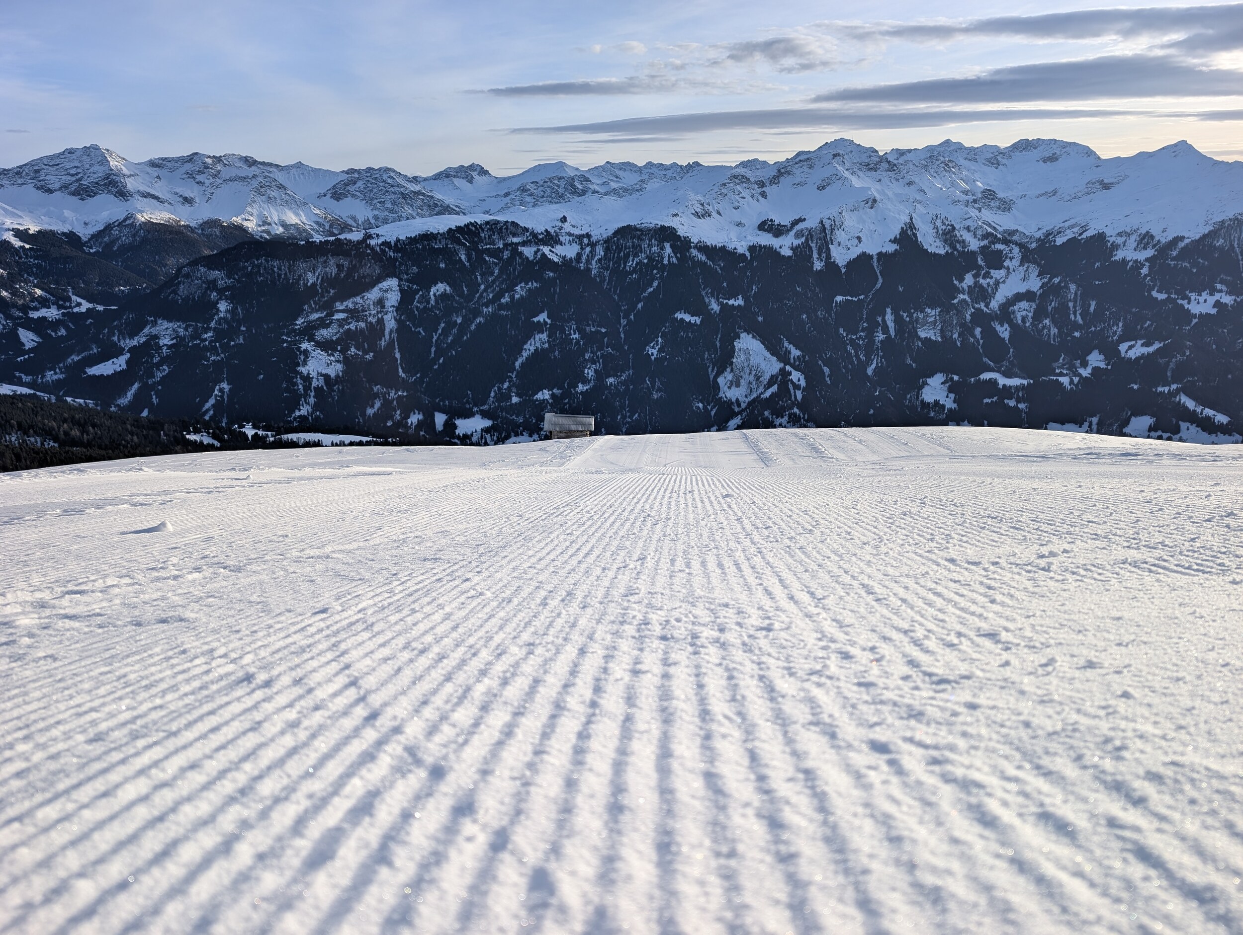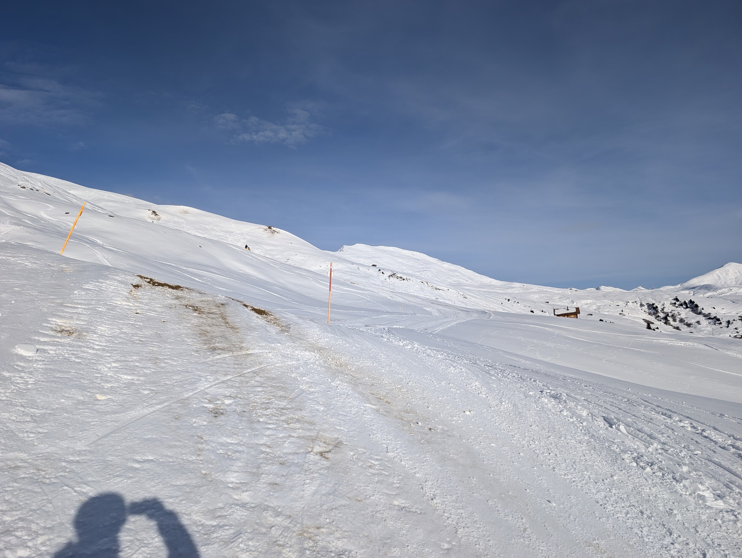 Die Avaditsch ist nur etwas zur Hälfte gemacht. Dafür auch um 16.05 Uhr Rillen zu killen. Anschliessend muss man etwas zur Läger rüberqueren.