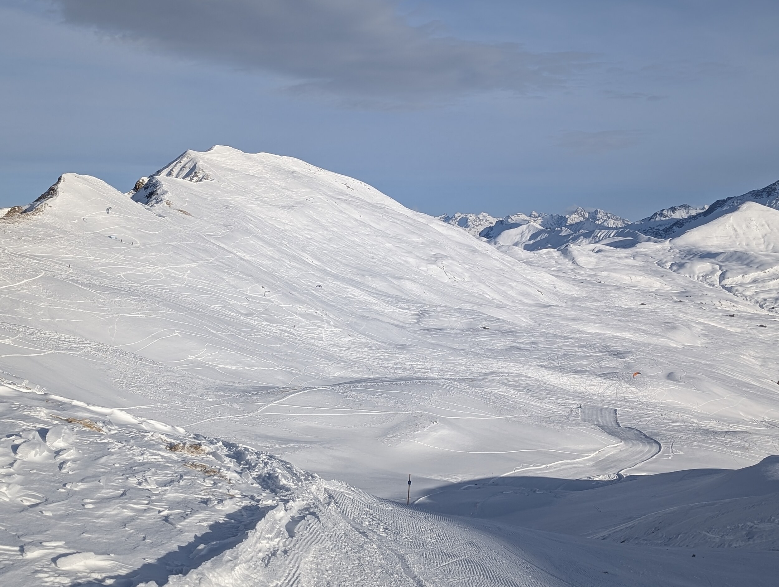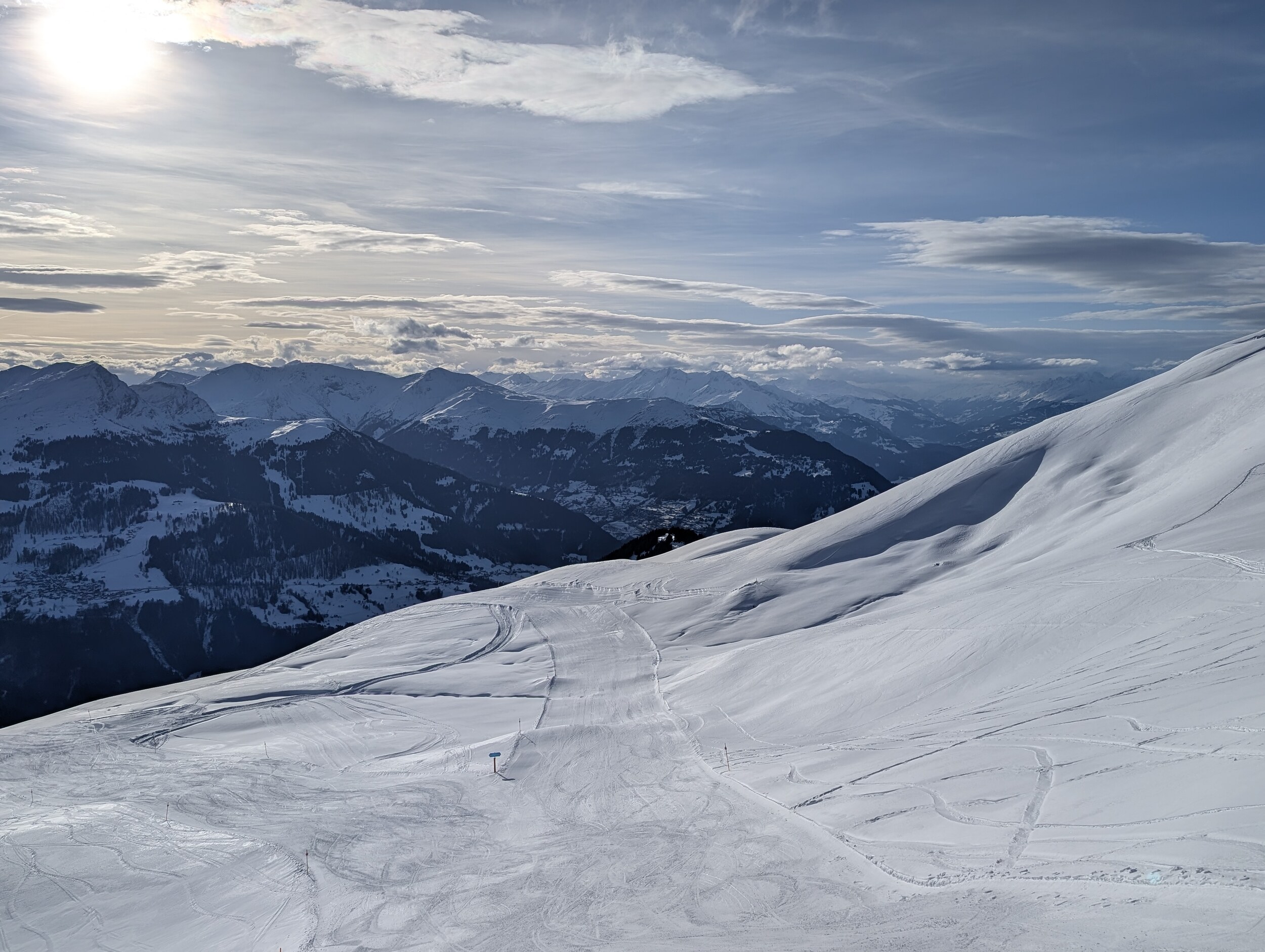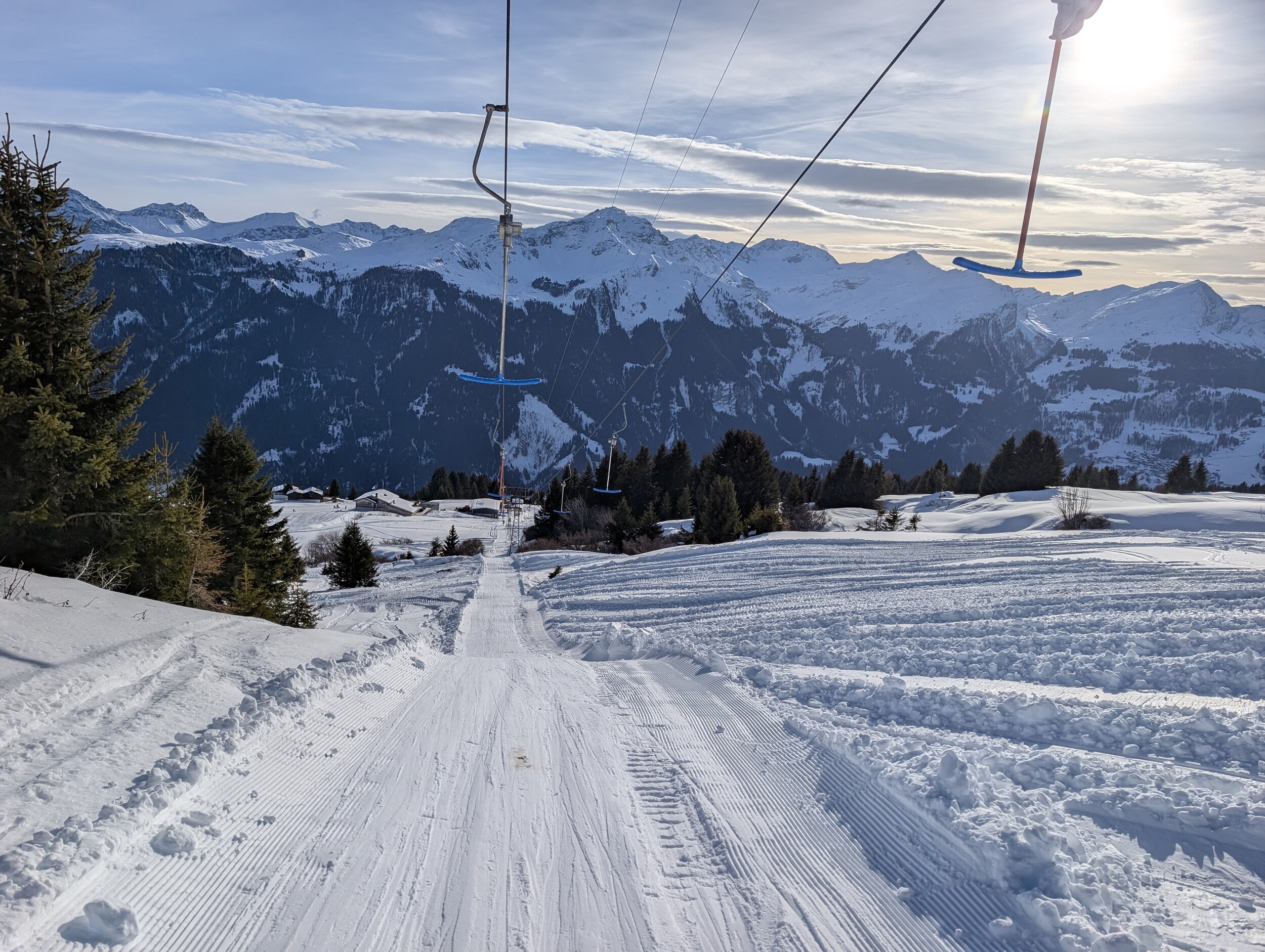 Am Skilift warten wir jeweils 0-10 Bügel. Dank der zahlreichen Pistenvarianten und der begrenzten Liftkapazität ist auf den Pisten viel Raum und sie bleiben, trotz Sulz in den sonnenexponierten Hängen bis jetzt gut.