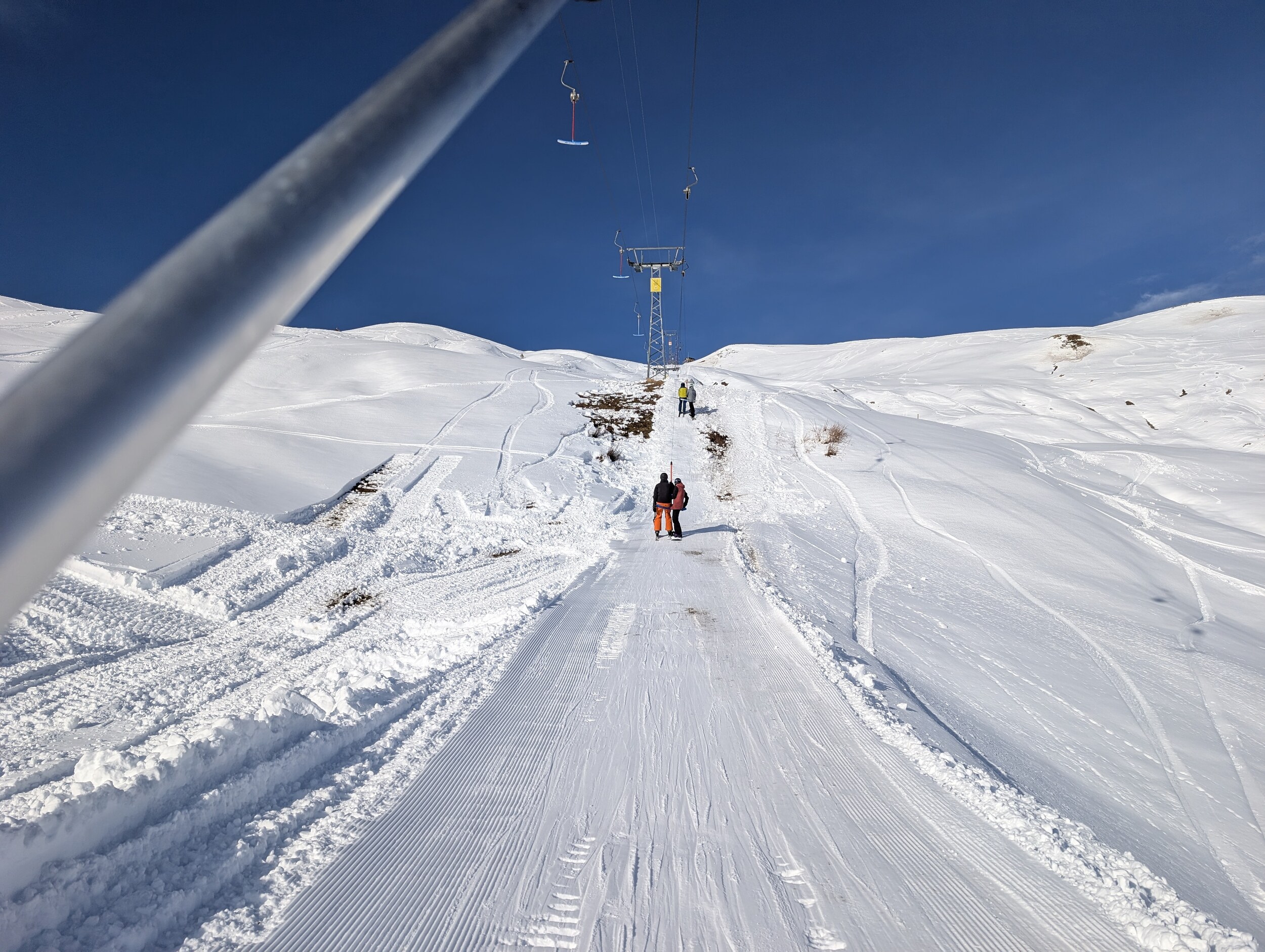 Der Sessel ist offen. Wie gut der Zustand der Schlittelbahn ist, kann ich nicht beurteilen.