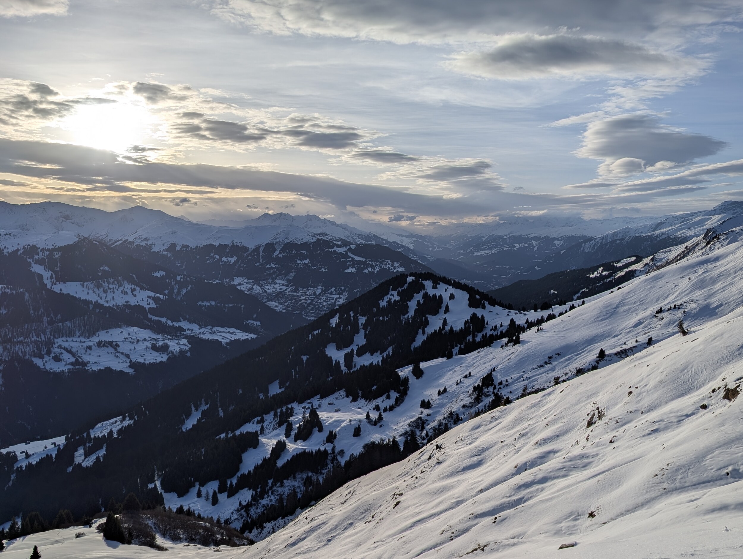 Oder auch ins Schanfigg (in der Bildmitte das Mattjisch Horn, hinten die Weissfluh, gefolgt von der Chüpfenflue weiter rechts):