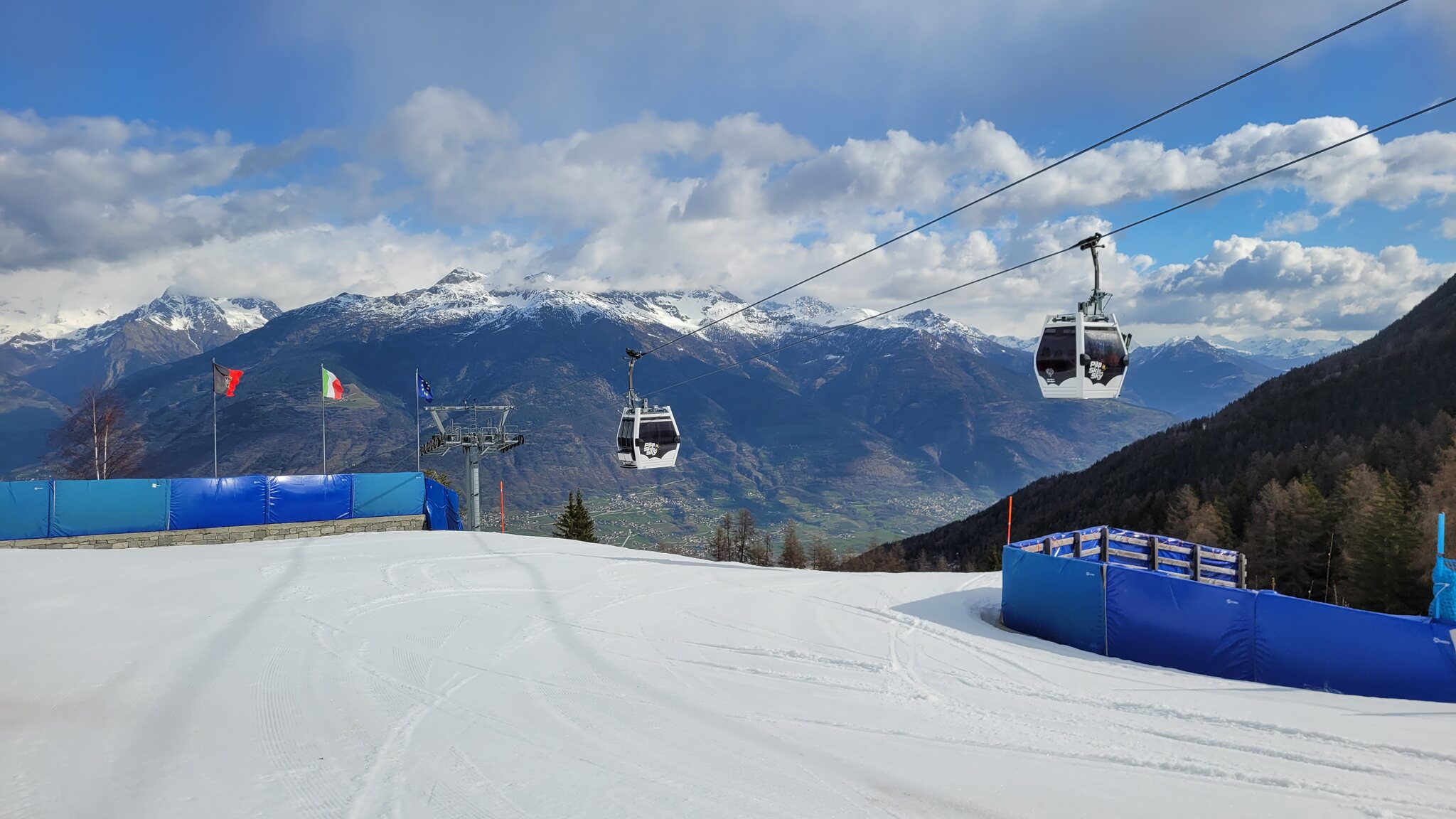 Heute war Pila mal wieder der Schlechtwetter-Joker, nachdem der Wetterbericht für dieses Wochenende in der Schweiz eher mau aussah. Morgens sind zwischen 9 und 10h Schneeschauer durchgezogen, die Pistensicht war aber immer gut. Im Verlauf des Tages dann immer sonniger. Die Abfahrt nach Plan Praz war auch offen, die habe ich gleich zuerst gemacht. War schon weich, aber noch recht unverspurt: