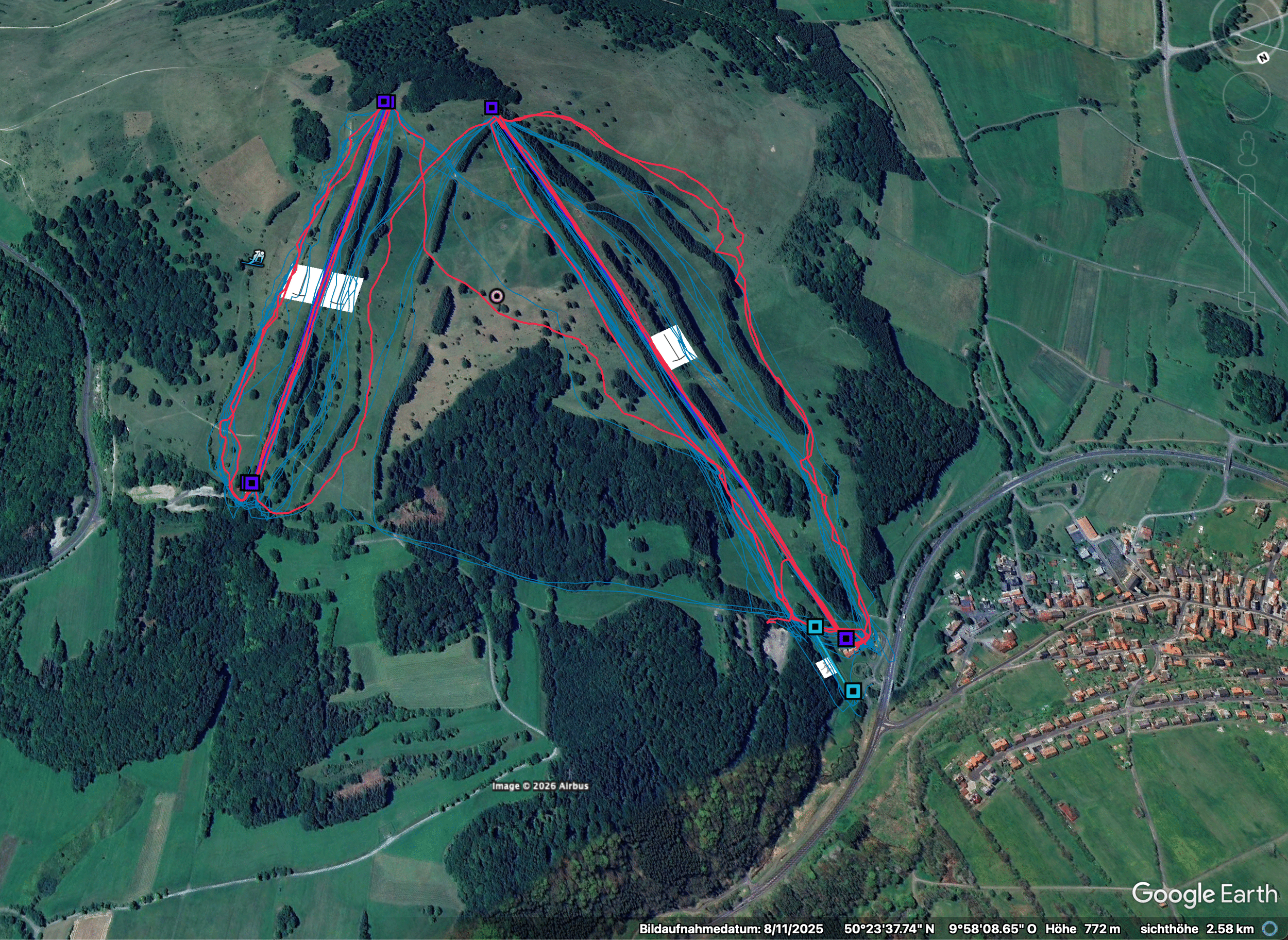 Rot der aktuelle Track, meine bisherigen Besuche (2012,2014 und 2017) in blau