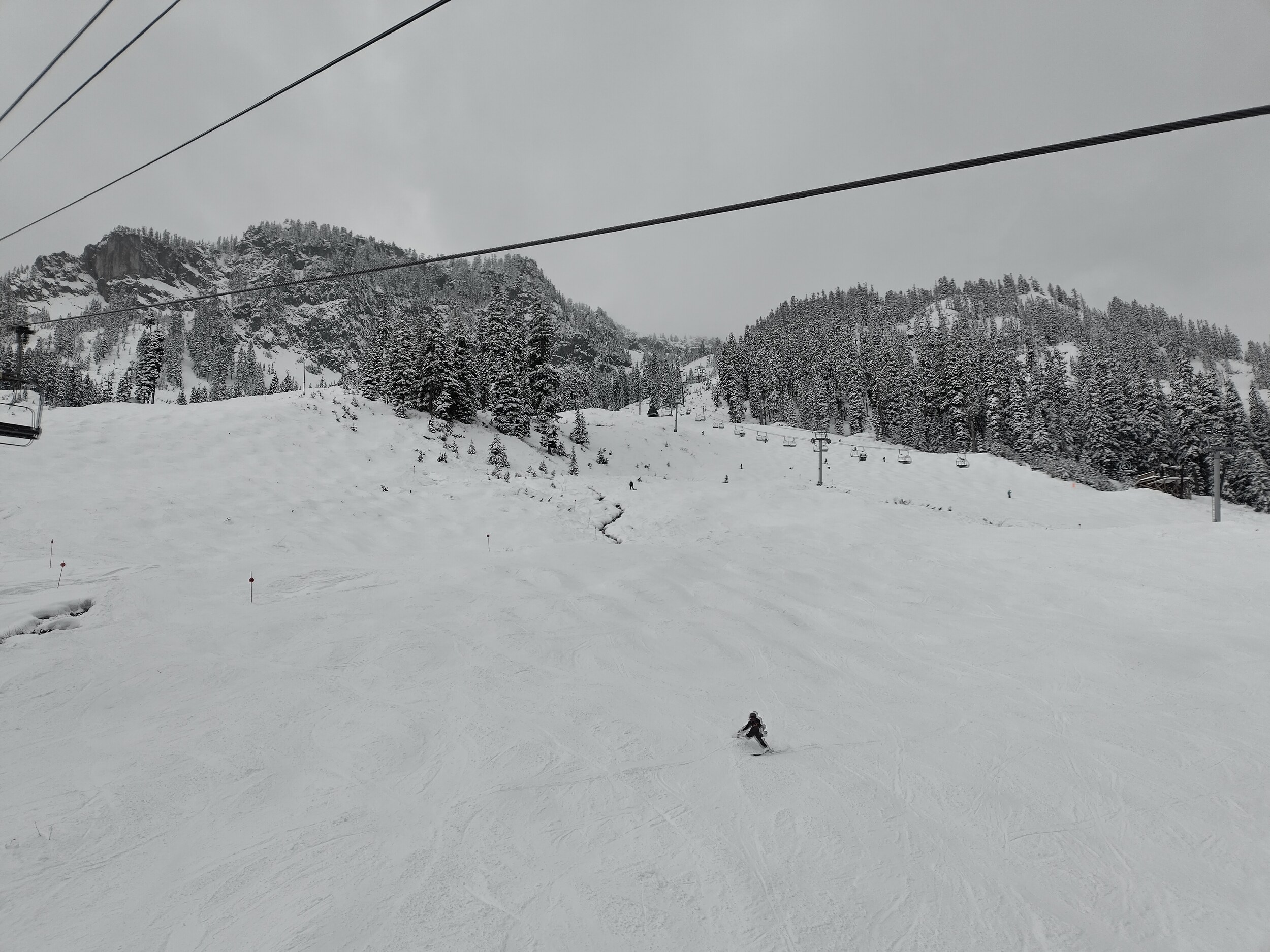 Eigentlich gäbe es auch noch Nachtskibetrieb, aber wirklich Lust habe ich nicht drauf. 2 Stunden mit etwas Erkundungen und sonst Buckelfahren sind auch ein gutes Workout.