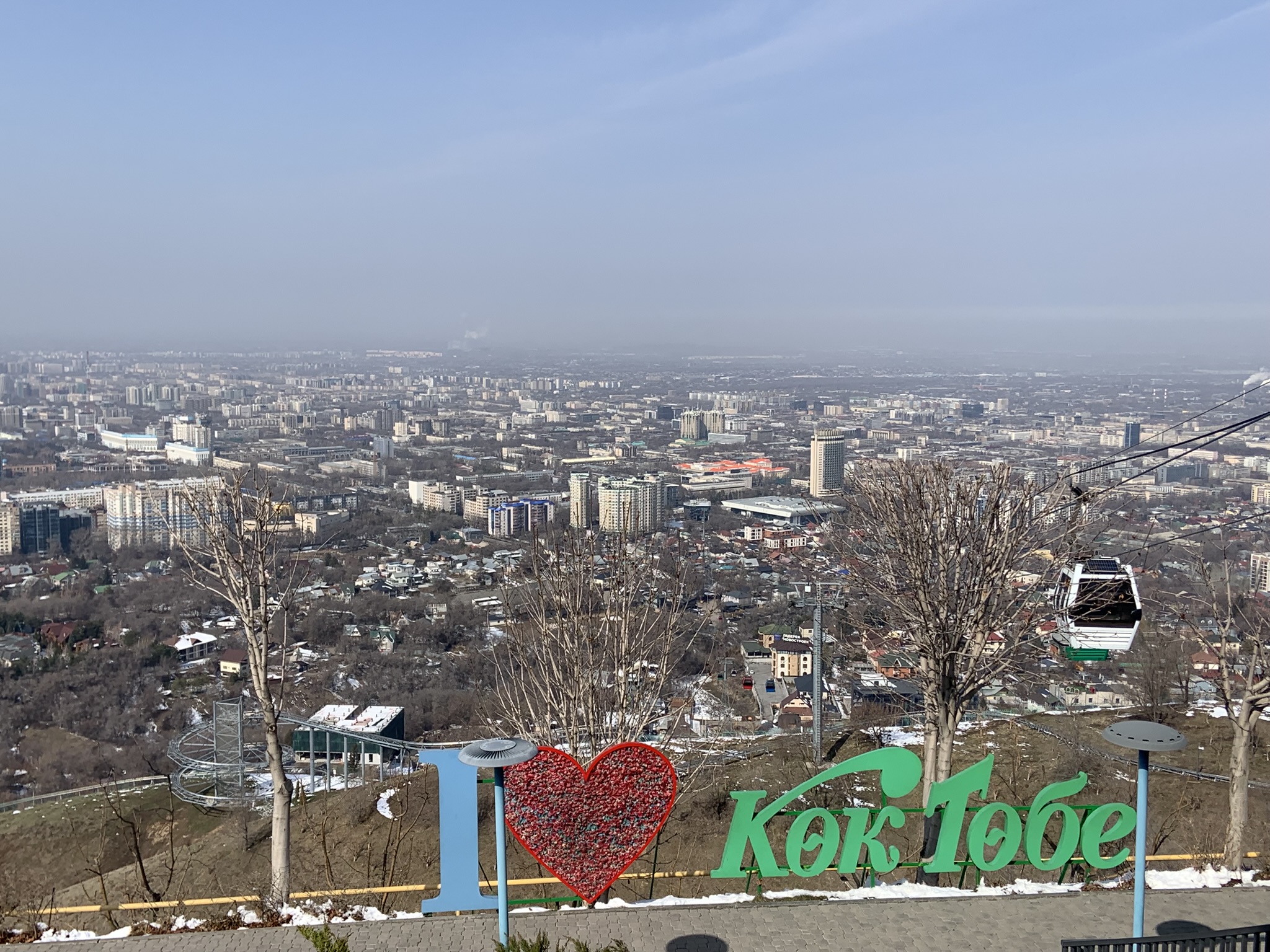 Bevor es zum Skilaufen ging, gab es eine Seilbahnfahrt auf den Aussichtsberg und Vergnügungspark Kök-Töbe.