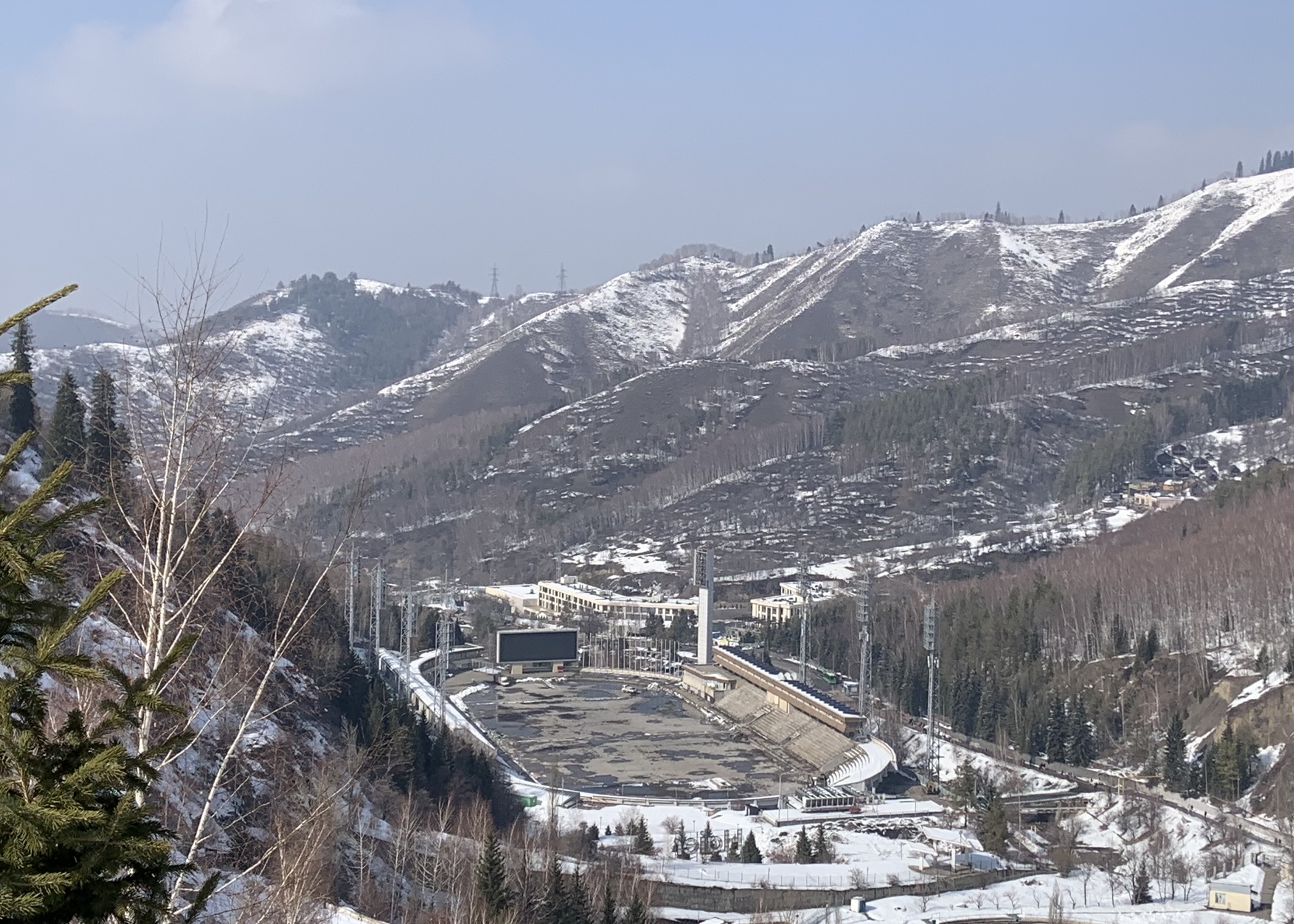 Direkt vom Hotel ging es am nächsten Tag mit dem Stadtbus Linie 12 zum legendären Eisschnelllaufstadion Medeo. Leider war dieses ohne Eis.