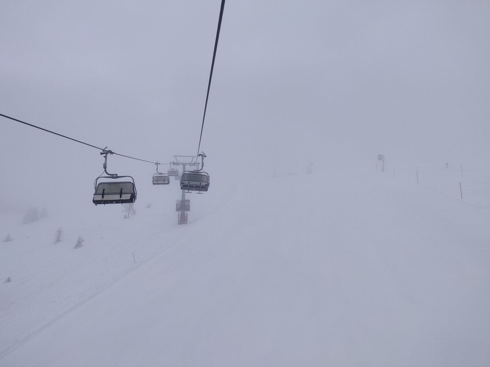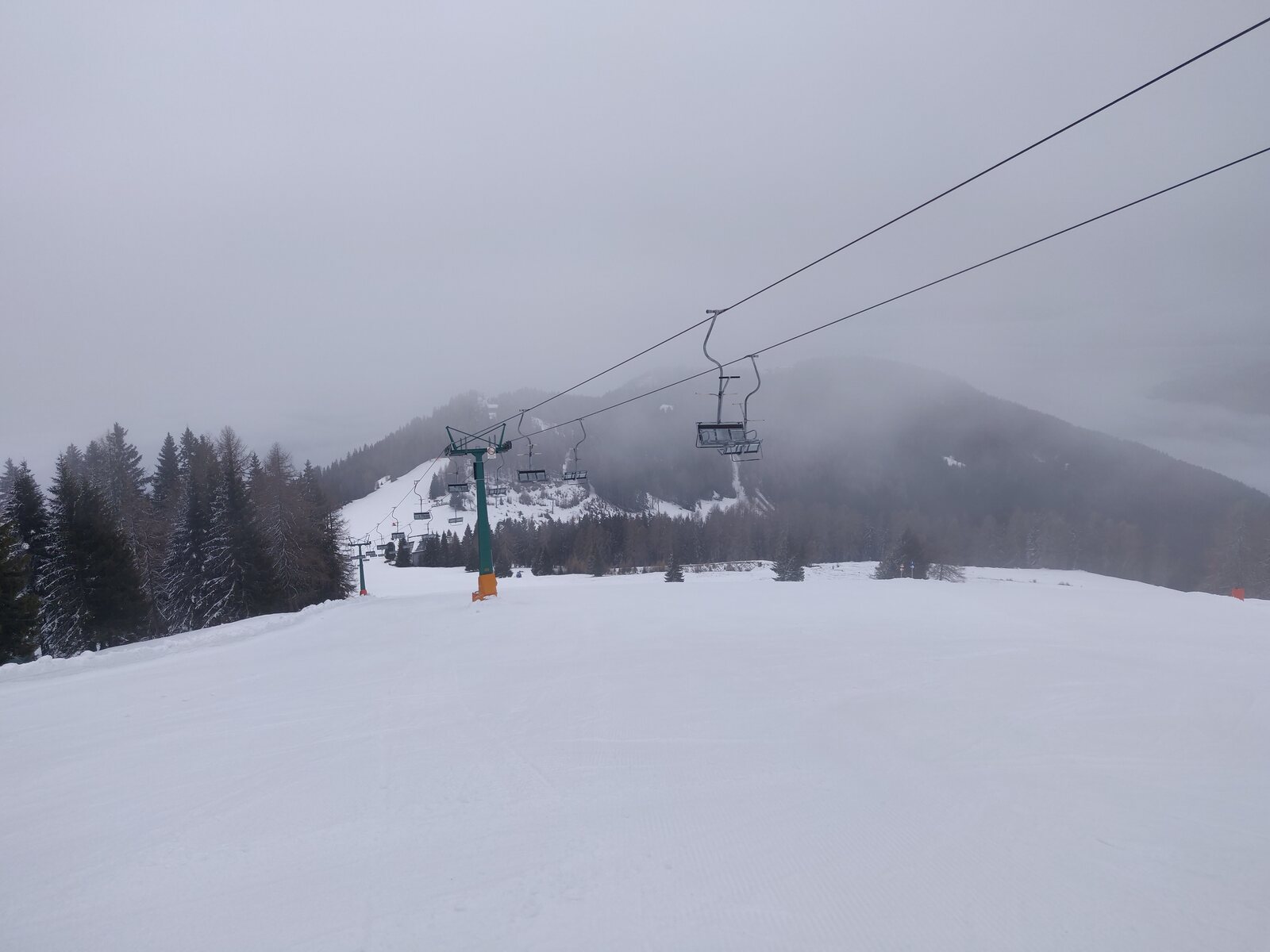 Fazit: Heute war es viel besser als erwartet. Der Neuschnee von gestern hat sich gut gesetzt und die Pisten waren kompakt-griffig und richtig gut zu fahren. Einzig der Nebel und der leichte Regen haben den Spaß etwas getrübt. Andrang war für einen Sonntag nicht vorhanden. Ich konnte praktisch immer direkt durchgehen. Jetzt will ich dann aber einmal die vielen Pisten in die Mulde rein auch einmal bei schönem Wetter ausprobieren