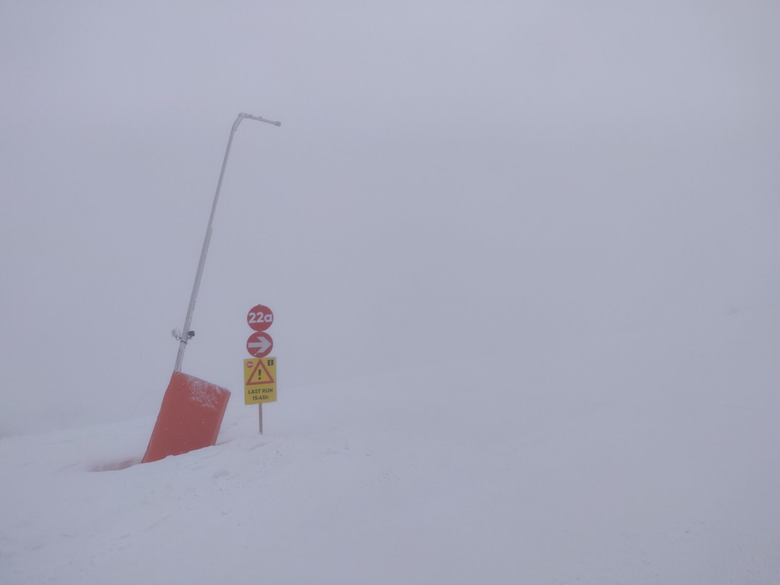 ^ Es gibt anscheinend noch eine schwarze Piste in die Mulde. Ist noch frisch präpariert, aber durch die schlechte Sicht wusste ich teilweise ob ich mich noch bewege oder schon stehe.