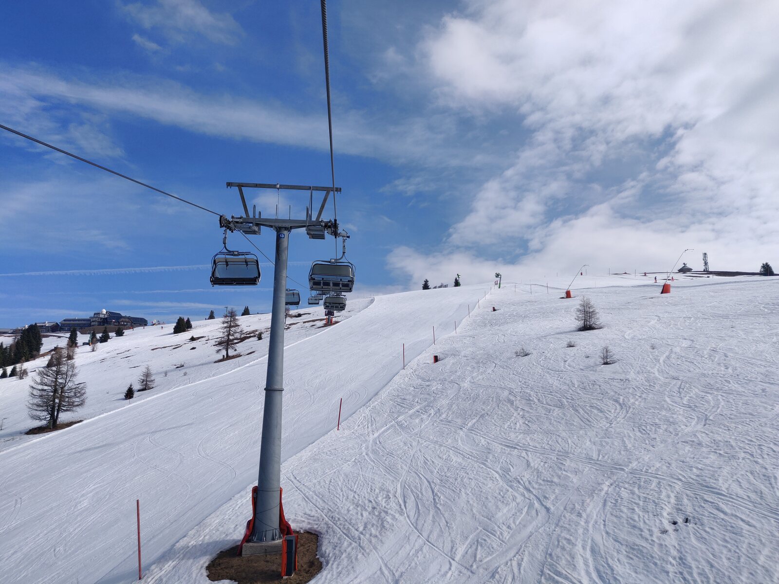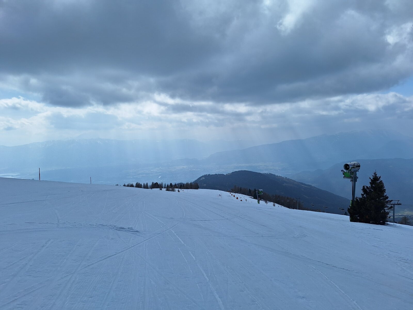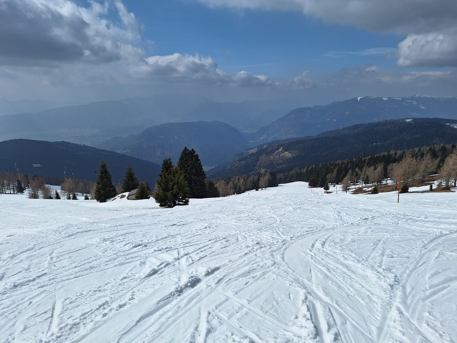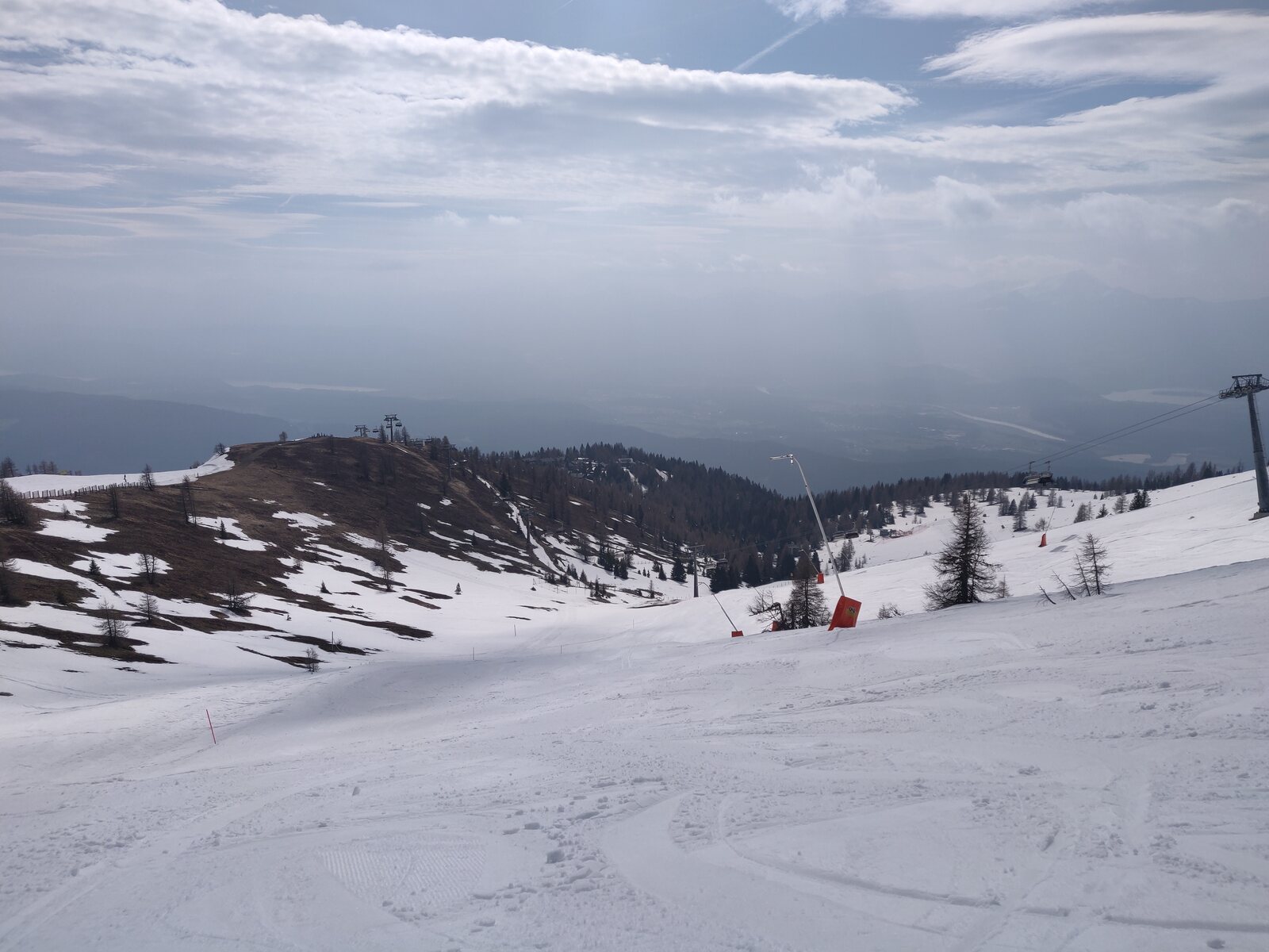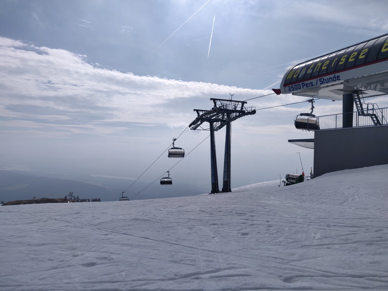 Diesmal war ich wegen der kurzen Anfahrt wieder auf der Gerlitzen. In Betrieb waren alle Lifte und fast alle Pisten. Das Wetter war bewölkt. Die Pisten waren griffig, mit ein wenig Pulver obendrauf, der dann teilweise leicht pappig wurde. ^ Erste Fahrt mit der Gipfelbahn. Der kosmetische Naturschnee ist in der letzten Woche ein wenig geschmolzen. ^ Nach ein paar Fahrten mit der Gipfelbahn geht es zum Pacheiner. ^ Die rote Piste (ich glaube die war vor ein paar Jahren noch blau) ist in Top Zustand. ^ Talabfahrt zur Klösterle I ist besser als erwartet. Nur die letzten hundert Höhenmeter dürfte es reingeregnet haben. ^ Panorama Richtung Wörthersee. Diesmal hängt die Wolken-/Nebeldecke aber leider um einiges höher